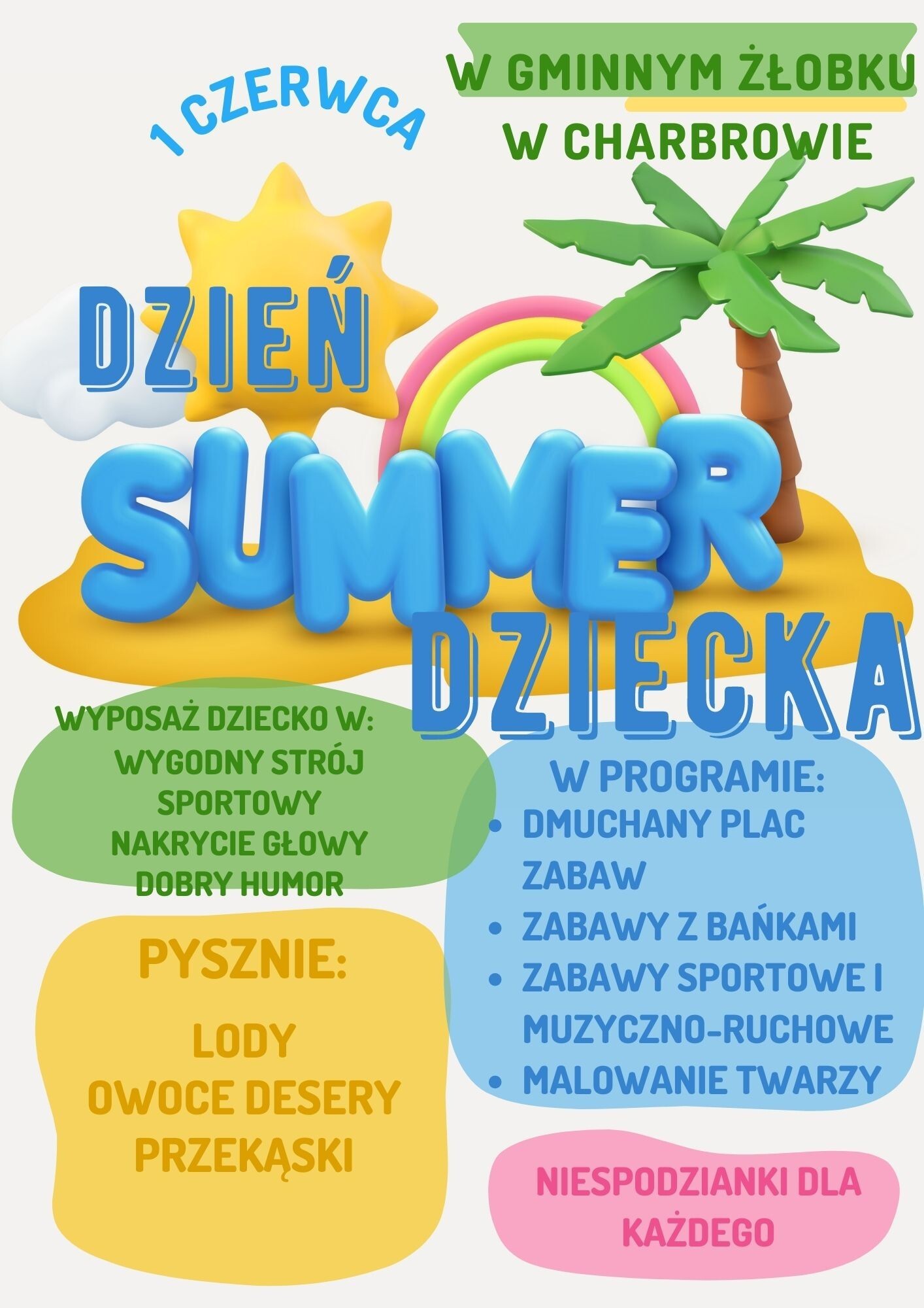 Już w nadchodzący czwartek świętować będziemy w naszym żłobku jeden z najważniejszych dni w roku DZIEŃ DZIECKA!