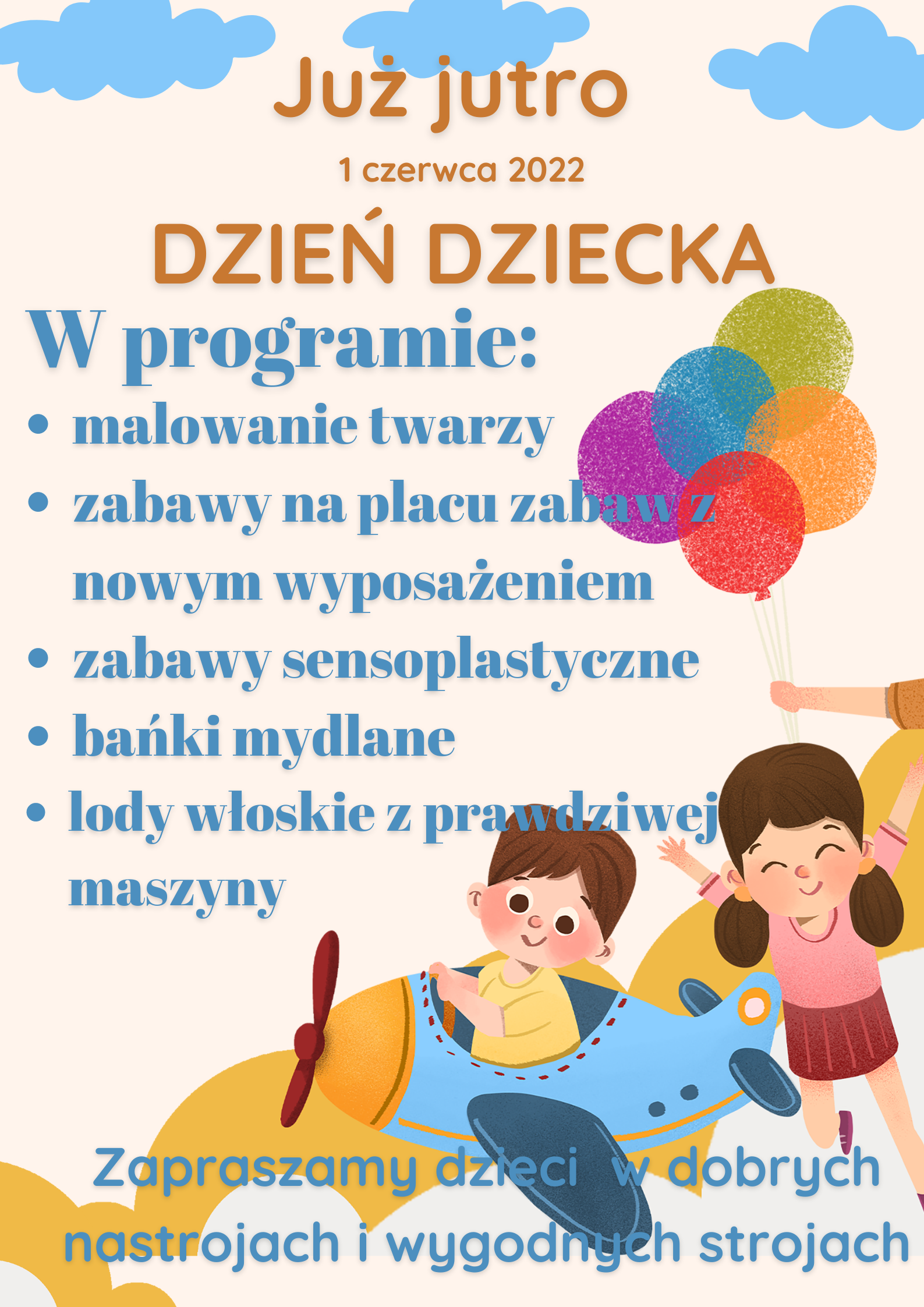 ZAPRASZAMY DZIECI W DOBRYCH NASTROJACH I WYGODNYCH STROJACH