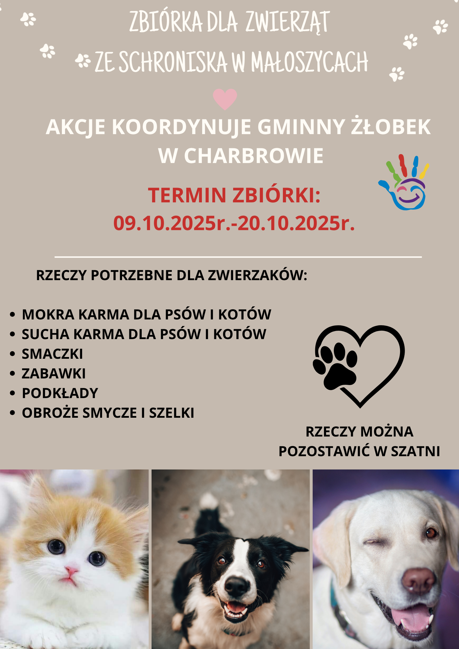 Gminny Żłobek w Charbrowie organizuje zbiórkę darów, które pomogą czworonożnym przyjaciołom.
