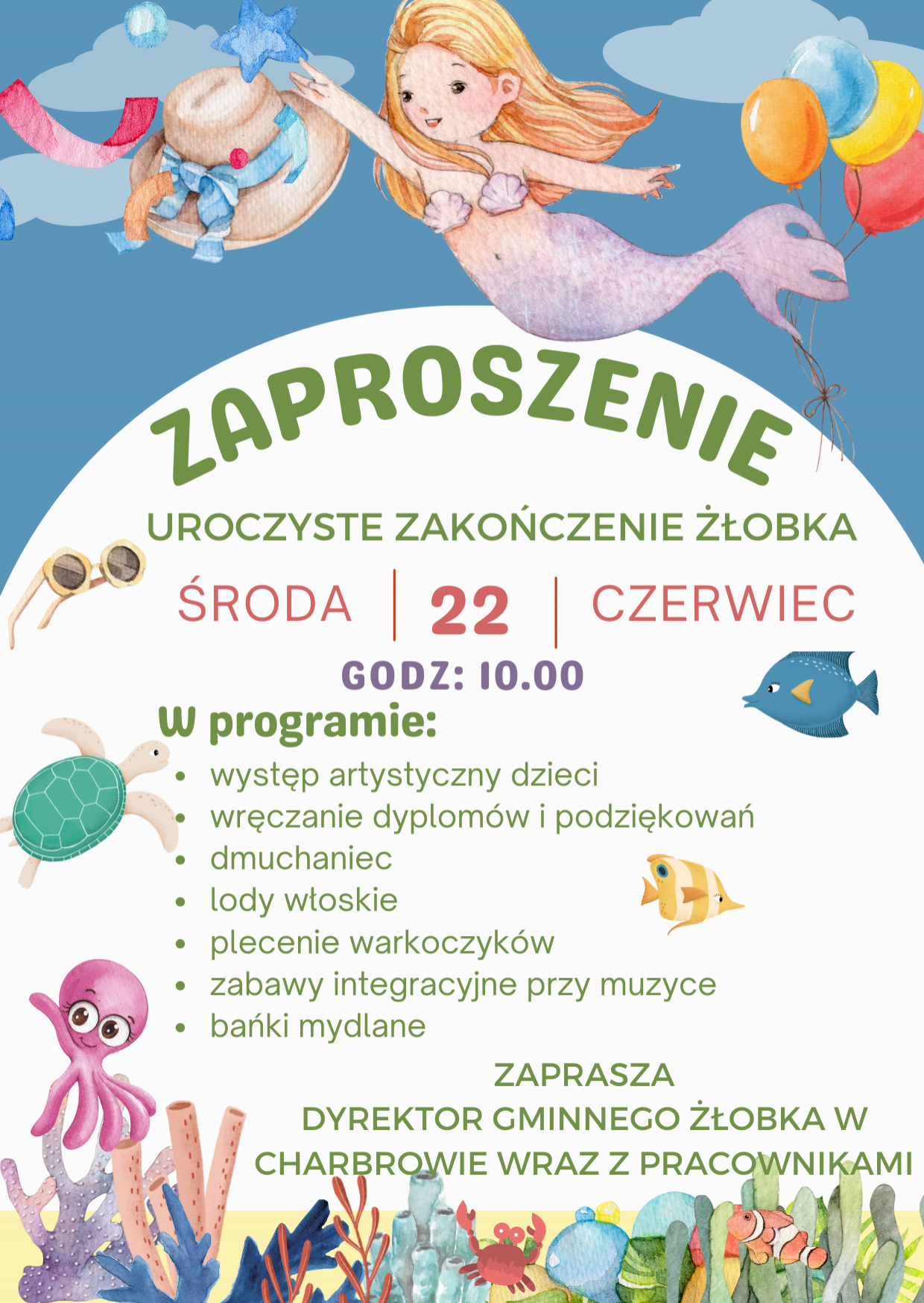 Dnia 22 czerwca o godz 10.00 odbędzie się uroczyste zakończenie żłobka dla dzieci, które wybierają się do przedszkola.