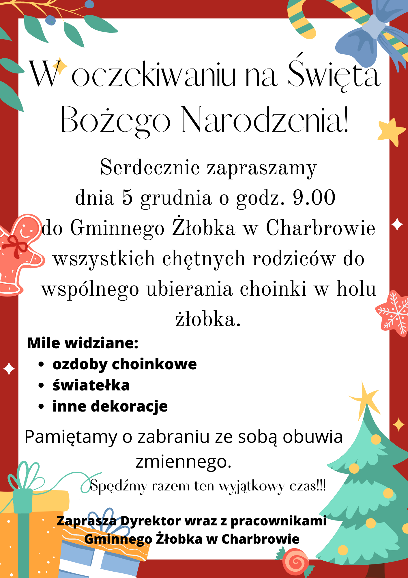 wszystkich chętnych rodziców do wspólnego ubierania choinki w holu żłobka.