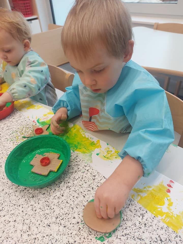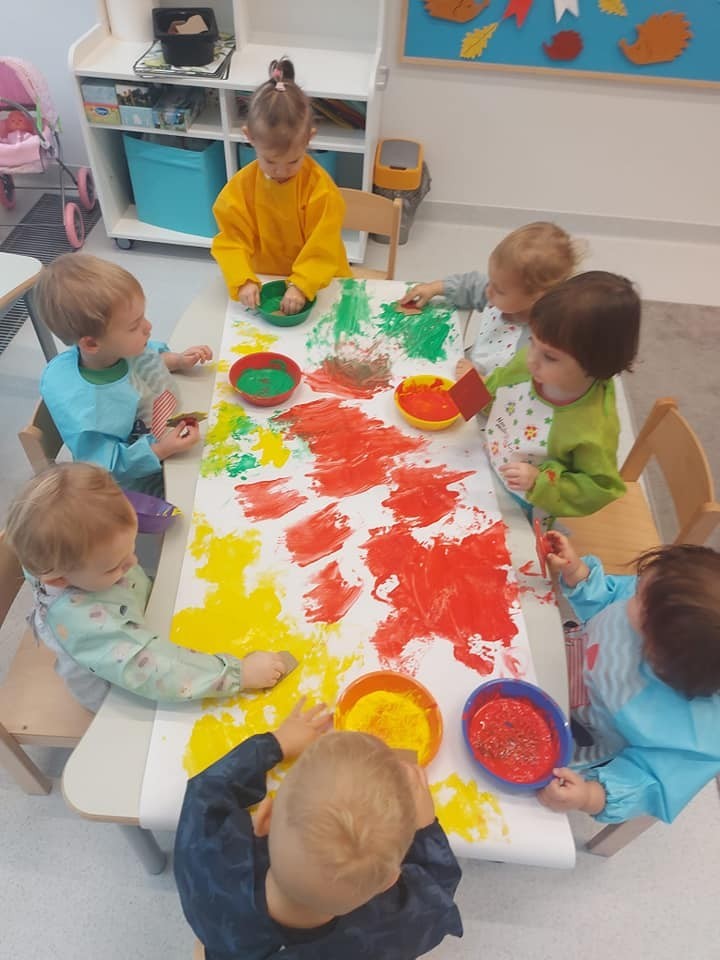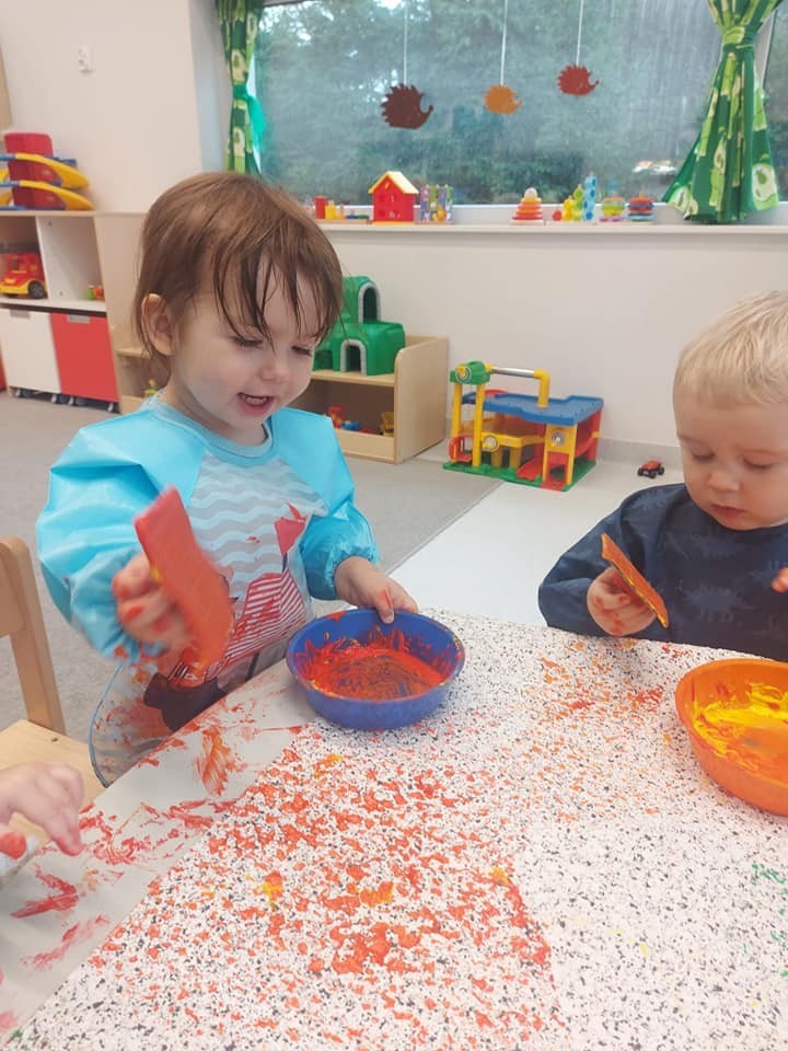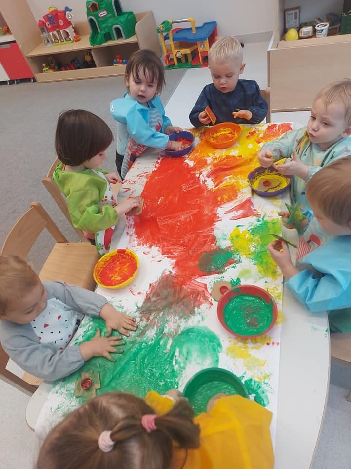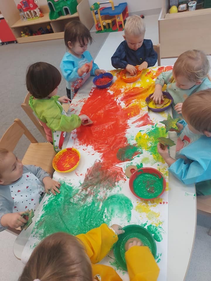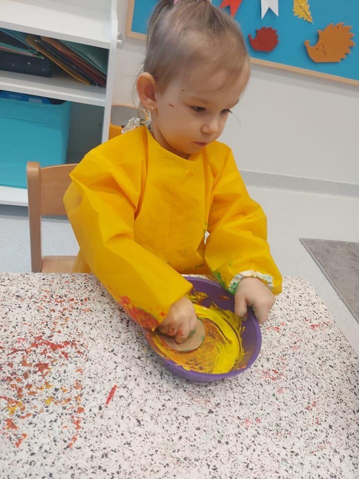 Prace plastyczne to jedne z ulubionych czynności małych żłobkowiczów. Pieczątki, stemple i wiele beztroskiej radości w kolorach jesieni.