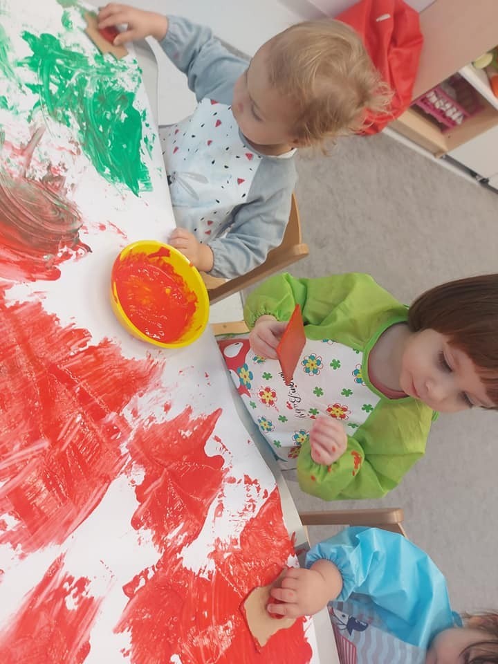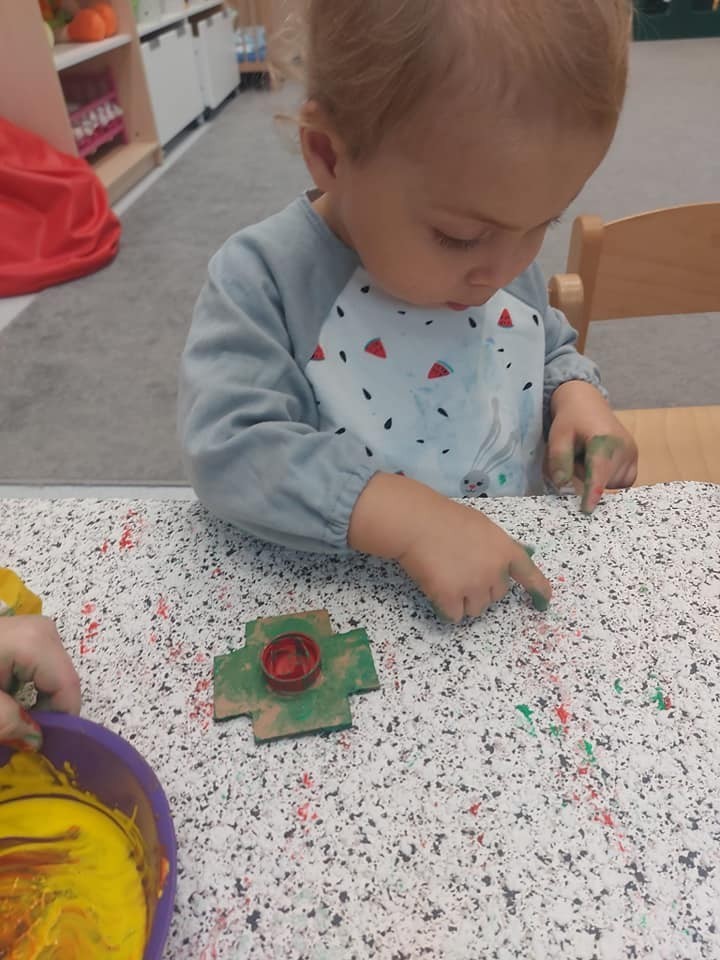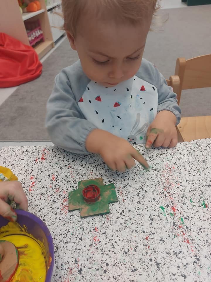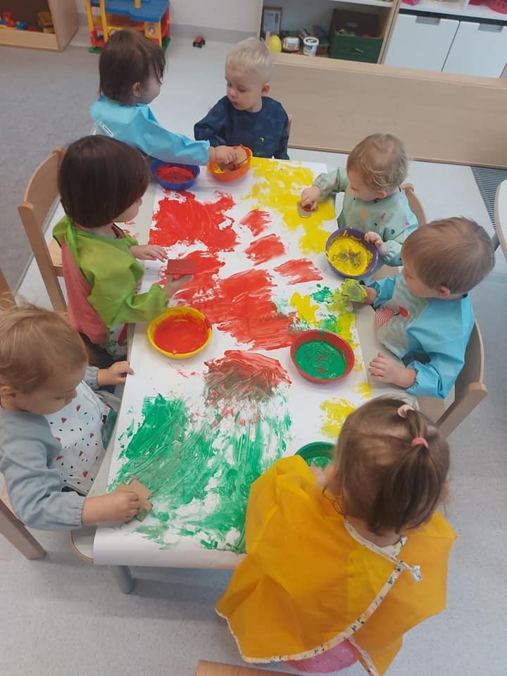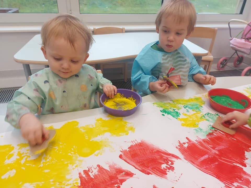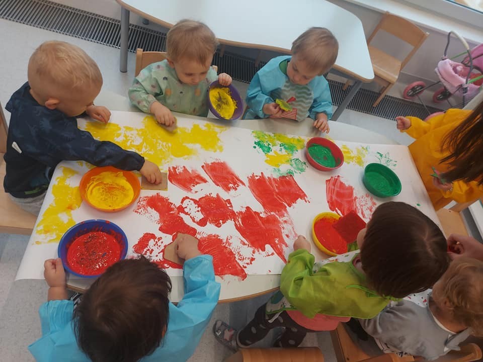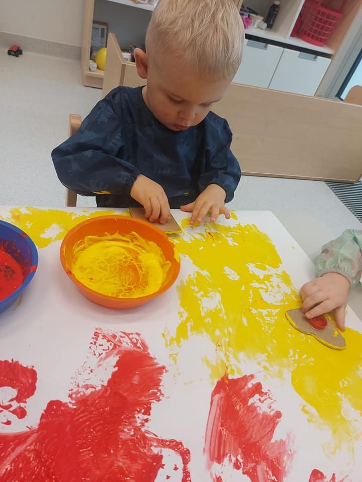 Prace plastyczne to jedne z ulubionych czynności małych żłobkowiczów. Pieczątki, stemple i wiele beztroskiej radości w kolorach jesieni.