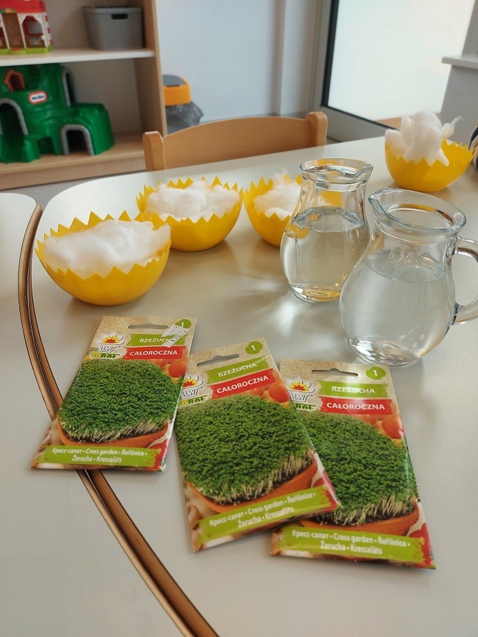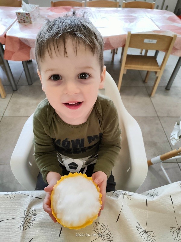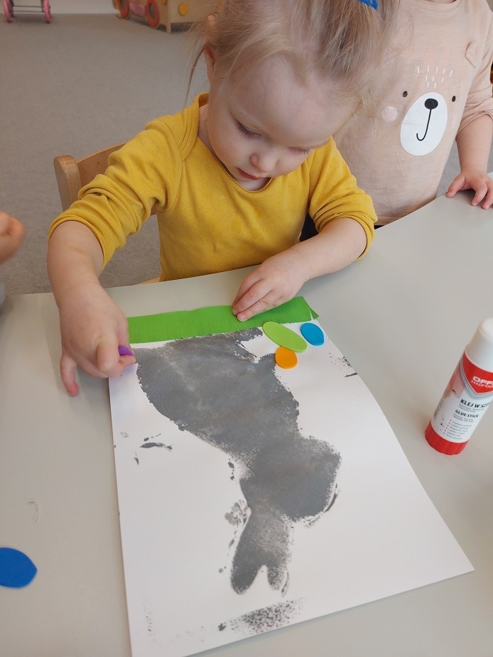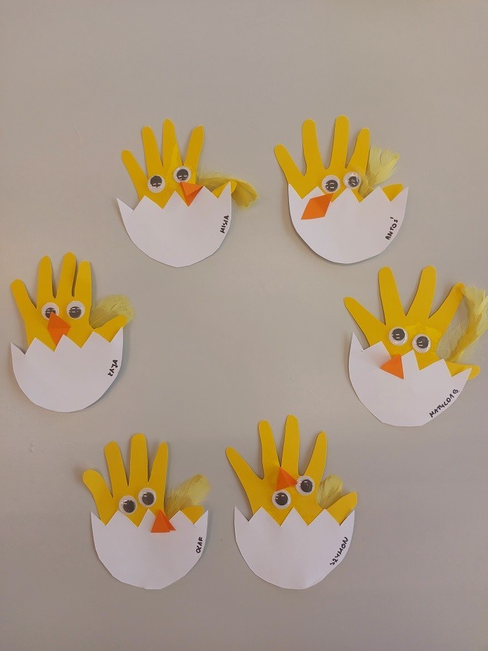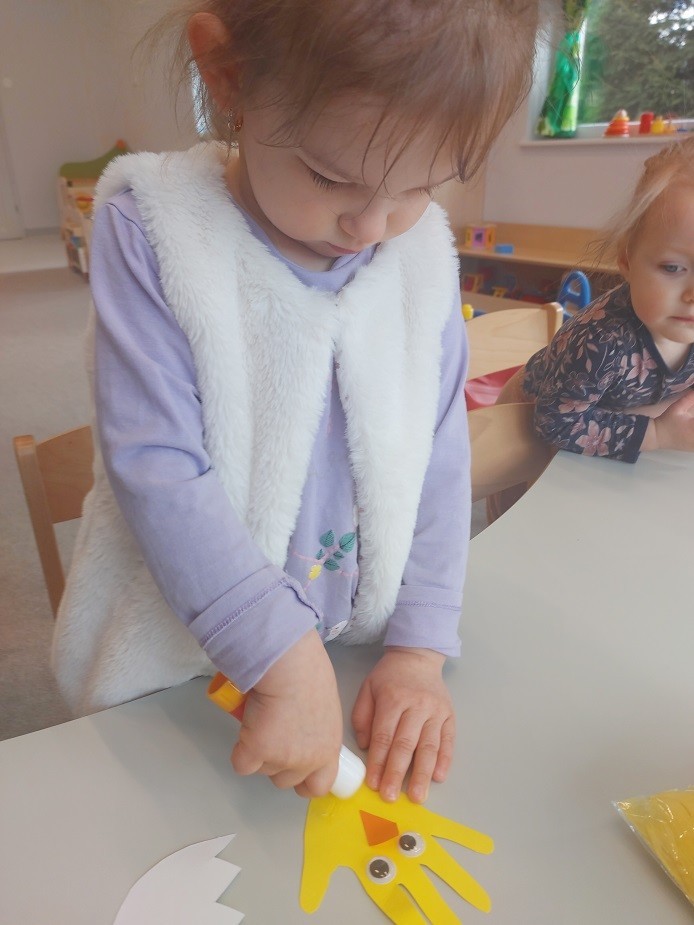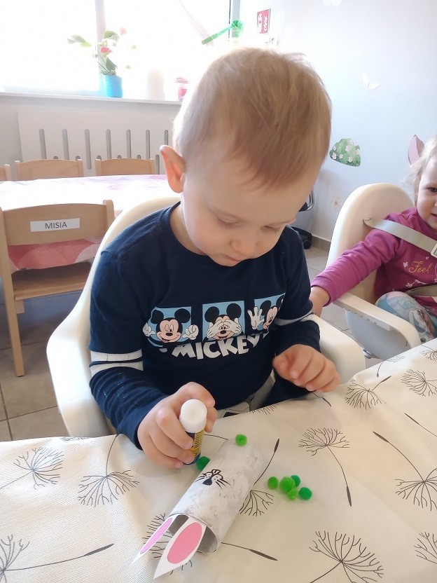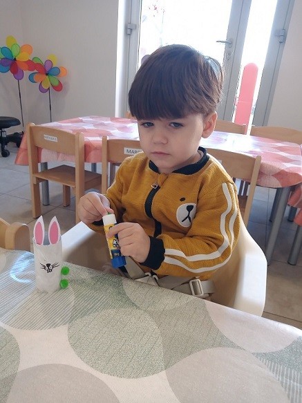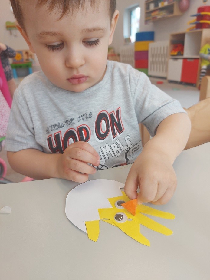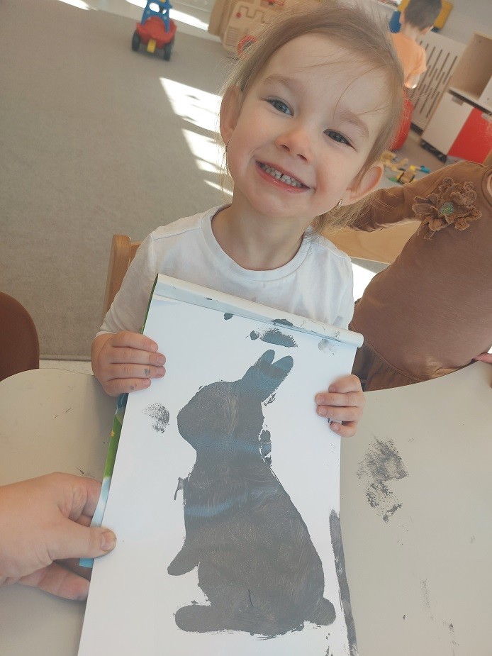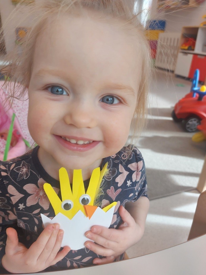 W naszym żłobku nie zabrakło aktywności wielkanocnych przygotowanych dla dzieci. Podczas tego tygodnia zajęć starsze dzieci przygotowały kartkę świąteczną malując gąbką kontur przedstawiający zająca. Dodatkowo z odrysowanych rączek powstały kurczaczki wykluwające się z jajek. Młodsza grupa wykonała zajączka z rolki po papierze, który ozdabiał ich koszyczki z prezentami. Wszystkie dzieci zasiały też rzeżuchę, którą po wyrośnięciu podzieliły się z najbliższymi.