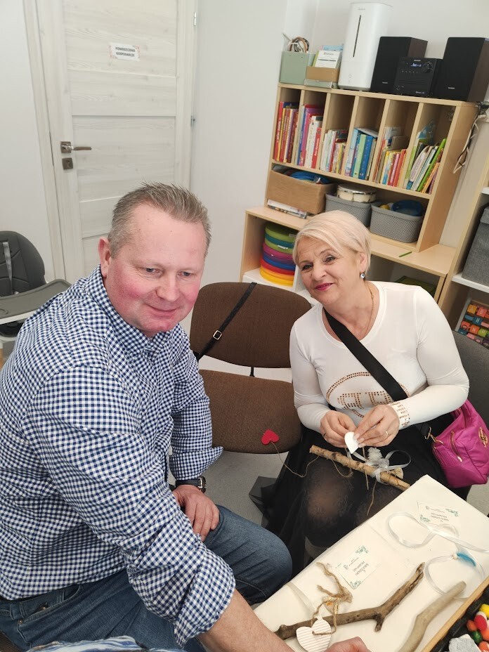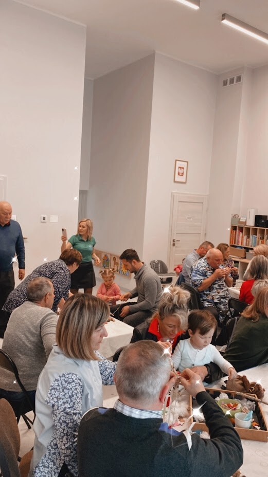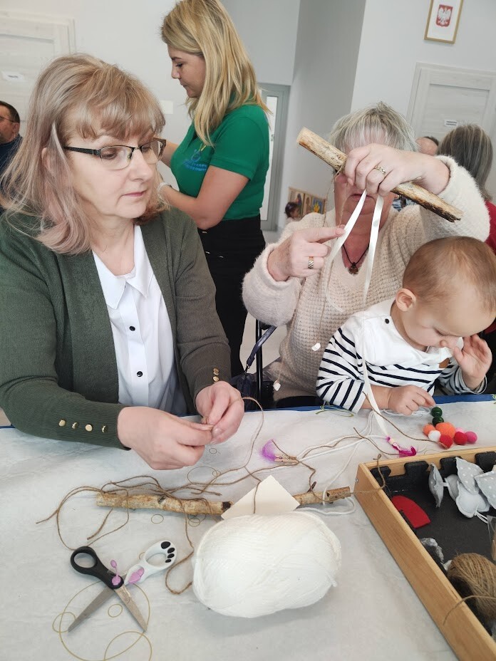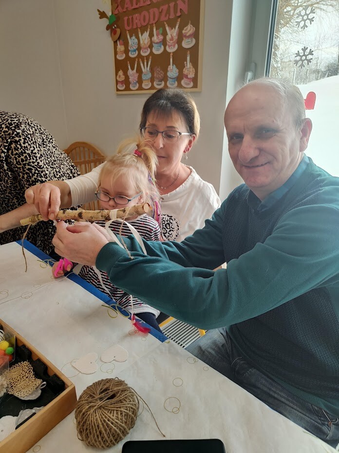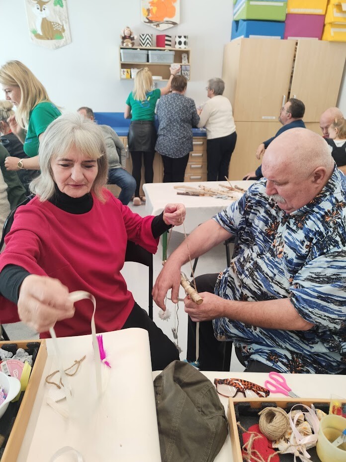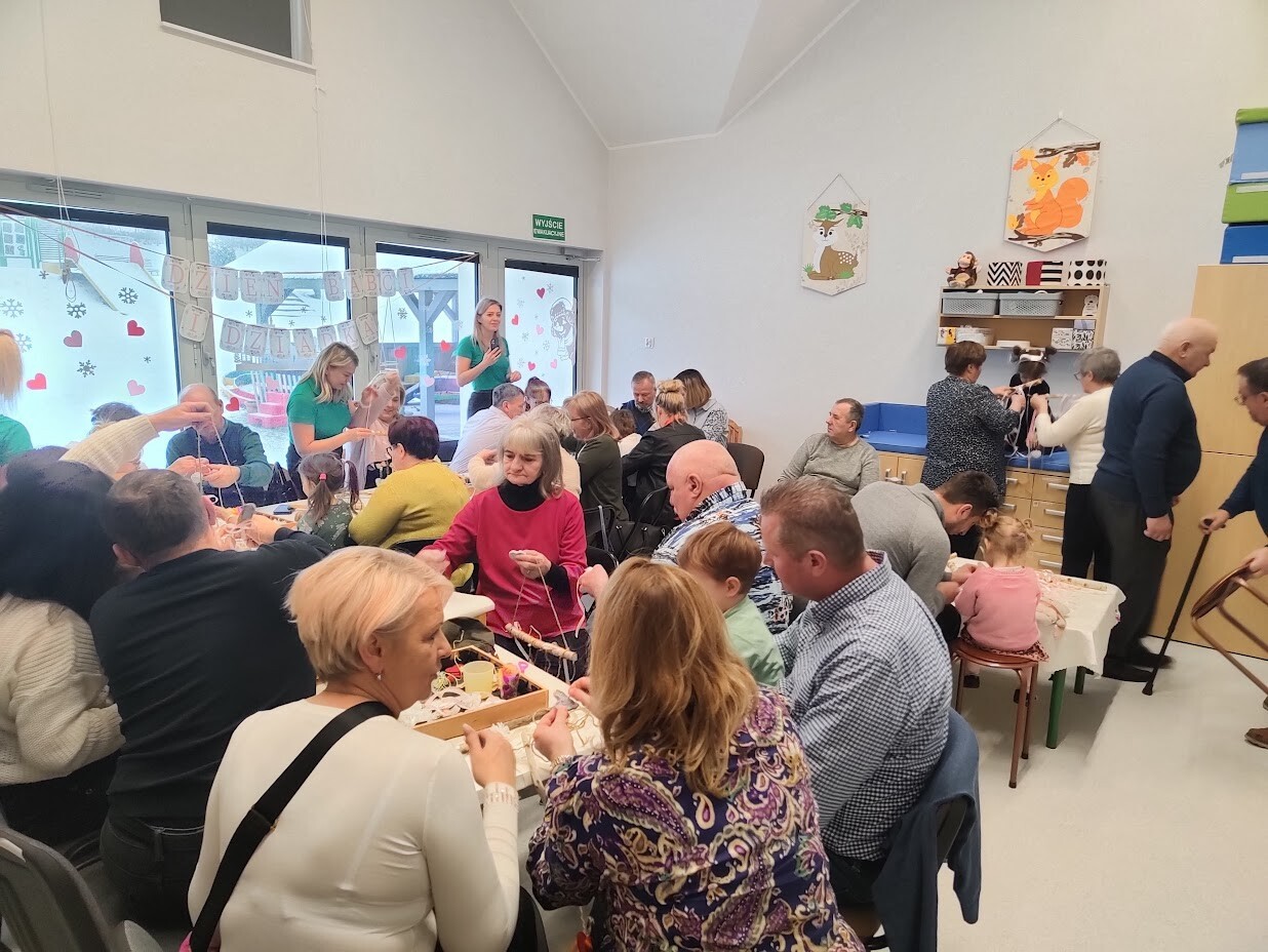 Spotkanie rozpoczęło się od złożenia życzeń przez Panią Dyrektor, oraz wyjaśnienia zadania do wykonania - makramy, która stanowiła prezent od wnuka i wnuczki.