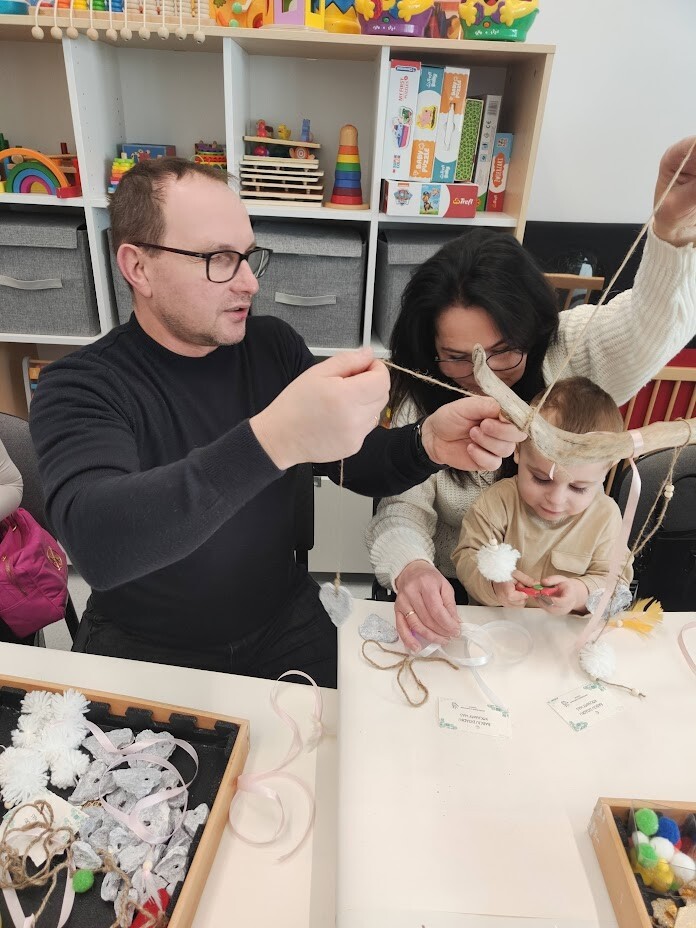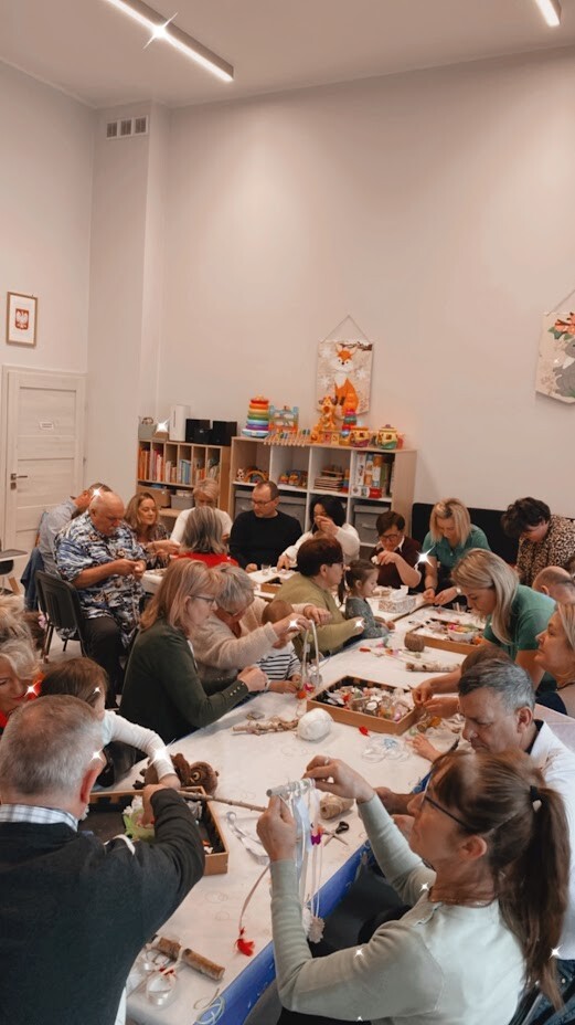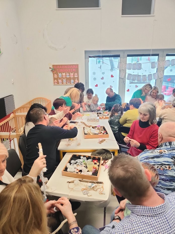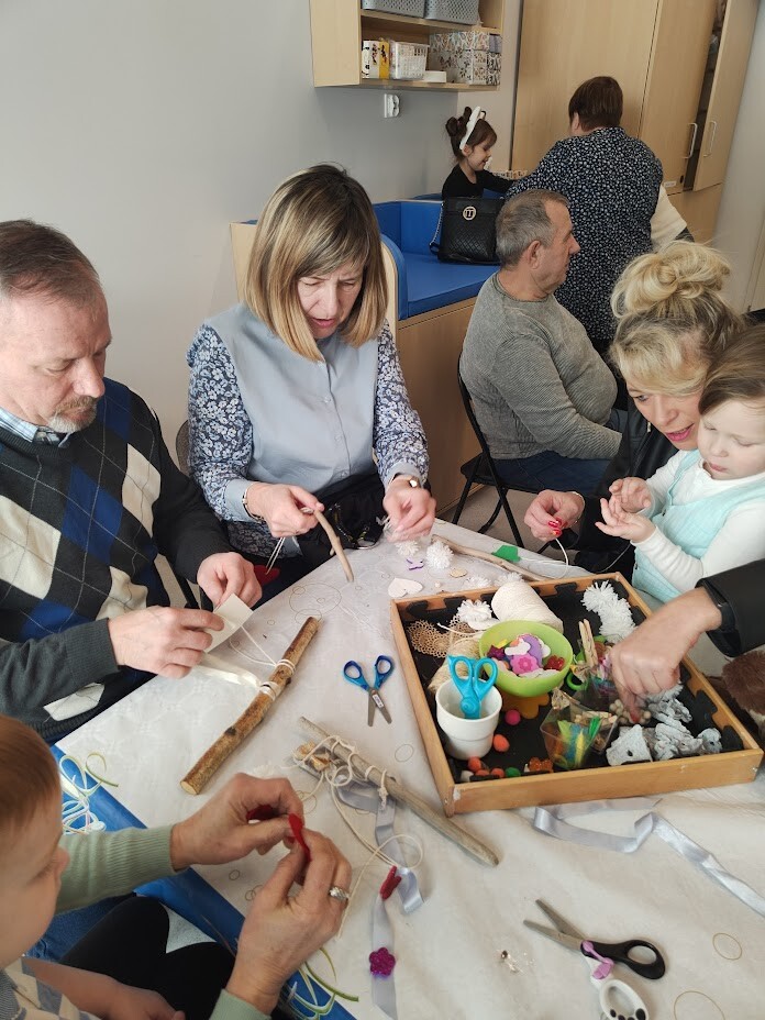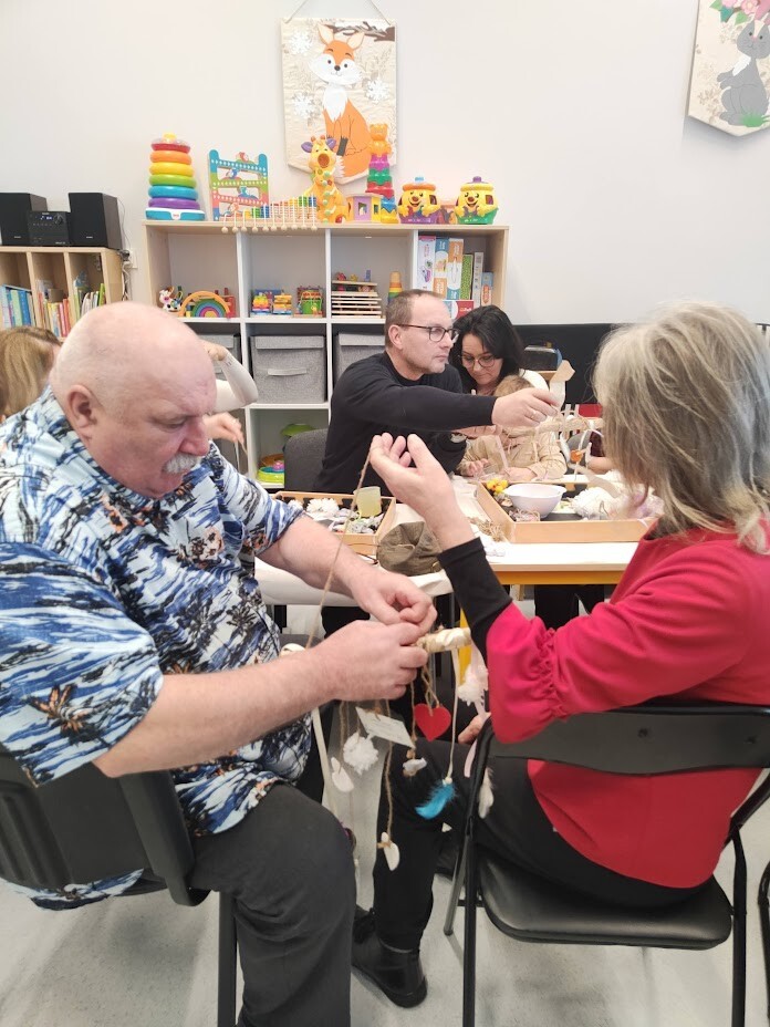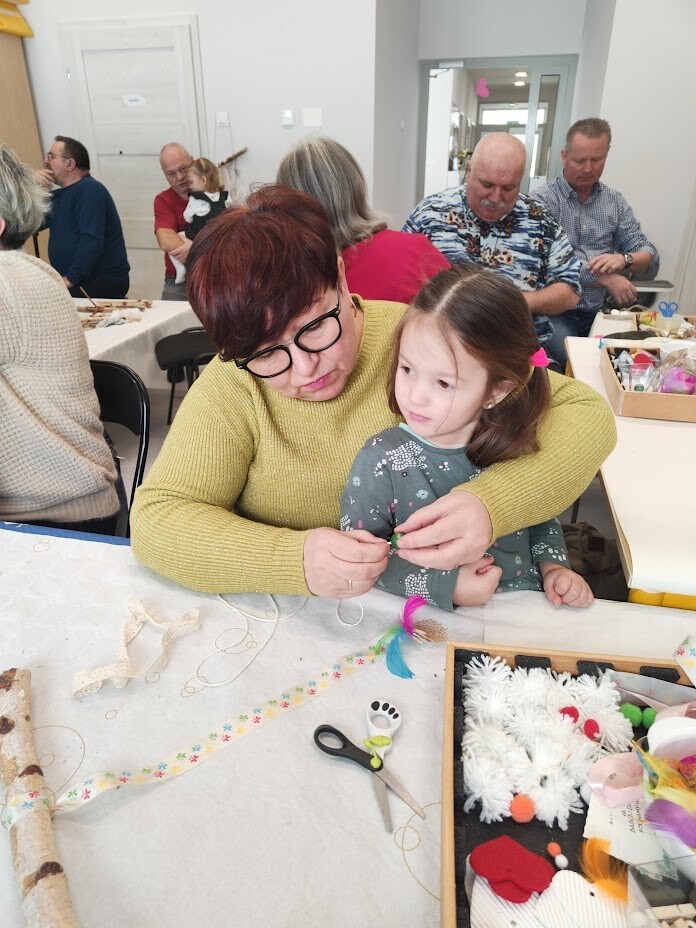 Spotkanie rozpoczęło się od złożenia życzeń przez Panią Dyrektor, oraz wyjaśnienia zadania do wykonania - makramy, która stanowiła prezent od wnuka i wnuczki.
