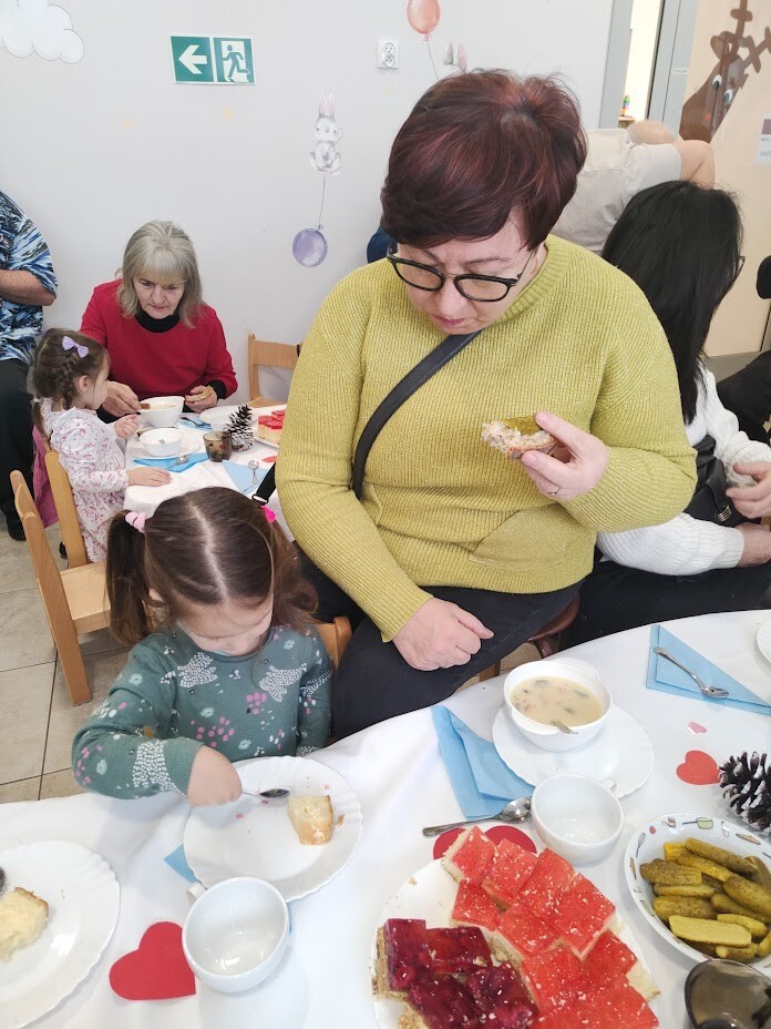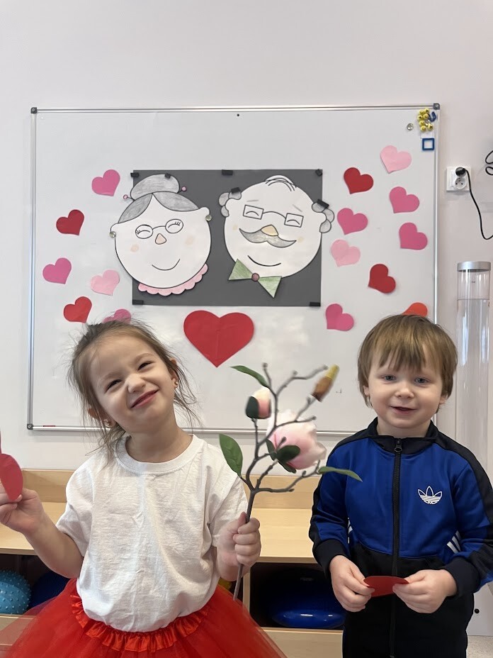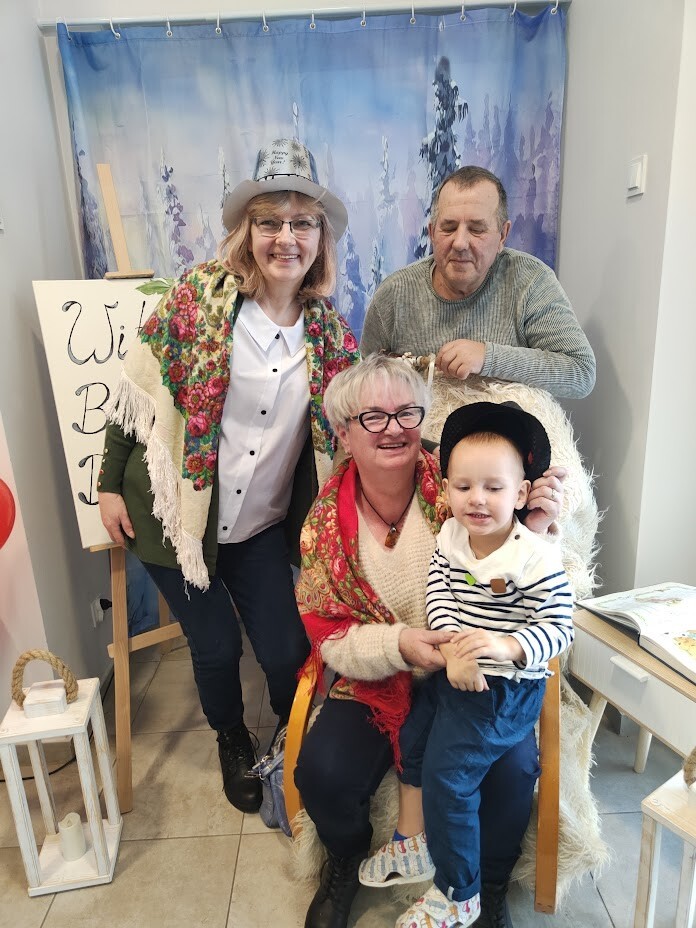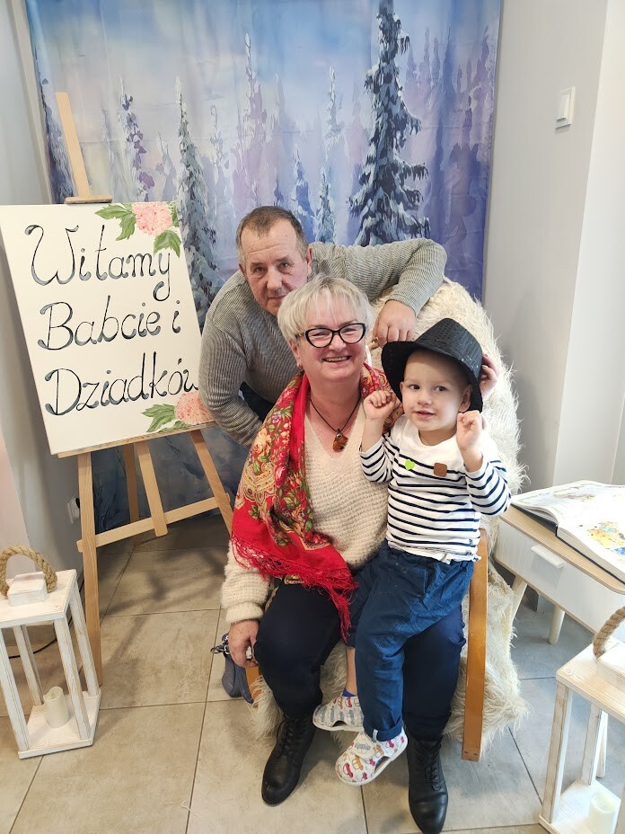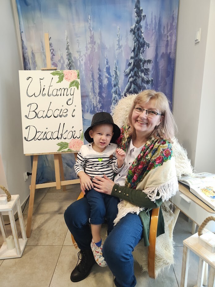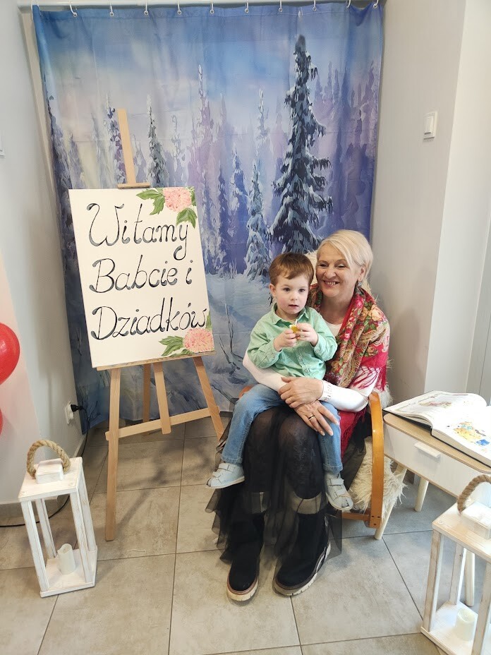 Dzieci przygotowały jeszcze jedną niespodziankę w postaci prezentacji ukazującej życzenia, piosenki dla ukochanych Dziadków. Nie zabrakło wspólnych zdjęć na ściance.