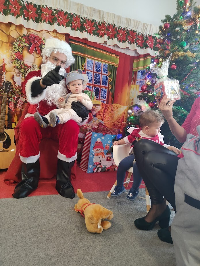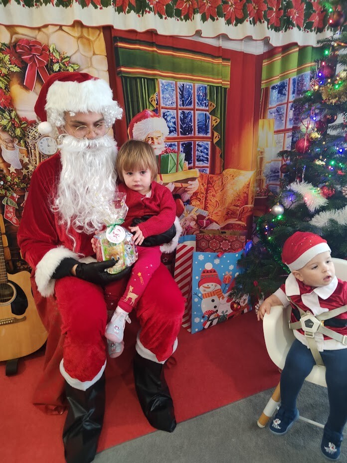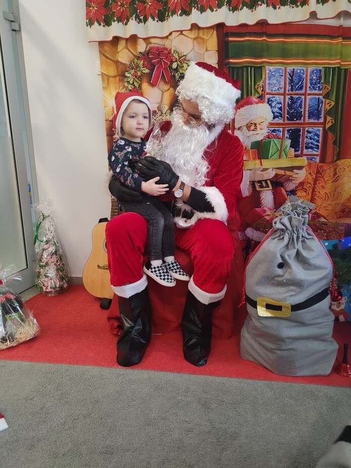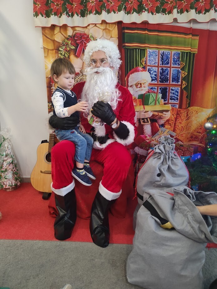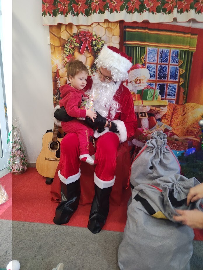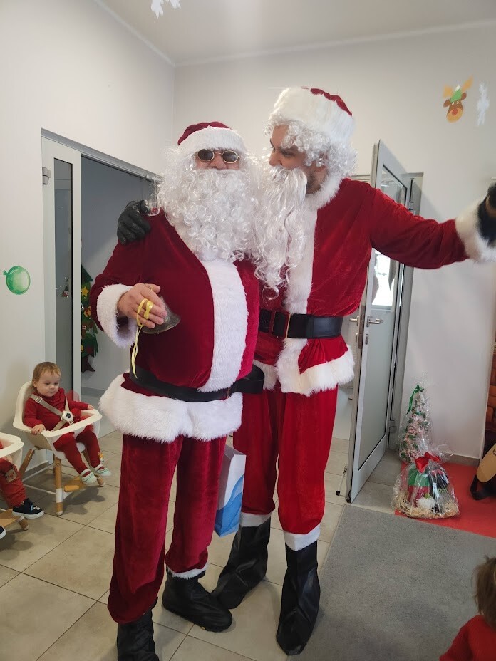 Wizyta Świętego Mikołaja w naszym żłobku to jeden z najbardziej oczekiwanych przez dzieci dni w roku. 6 grudnia 2023r. wszystkie dzieci już od samego rana z wielką niecierpliwością spoglądały na drzwi, nadsłuchiwały „mikołajkowych” dzwoneczków. Święty Mikołaj nie zawiódł dzieci i w godzinach porannych zaglądał do okien żłobka odwiedził wszystkie dzieci. Nasz gość zaczął swoją wizytę od wspólnego kolędowania, ponieważ był to wyjątkowy Święty Mikołaj, który grał na gitarze. Niektóre dzieci po raz pierwszy witały Mikołaja w żłobku. Wszystkie bardzo przeżywały to spotkanie. Na niejednej twarzy można było zobaczyć niepewność i obawę, ale przede wszystkim radość. Dzieci z grupy starszej zatańczyły dla gościa a Mikołaj rozdawał prezenty, bo grzecznych dzieci u nas nie brakowało. Wielką niespodziankę sprawił dzieciom drugi Mikołaj, który rozdawał cukierki.
