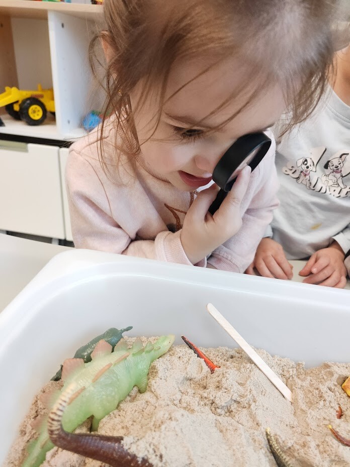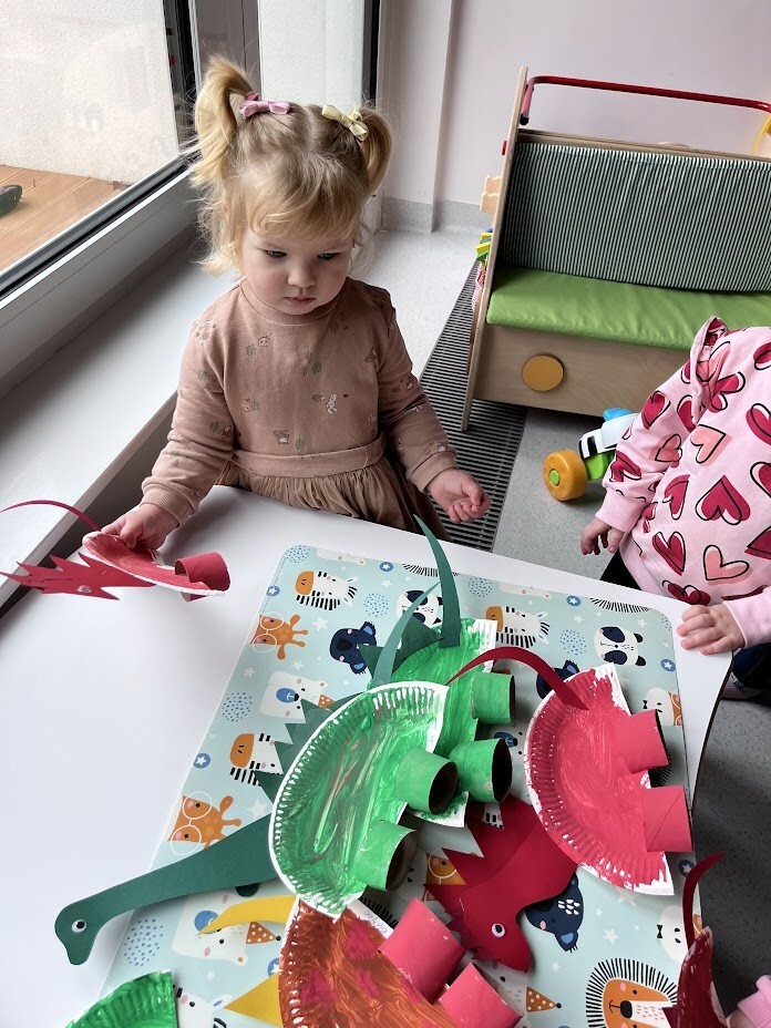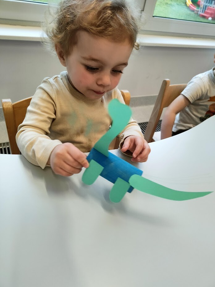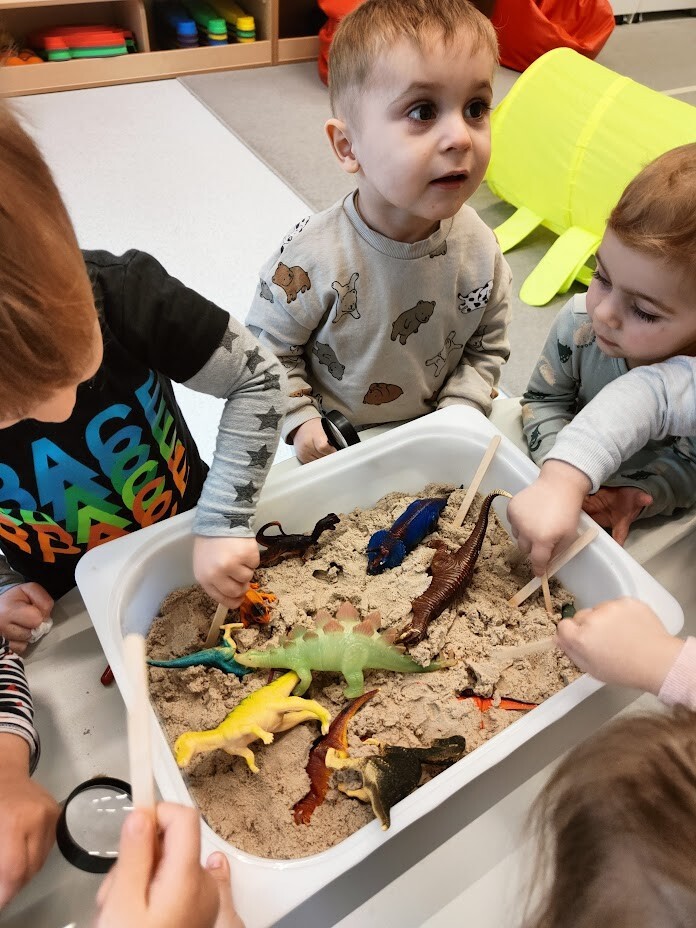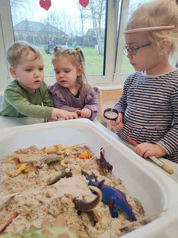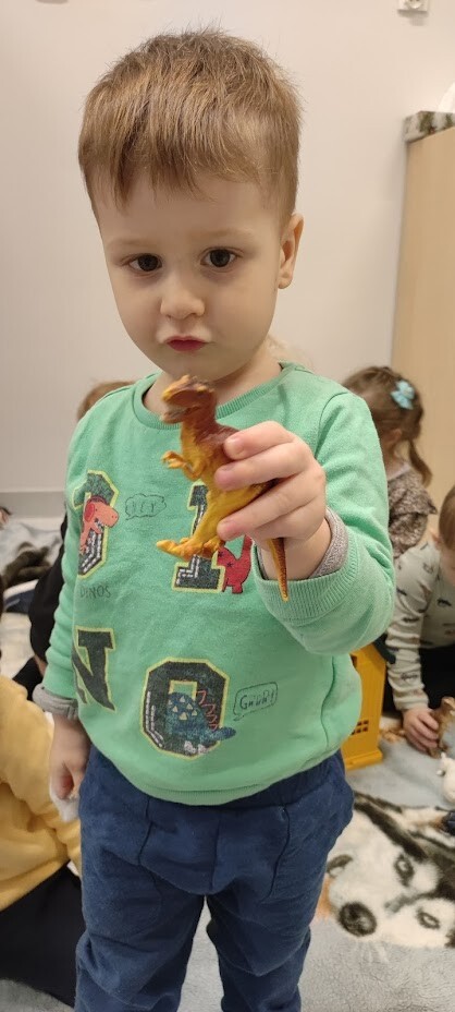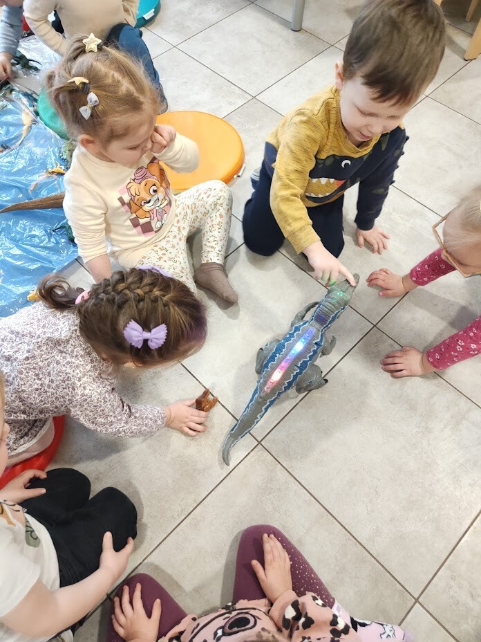 Dzieci w tym tygodniu poszerzały wiedze na temat dinozaurów i ich charakterystycznych cech. Rozwijały wyobraźnię i zmysł dotyku poprzez zabawy badawcze