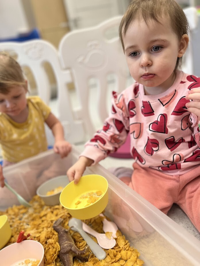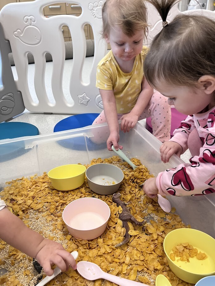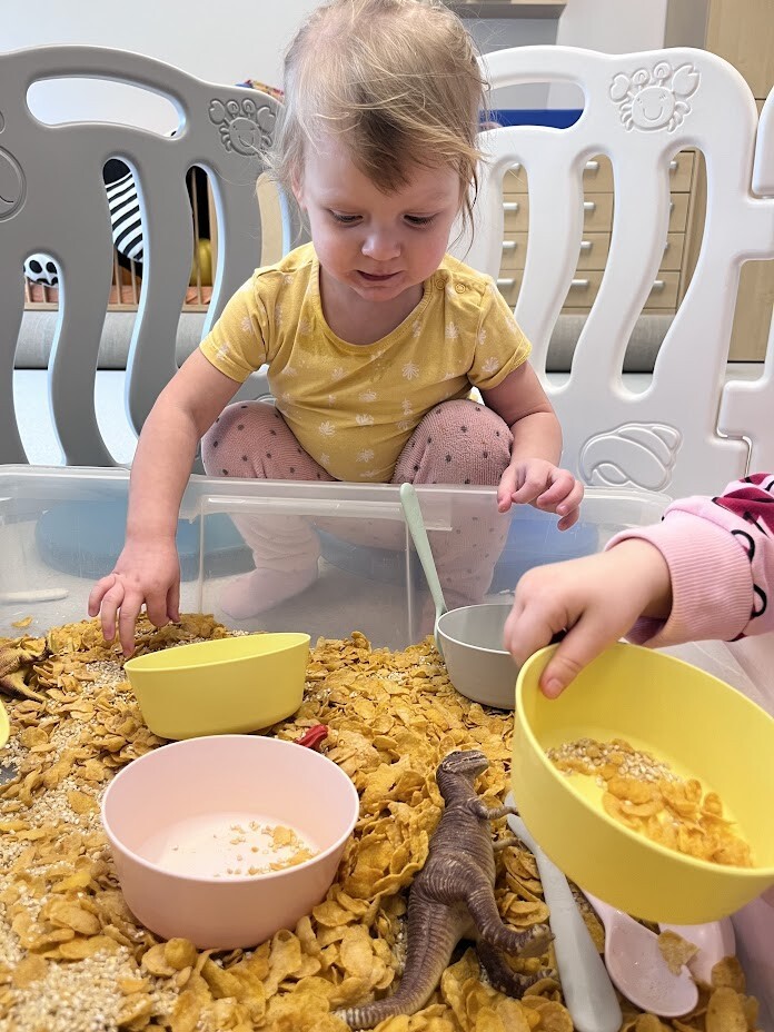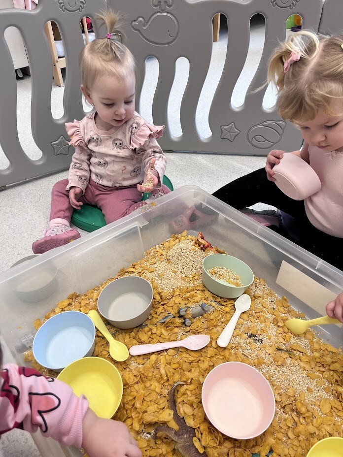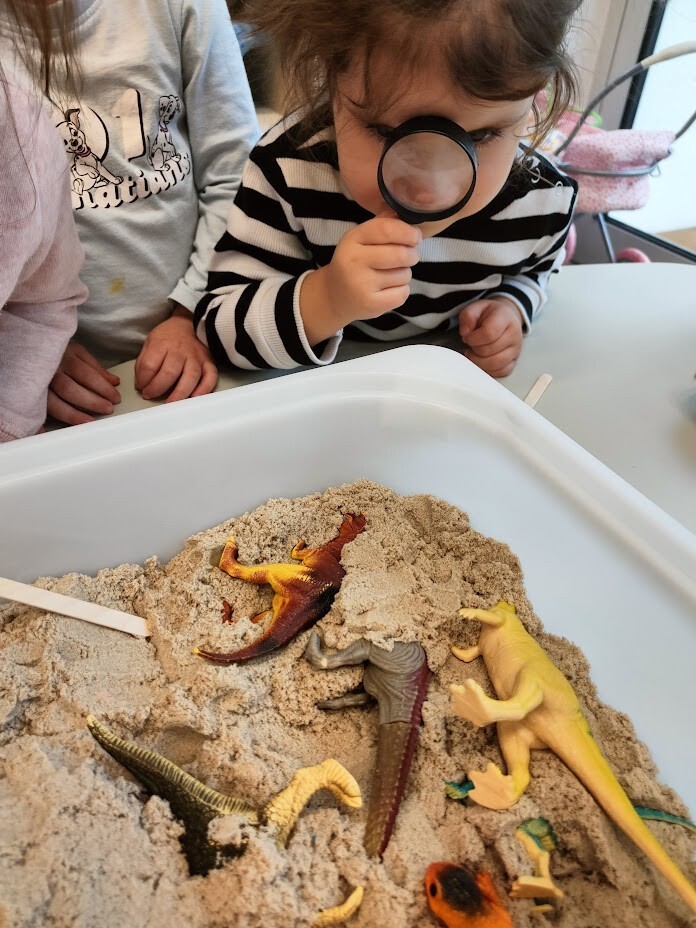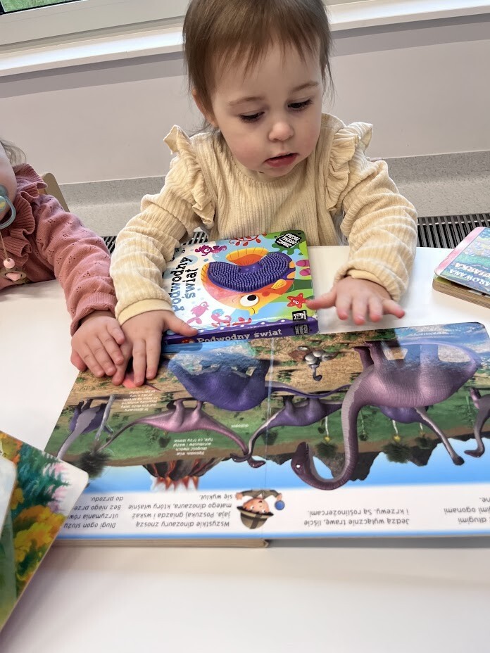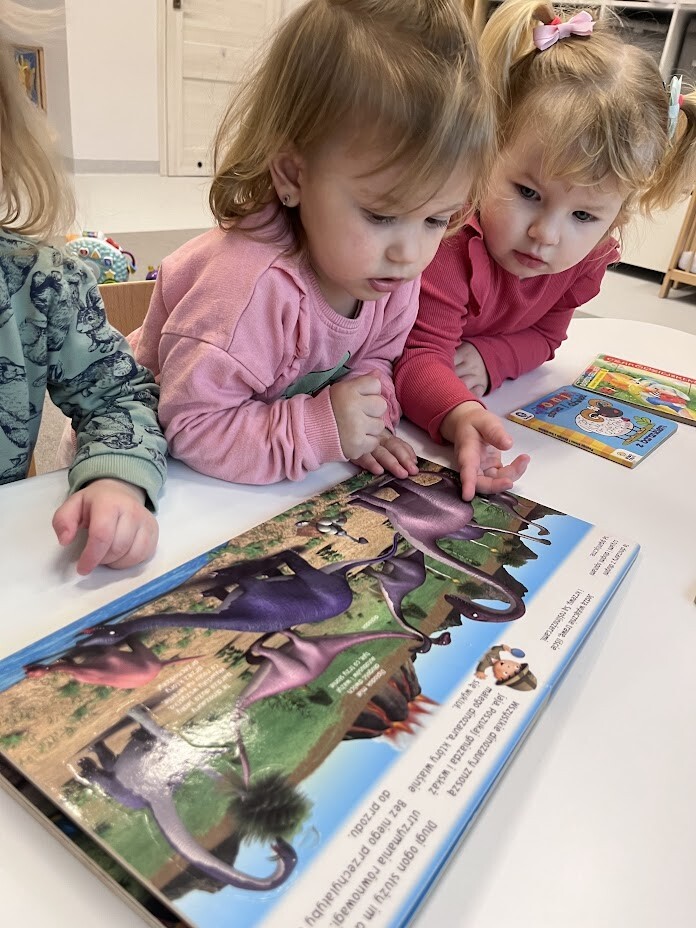 Dzieci w tym tygodniu poszerzały wiedze na temat dinozaurów i ich charakterystycznych cech. Rozwijały wyobraźnię i zmysł dotyku poprzez zabawy badawcze