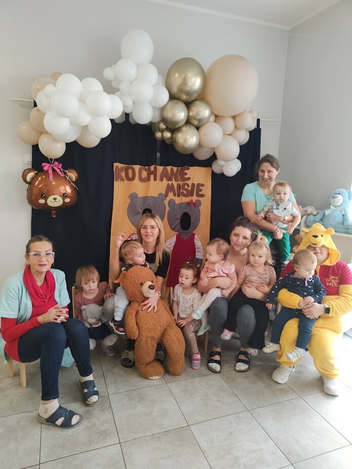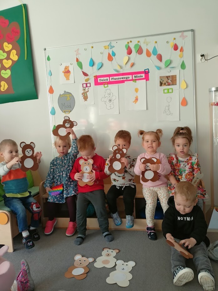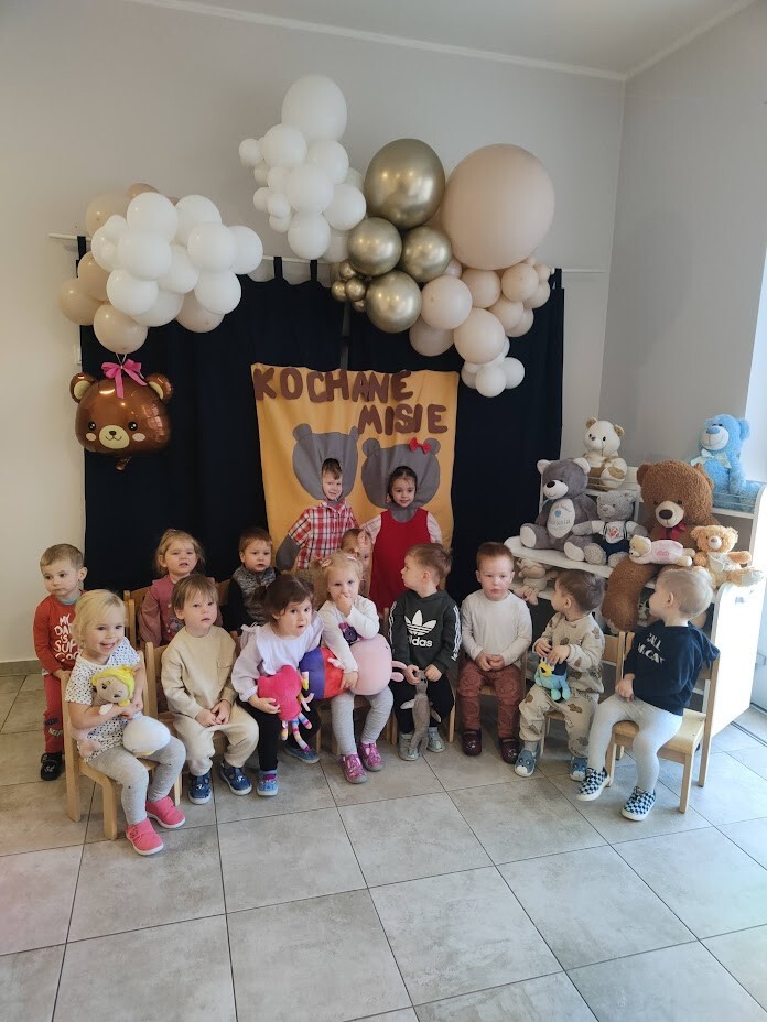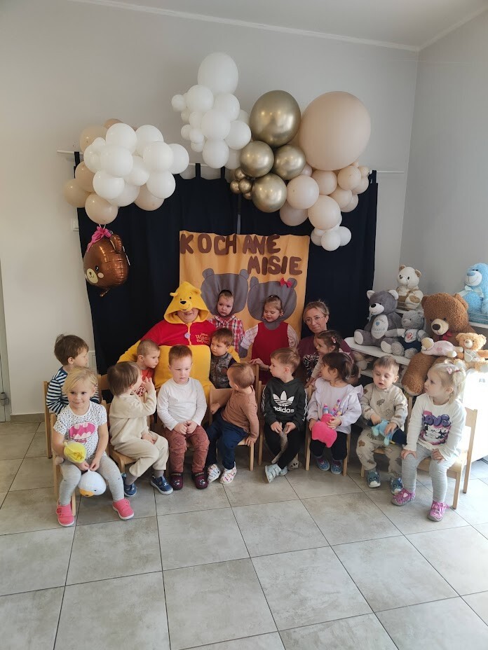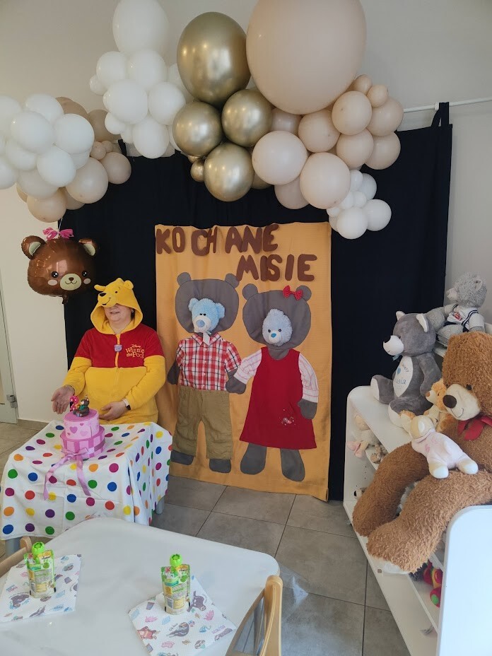 Tydzień z pluszowym misiem dzieci ze żłobka rozpoczęły już w poniedziałek. Liczne atrakcje podczas zabaw tanecznych, sportowych, matematycznych i plastycznych cieszyły dzieci. W piątkowy dzień zakończyliśmy świętowanie wspólnymi urodzinkami MISIA PUCHATKA - który u nas w żłobku świętował dopiero 2 latka. Dzieci upiekły mu smaczny tort i zaśpiewały "sto lat". Oj zmęczony miś szybko poszedł spać... Święto uwieczniliśmy na licznych zdjęciach dzieci wykonanych na misiowej ściance.