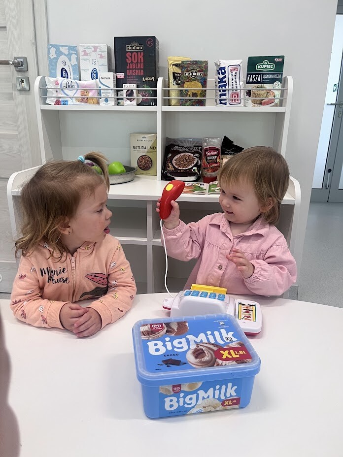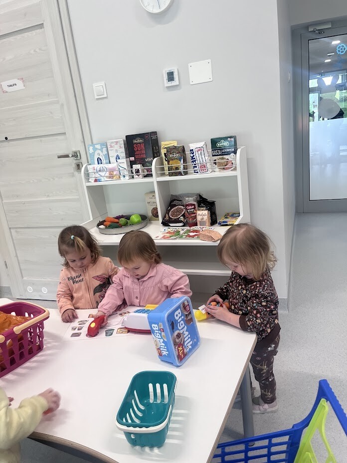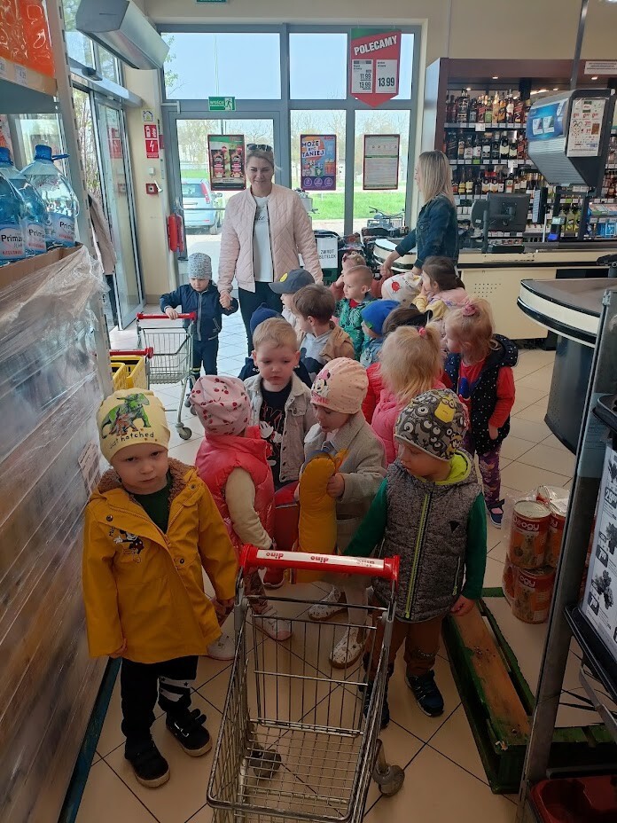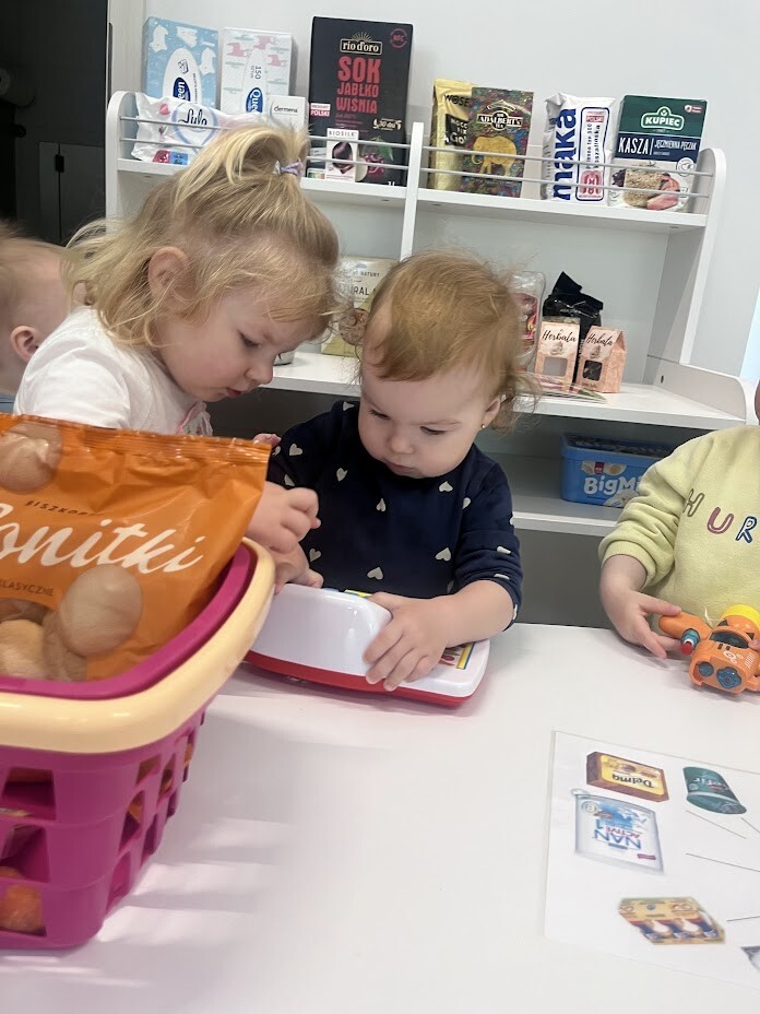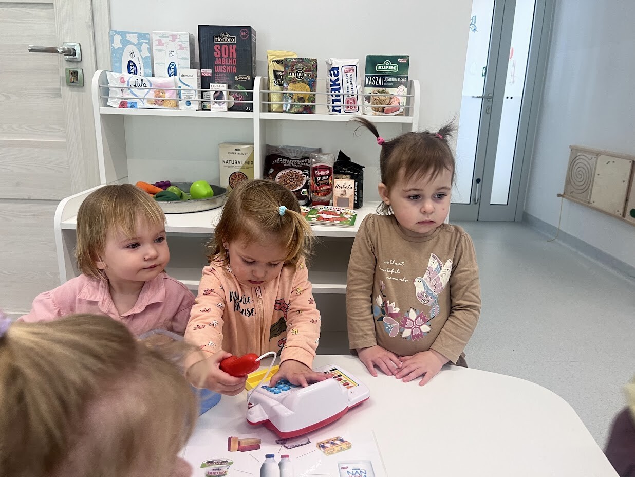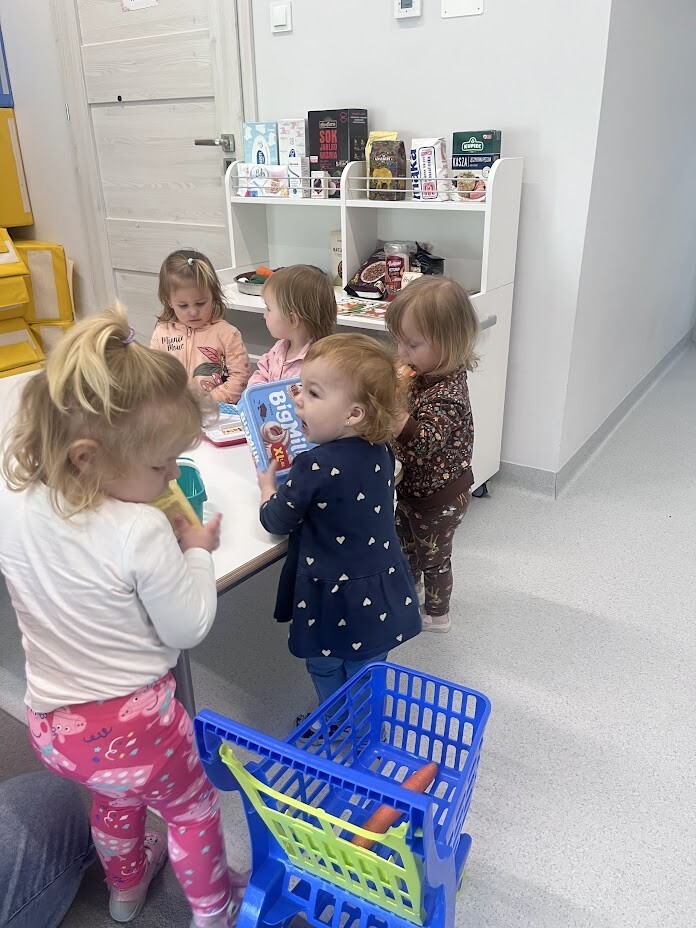 Zabawy tematyczne i zorganizowane królowały w tym tygodniu. Temat kompleksowy zaktywizował nas do odwiedzenia pobliskiego sklepu, w którym dzieci dokonały drobnych zakupów. Po powrocie w każdej z sal powstały kąciki, w których dzieci mogły wcielić się w rolę ekspedientki/ekspedienta oraz klienta sklepu.