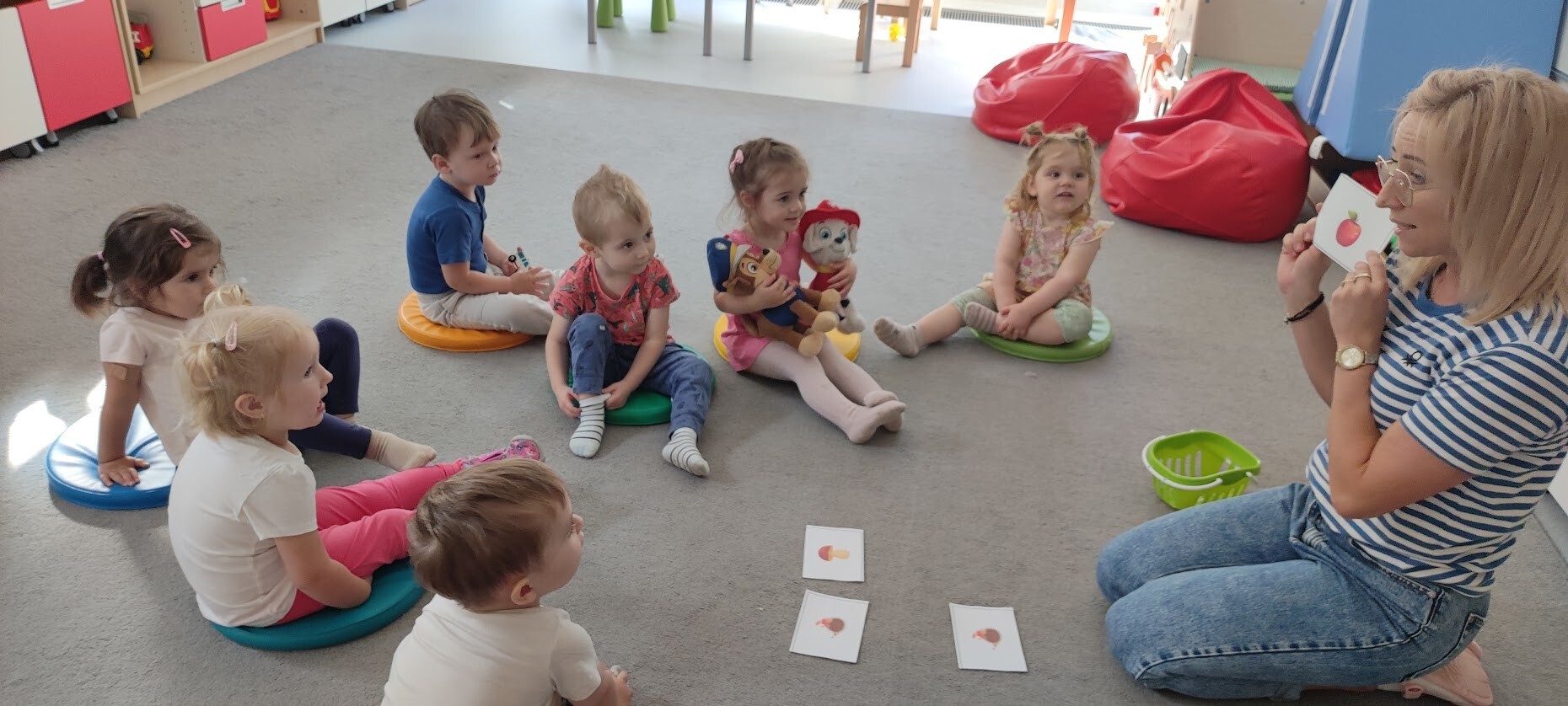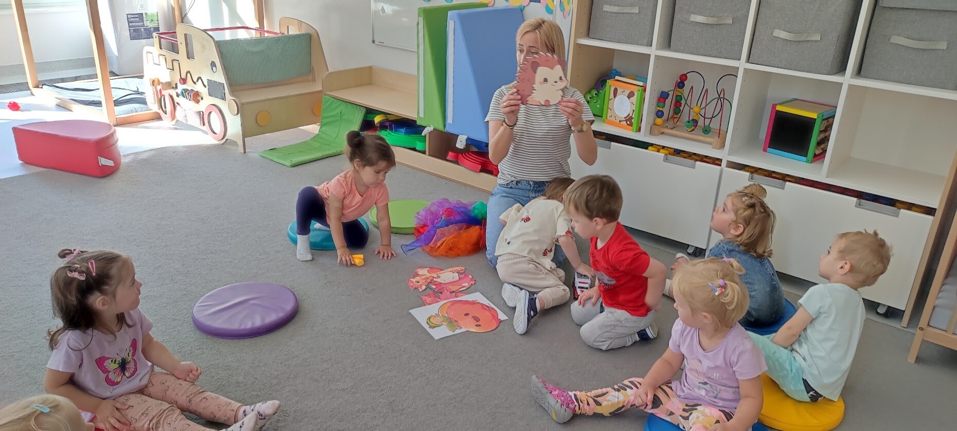 Jesień zagościła w pełni w naszym żłobku. Zmieniona została dekoracja na oknach, oraz przed wejściem do budynku. Kolory jesieni zachwycają, zapach przypomina już chłodniejsze poranki. My w żłobku nie zwalniamy, delektujemy się nowymi wyzwaniami i doceniamy zaangażowanie dzieci w zajęcia. Plastyczne twory, elementy matematyki tym razem pojawiły się podczas tego tygodnia, co uchwyciliśmy na zdjęciach.