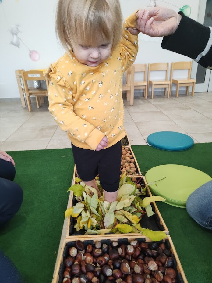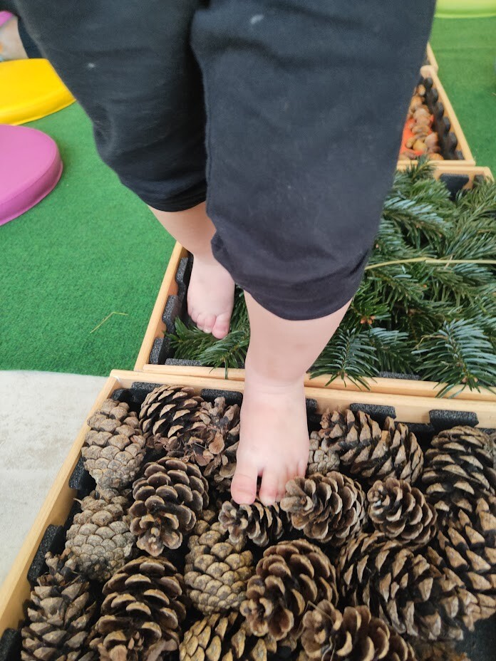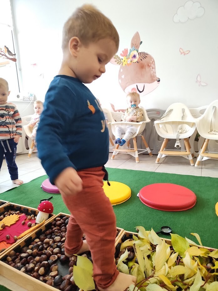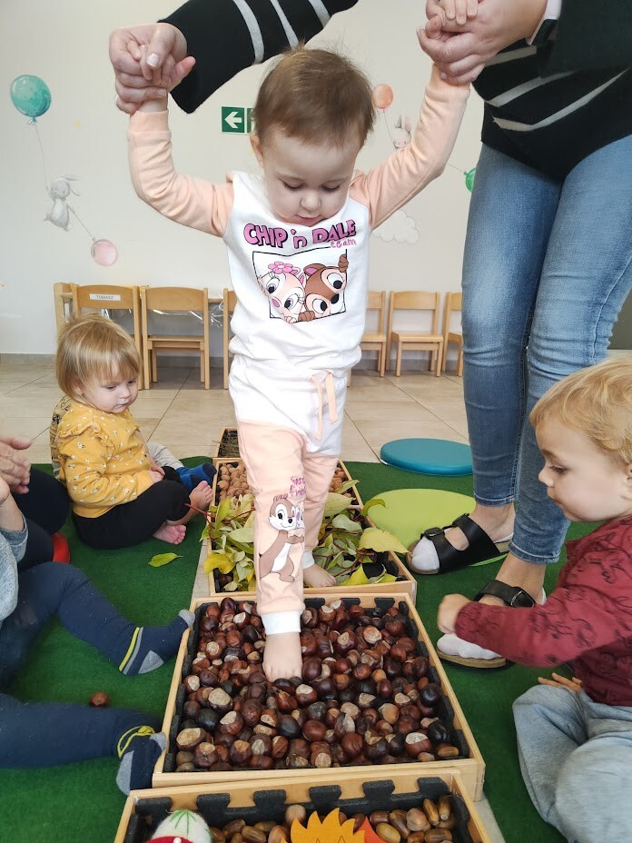 Nie dla każdego dziecka było to proste zadanie, przejść bosą stopą po zróżnicowanej sensorycznie ścieżce. Dla odważnych dróżka nie kończyła swego biegu, gdy wesoło brnęły zataczając koło. Sukcesem takich zajęć jest obserwacja pokonywania przez dzieci barier, ograniczeń. Już wiemy, że dzieci starsze, którym proponowaliśmy wiele tego typu zajęć w ubiegłym roku szkolnym z większą łatwością pokonują ścieżkę. Zatem efekt został osiągnięty, co szczególnie nas raduje.