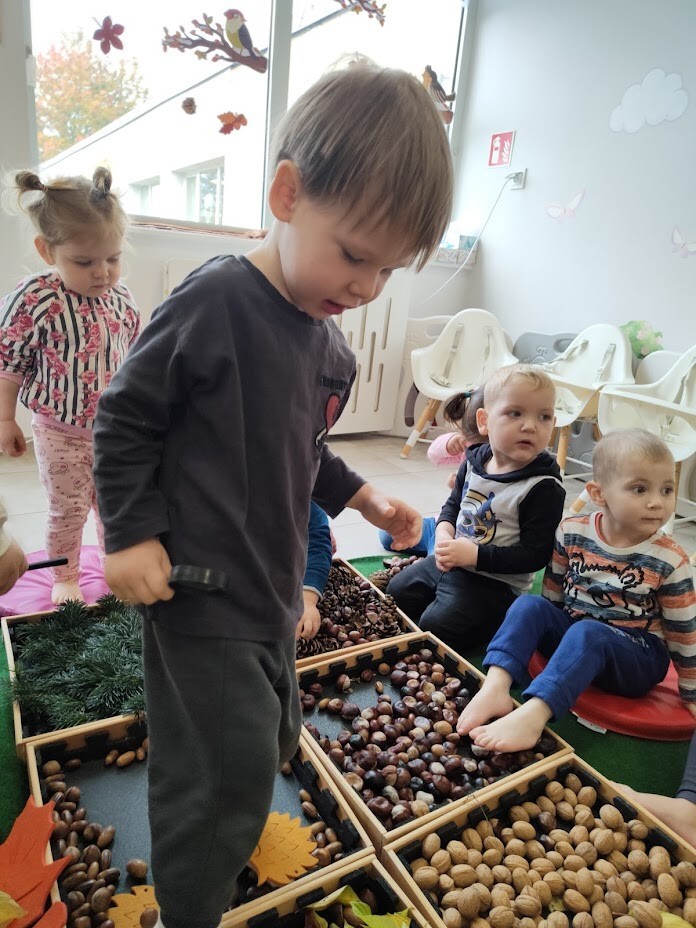 Propozycja zajęć dodatkowych w miesiącu październiku. Dary Pani jesieni to niezwykle wdzięczny materiał, łatwy w pozyskaniu: liście , szyszki, brzozowe patyki, kasztany, żołędzie oraz gałązki iglaste a wszystko zamknięte w pudełkach przygotowanych na tę okoliczność.