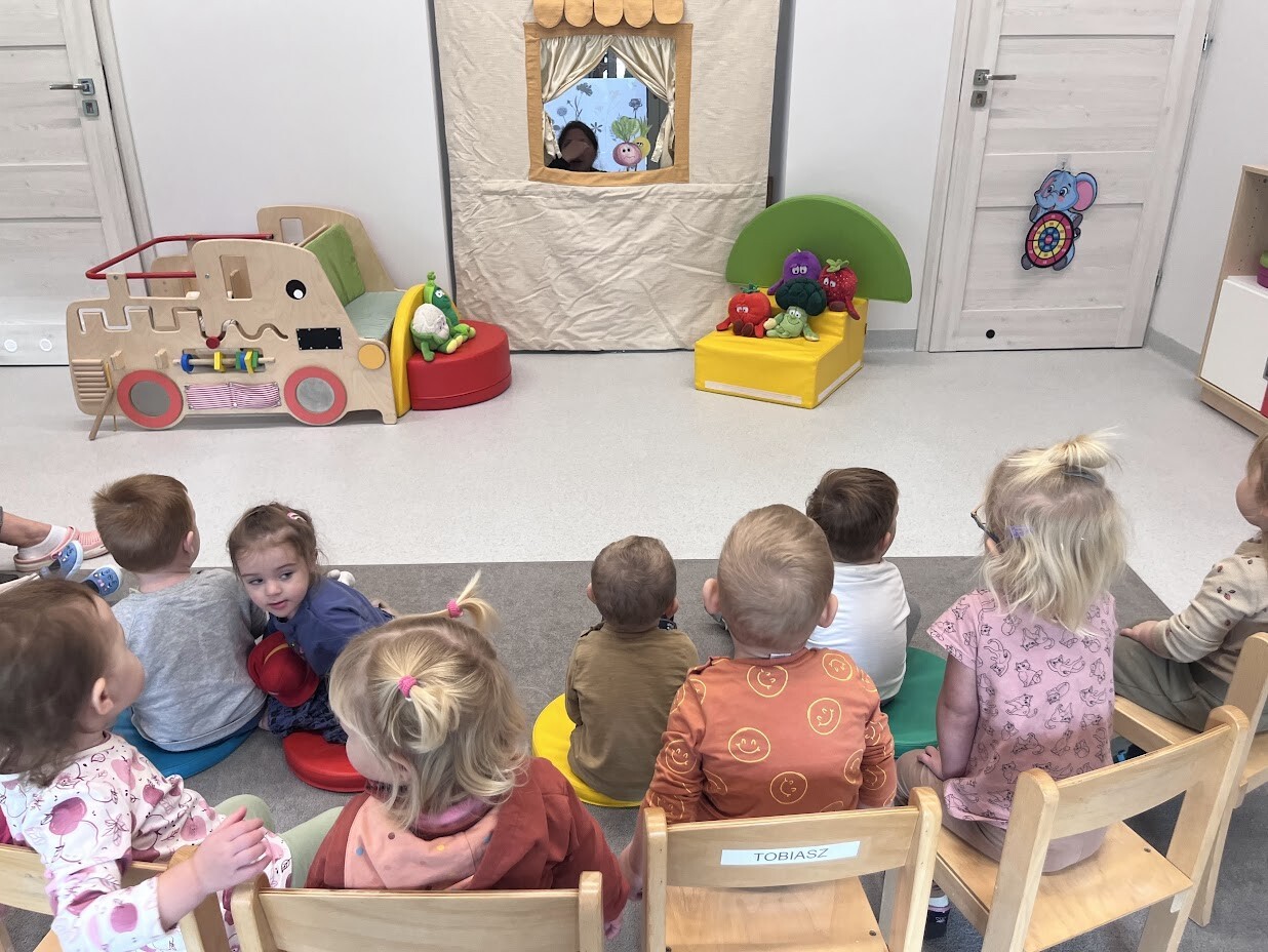 Takimi słowami rozpoczął się teatrzyk w wykonaniu cioci Agnieszki. Tym razem w roli głównej wystąpiły warzywa, które nie do końca mogły się ze sobą porozumieć. Tak to już bywa, że nie tylko dzieci się na siebie dąsają ale również warzywa.