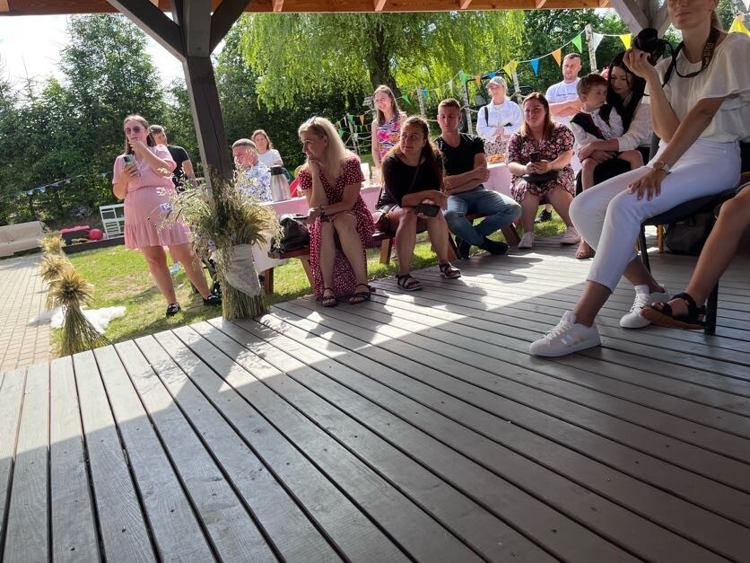 Po tak licznych emocjach wszyscy kosztowali pysznych ciast i owoców, biesiadując przy stołach z szklanką wody i kawy.