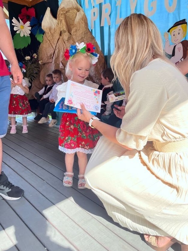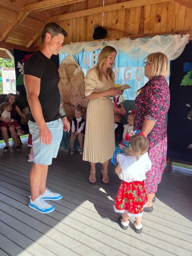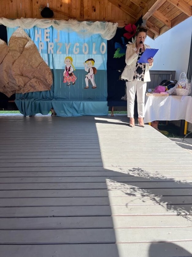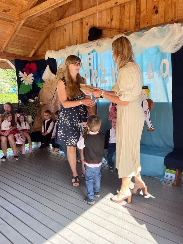 Podczas uroczystości Pani Agnieszka Wolańska - Zastępca Wójta Gminy Wicko gratulowała dzieciom pięknych występów, pracownikom żłobka dziękowała za wkład w opiekę i wychowanie życząc udanych i bezpiecznych wakacji.
