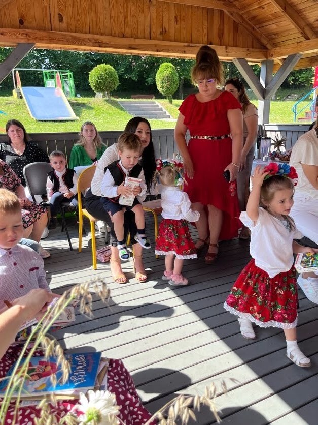 W roku szkolnym 2023/2024 żłobek ukończyło 20 absolwentów, którym Pani Dyrektor wręczała dyplomy, książki oraz klocki.
