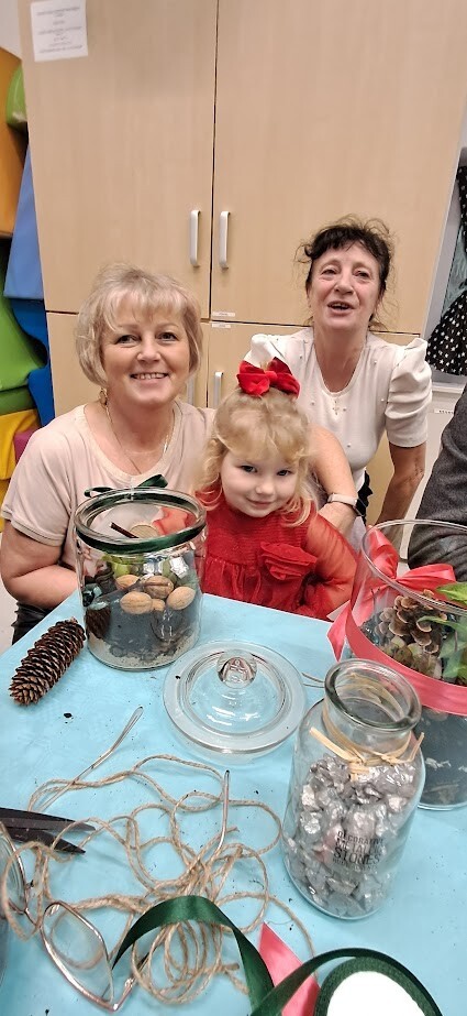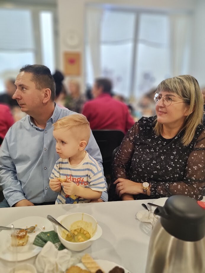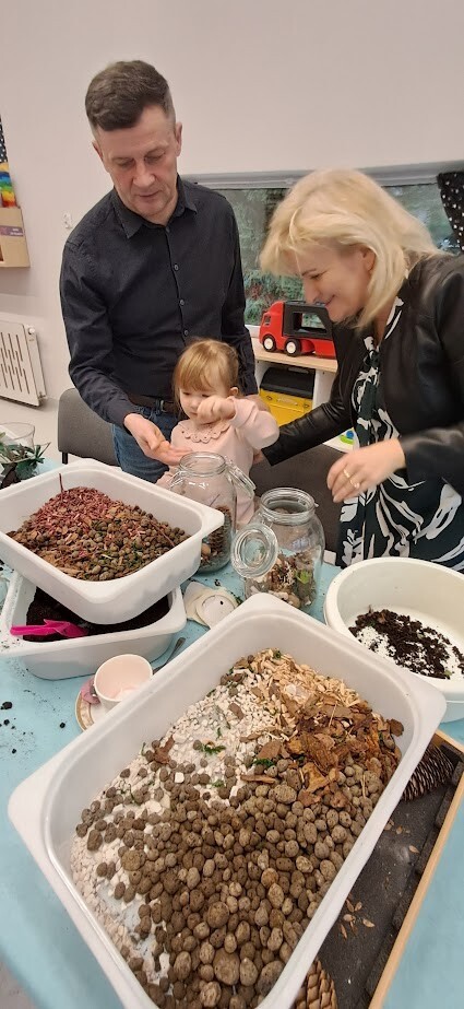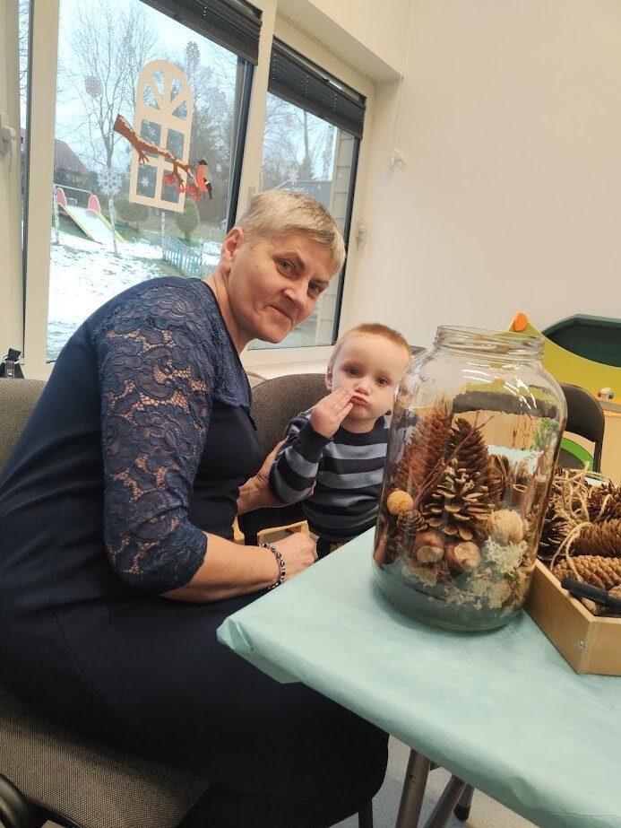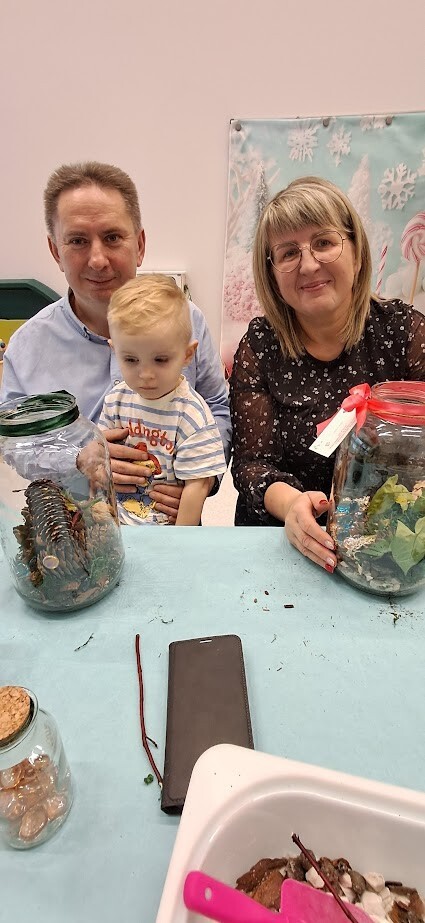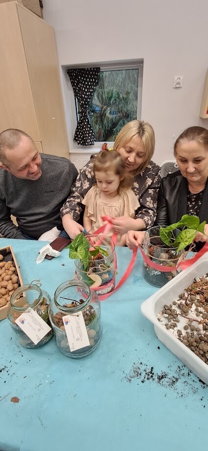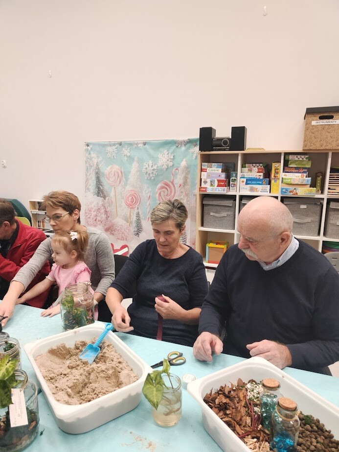 Drugi dzień świętowaliśmy Dzień Babci i Dziadka w żłobku. Tym razem dzieci ze starszej grupy wiekowej oczekiwały na zaproszonych gości. Spotkanie rozpoczęło się warsztatami "Las w słoiku", które było niezapomnianym prezentem od wnucząt. Wspólnie obejrzeliśmy prezentację występów dzieci na ekranie telewizora, podczas kosztowania zupy oraz ciast.