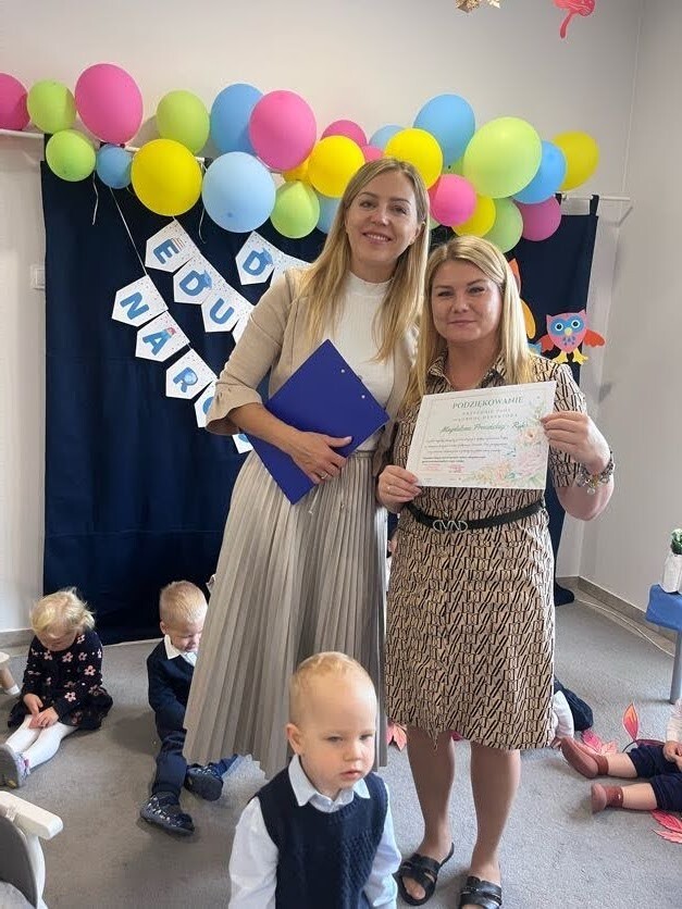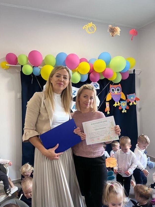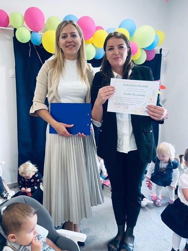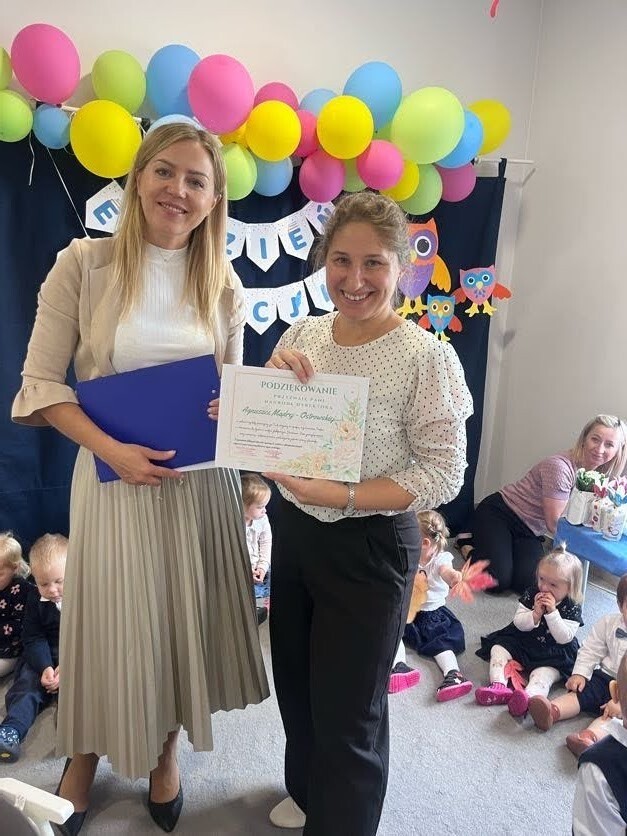 Dziękujemy także Panu Wójtowi Dariuszowi Waleśkiewicz, którego reprezentowała Pani Barbara Czaja - Inspektor od spraw Oświaty składając wszystkim pracownikom żłobka przede wszystkim satysfakcji z wykonywanych obowiązków oraz czerpania radości z każdego dnia, gdzie dzieci są nieodłącznym elementem.