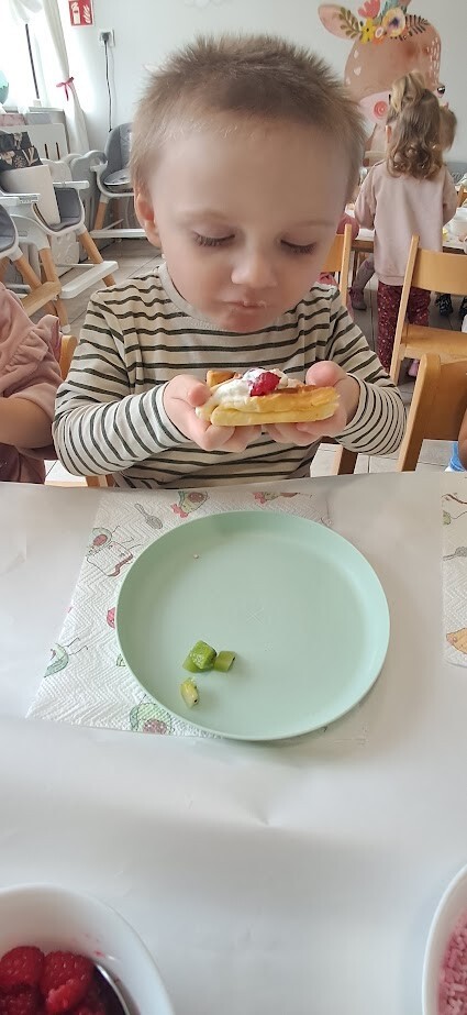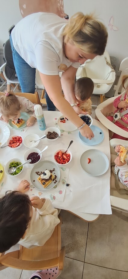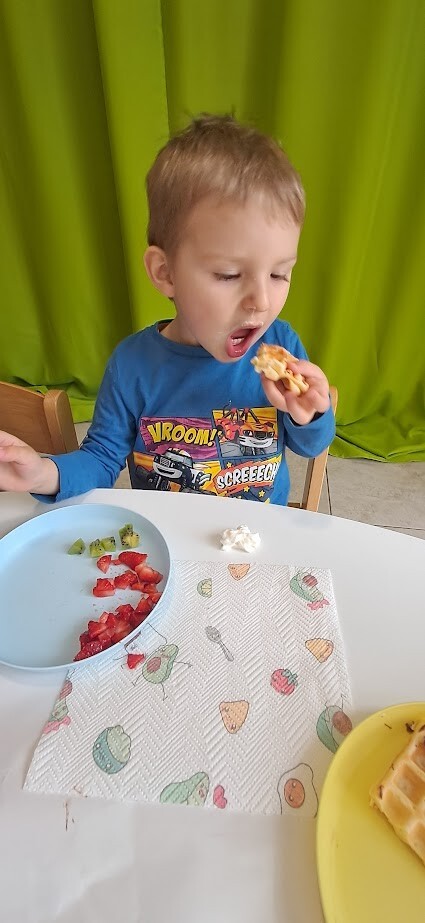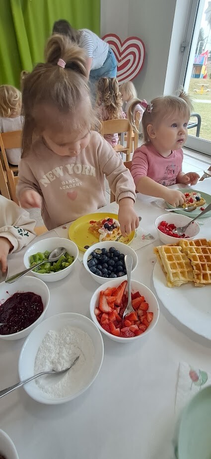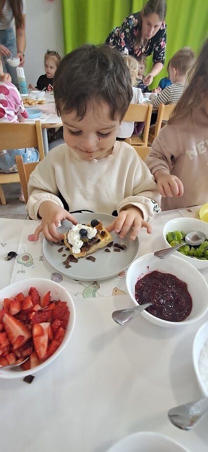 Mniam, mniam! Kto nie lubi chrupiących, pachnących gofrów? W naszym żłobku obchodzimy Dzień Gofra, aby wspólnie cieszyć się pysznymi smakami i wesołą atmosferą. Dzięki zajęciom kulinarnym dzieci miały okazję zobaczyć jak powstają gofry i uczestniczyć w samodzielnym dekorowaniu. Owoce, dżem, i inne smakołyki sprawiają, że każdy gofr staje się wyjątkowy, oraz smaczny. Maluszki mogły dotykać, wąchać, i smakować różne składniki, rozwijać zmysły i ciekawość kulinarną.