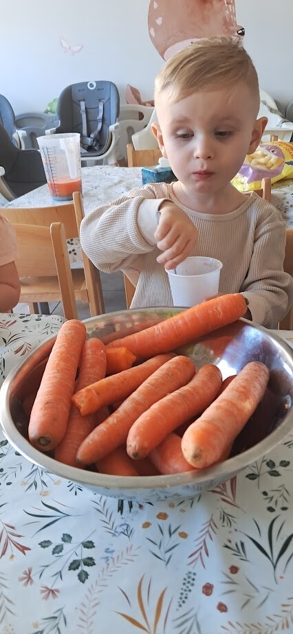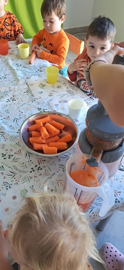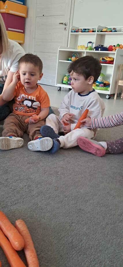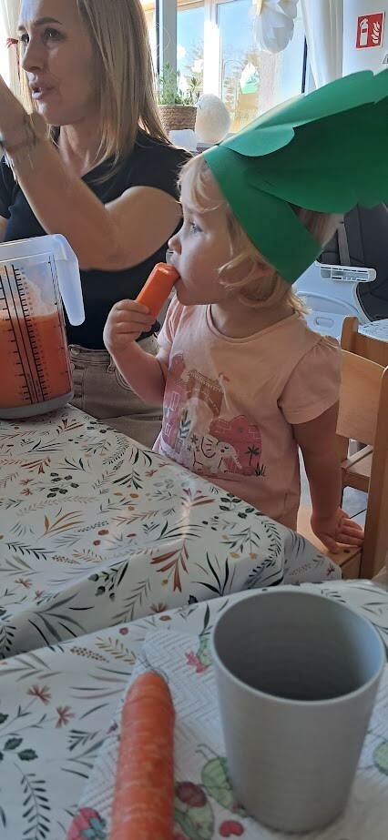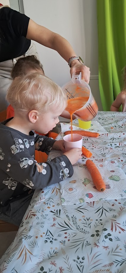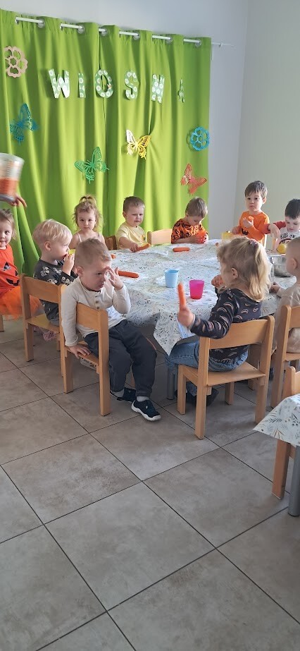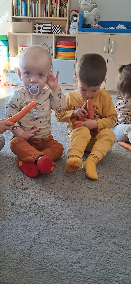 Dzień Marchewki to wyjątkowe święto, które obchodziliśmy w naszym żłobku. Już od samego rana dzieci przychodziły ubrane w kolorze pomarańczowym. Dzieci mogły skosztować zdrowych marchewkowych przekąsek, wszystkimi zmysłami poprzez zabawę, śpiew, taniec i smakowanie .A świeżo przygotowany soczek marchewkowo-jabłkowy ugasił pragnienia po hucznej zabawie.. Były to świetne zajęcia by zachęcić dzieci do zdrowego jedzenia warzyw.