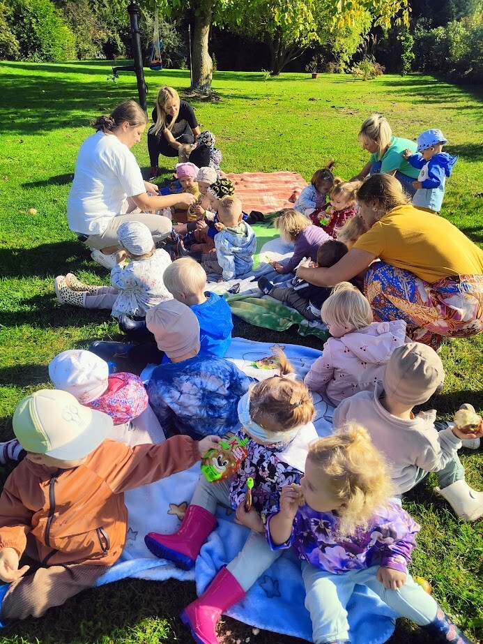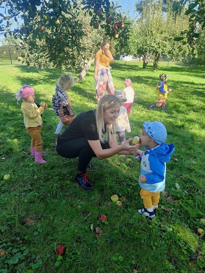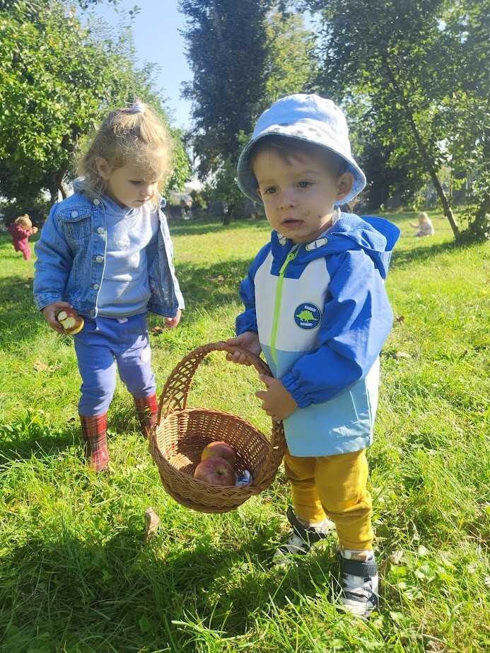 Jakie to było cudowne powitanie jesieni. Dzięki uprzejmości Pana Radnego Mariusza Filipionek, oraz żony Izabeli dzieci przyjęły zaproszenie do sadu.W otoczeniu licznych owocowych drzew, pięknej zieleni, oraz niekończących się jesiennych rabat, dzieci spędziły pierwszy dzień jesieni w plenerze. Nie obyło się bez zbierania jabłek do koszyków, zabaw w berka czy gry w piłkę nożną. Dzieci z wielką ochotą po intensywnych zabawach zjadły drugie śniadanie w przemiłym towarzystwie, słuchając wielu pochwał ze strony gospodarza. Z całego serca dziękujemy za tak mile spędzony czas.