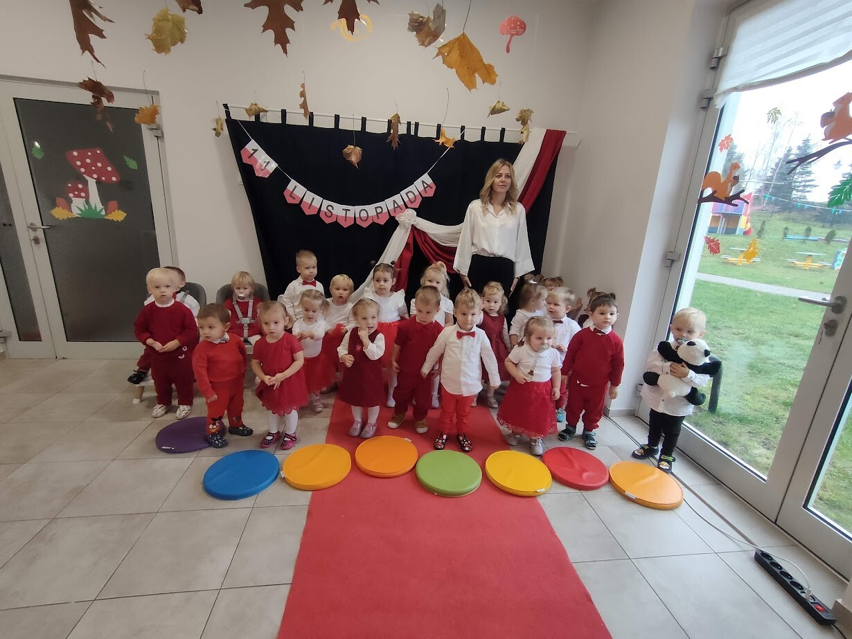 Z okazji jakże uroczystej dzieci z Gminnego Żłobka w Charbrowie w dniu dzisiejszym obchodziły Święto Odzyskania przez Polskę Niepodległości. W barwach biało czerwonych z flagą w ręku przedstawiły, krótki występ artystyczny, który rozpoczął wspólnie zaśpiewany Hymn Narodowy - Mazurek Dąbrowskiego.Kolejnym krokiem była inscenizacja piosenki przez grupę starszych dzieci "Niepodległości dzień" z wykorzystaniem chust biało-czerwonych. Grupa maluszków zaprezentowała utwór pt. : ,,Serca biało czerwone" .