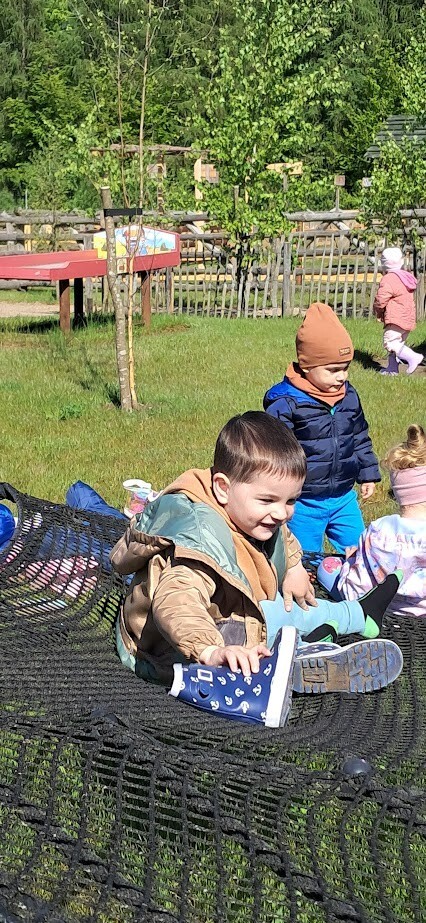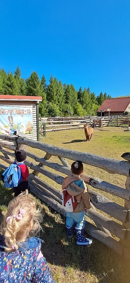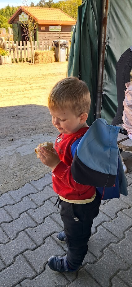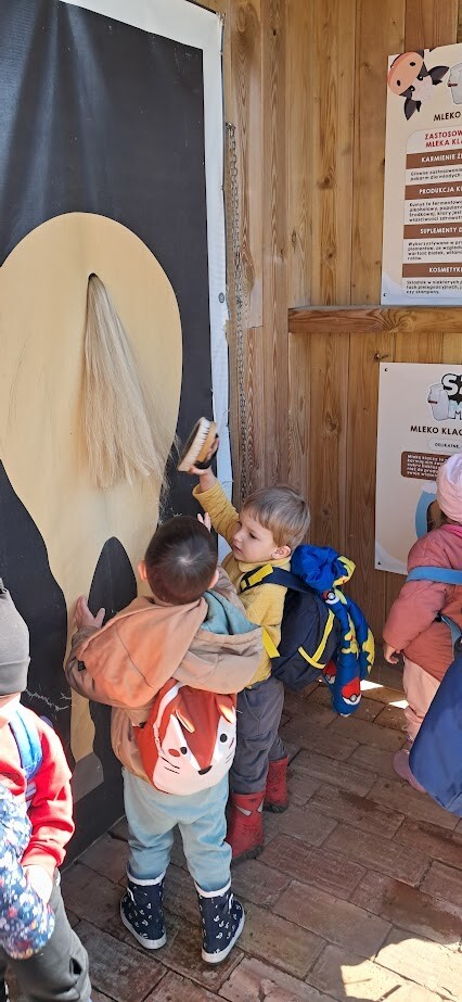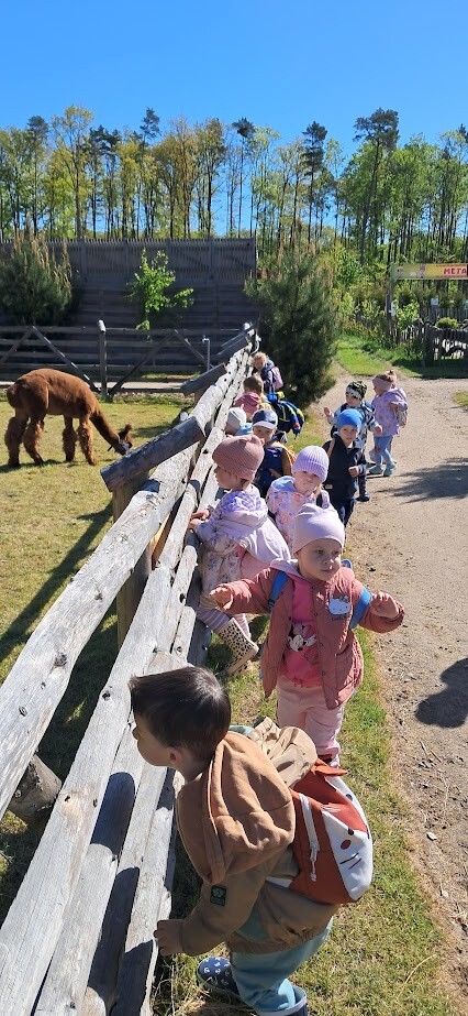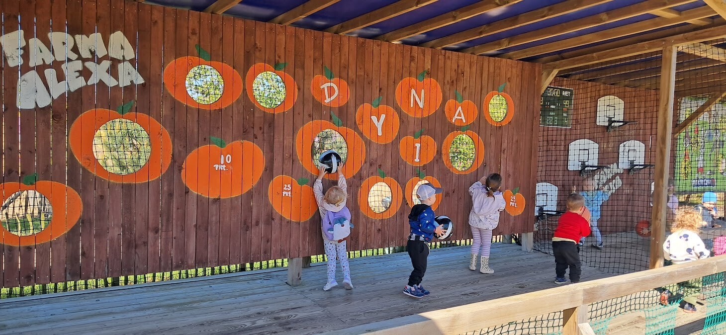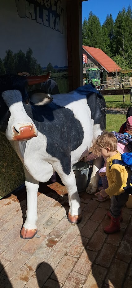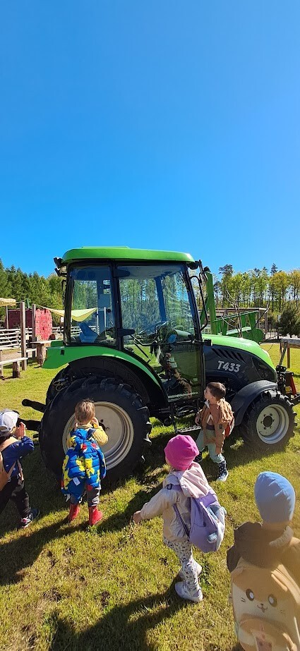 W słoneczny poranek grupa dzieci starszych wyruszyła na długo wyczekiwaną wycieczkę na Farmę Alexa. Już podczas podróży busem panowała wesoła atmosfera – dzieci śpiewały piosenki i wypatrywały przez okna zmieniający się krajobraz.. Po dotarciu na miejsce na początek dzieci wzięły udział w krótkim spacerze po gospodarstwie. Zobaczyły różne zwierzęta: kozy, owce, kury, lamy, alpaki, a nawet osła . Kolejnym punktem programu było dojenie krowy, czesanie końskich ogonów, gra na instrumentach wykonanych z z artykułów kuchennych . Dzieci dowiedziały się i zobaczyły gdzie mieszkają owady, zwiedziły sektory sadzenia truskawek, kapusty, ziemniaka, dyni itp. Potem przyszedł czas na przejażdżkę wozem ciągniętym przez traktor, co wywołało mnóstwo śmiechu i radości. Po pełnym wrażeń poranku dzieci zjadły śniadanie – świeże owoce, bułkę z serem i słodką bułkę.Radości nie było końca gdy zwieńczeniem wycieczki było korzystanie z kolorowych trampolion oraz placu zabaw. Zadowolone, lekko zmęczone, ale pełne nowych wrażeń i wiedzy dzieci wróciły do żłobka. To była niezapomniana wycieczka, która na długo pozostanie w ich pamięci.