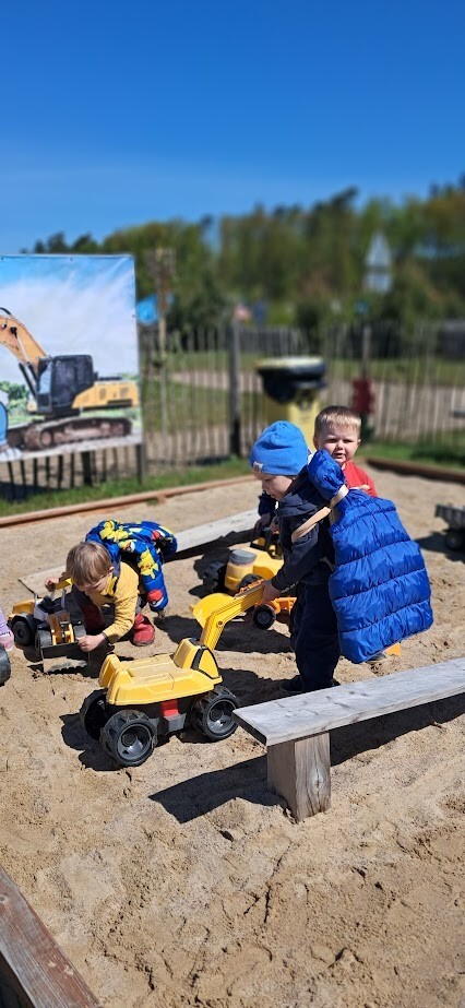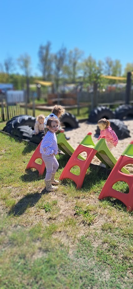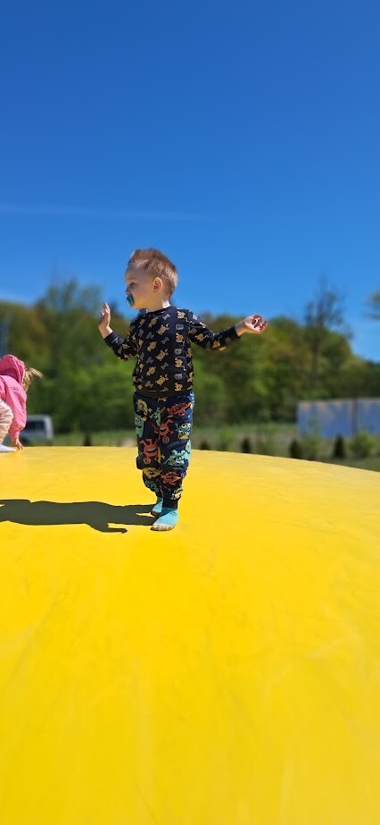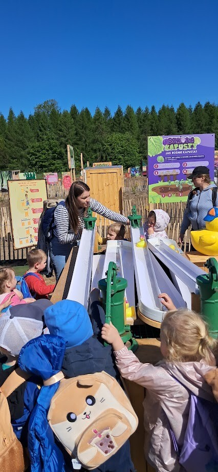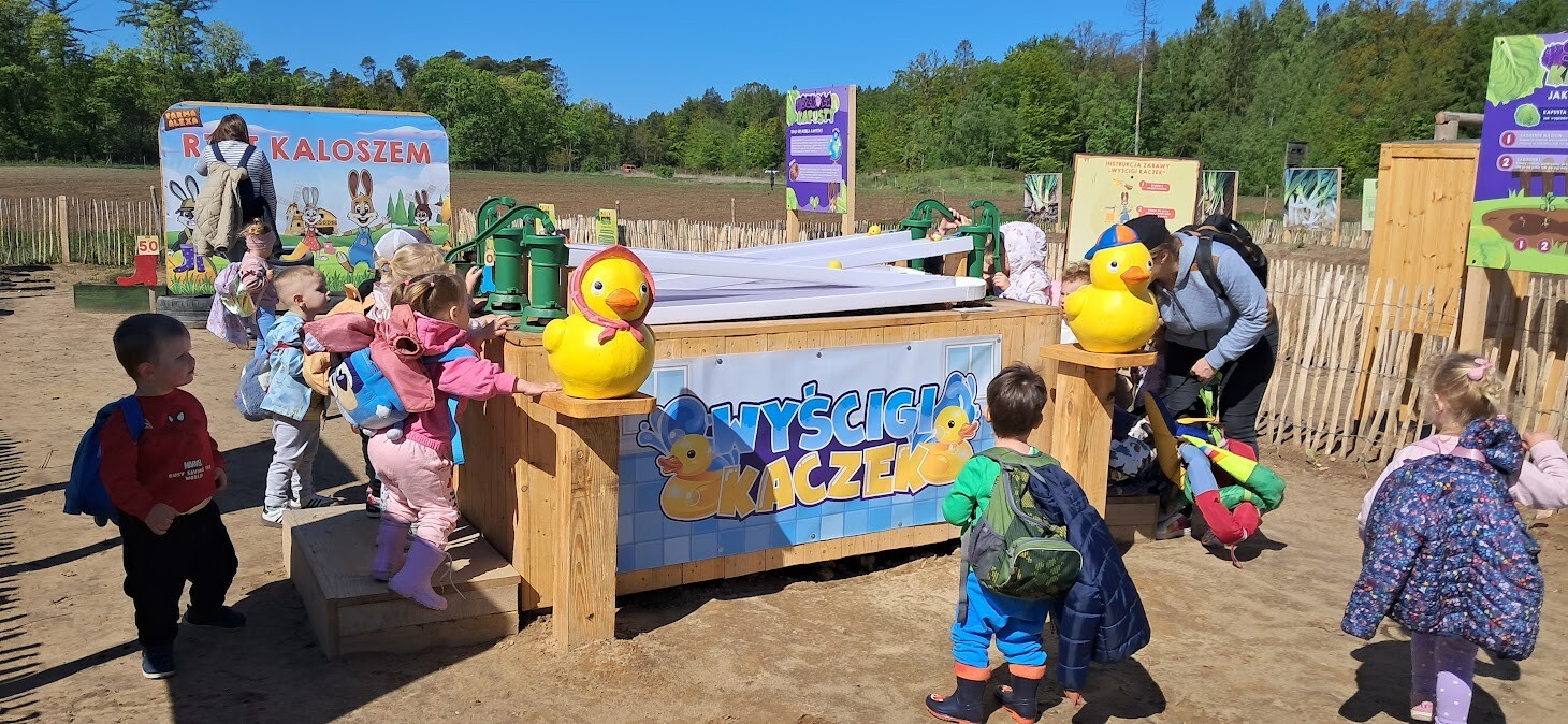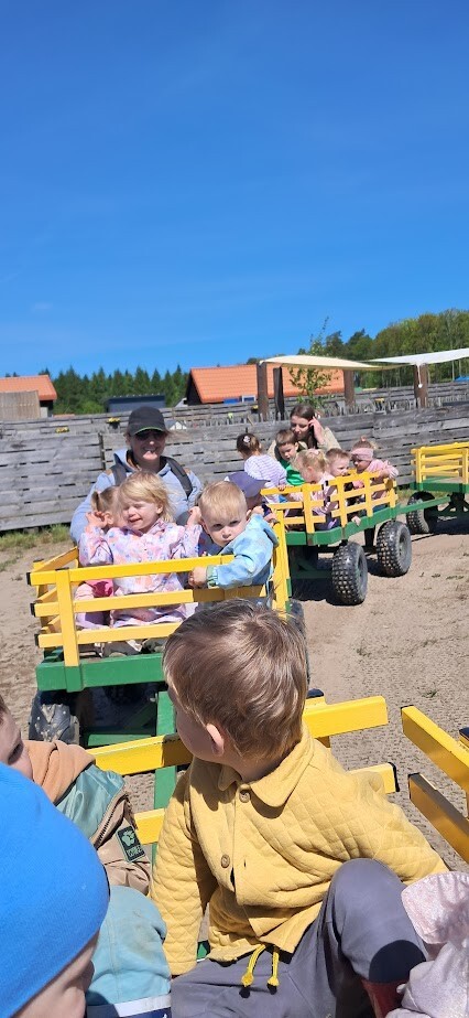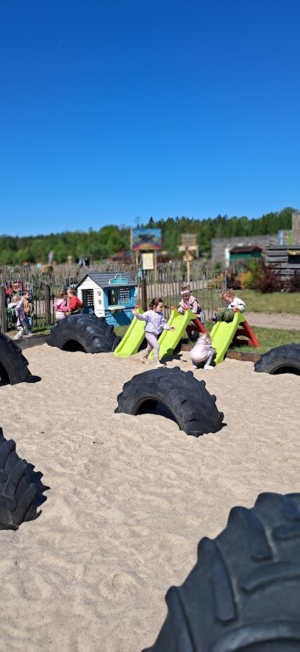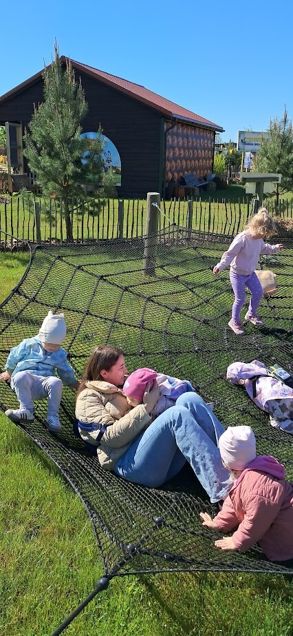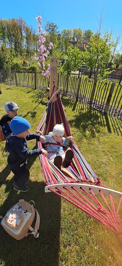 W słoneczny poranek grupa dzieci starszych wyruszyła na długo wyczekiwaną wycieczkę na Farmę Alexa. Już podczas podróży busem panowała wesoła atmosfera – dzieci śpiewały piosenki i wypatrywały przez okna zmieniający się krajobraz.. Po dotarciu na miejsce na początek dzieci wzięły udział w krótkim spacerze po gospodarstwie. Zobaczyły różne zwierzęta: kozy, owce, kury, lamy, alpaki, a nawet osła . Kolejnym punktem programu było dojenie krowy, czesanie końskich ogonów, gra na instrumentach wykonanych z z artykułów kuchennych . Dzieci dowiedziały się i zobaczyły gdzie mieszkają owady, zwiedziły sektory sadzenia truskawek, kapusty, ziemniaka, dyni itp. Potem przyszedł czas na przejażdżkę wozem ciągniętym przez traktor, co wywołało mnóstwo śmiechu i radości. Po pełnym wrażeń poranku dzieci zjadły śniadanie – świeże owoce, bułkę z serem i słodką bułkę.Radości nie było końca gdy zwieńczeniem wycieczki było korzystanie z kolorowych trampolion oraz placu zabaw. Zadowolone, lekko zmęczone, ale pełne nowych wrażeń i wiedzy dzieci wróciły do żłobka. To była niezapomniana wycieczka, która na długo pozostanie w ich pamięci.