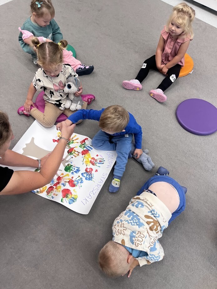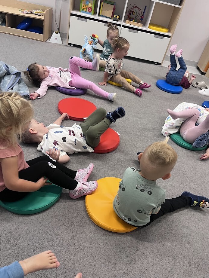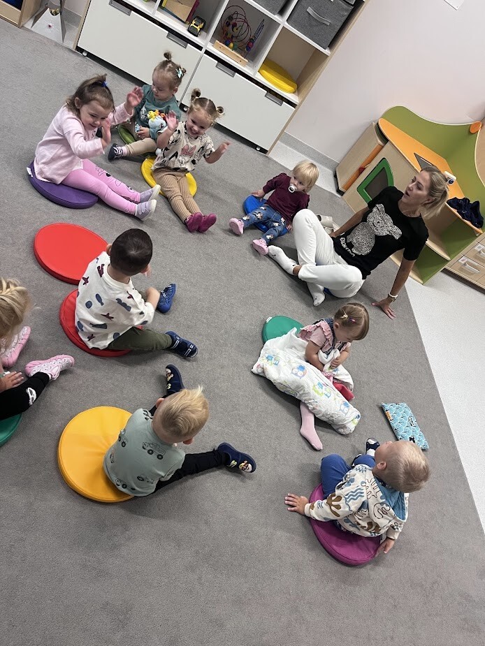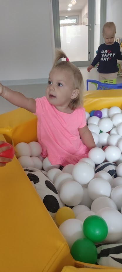 Dni adaptacyjne w żłobku podczas zabaw zorganizowanych oraz swobodnych, spacery oraz zabawy w ogrodzie żłobkowym.