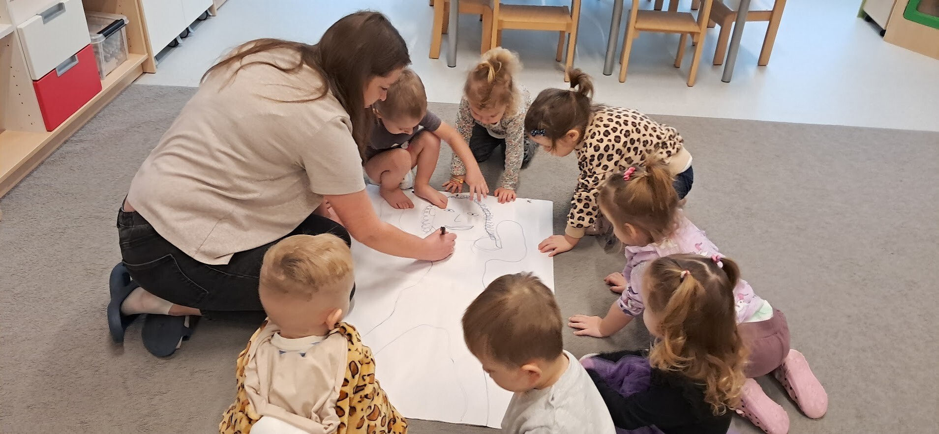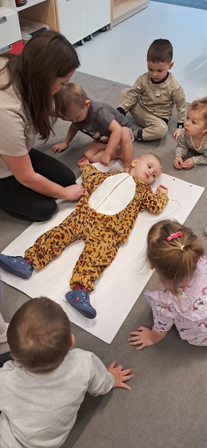 W tym tygodniu zrealizowany został temat ,,Części ciała'' Dzieci utrwalały wiedzę wskazywały i nazywały poszczególne części ciała. Podczas zabawy muzyczno- ruchowych do utworu ,,Głowa, ramiona, kolana, pięty'' oraz ,,Dwie małe rączki klaszczą'' dzieci improwizowały przy czym świetnie się bawiły. Tego typu zajęcia pomagają żłobkowiczom w nauce o sobie, poprawiają ich zdolności motoryczne, a także uczą nazw części ciała w zabawny i angażujący sposób.