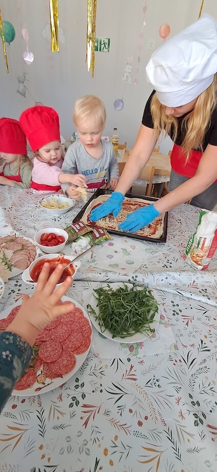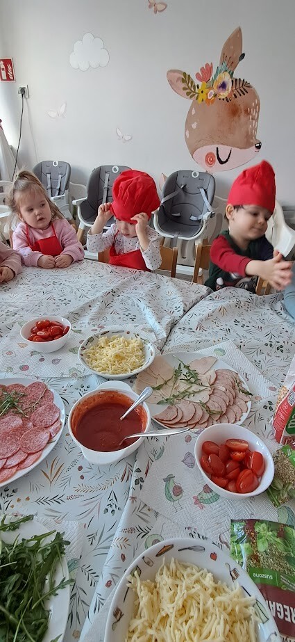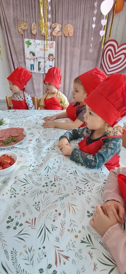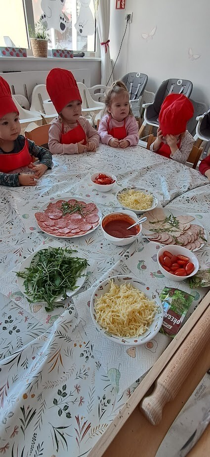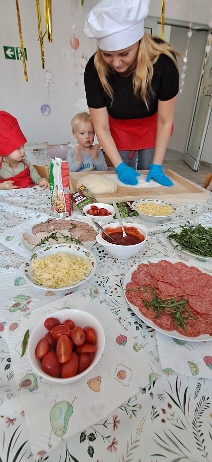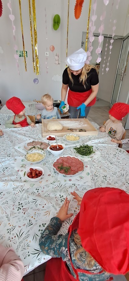 Dziś w żłobku celebrowaliśmy ,,Dzień Pizzy,, Dzieci miały możliwość przygotowania własnej pizzy - wyrabiały ciasto, wałkowały, a następnie nakładały swoje ulubione składniki. Była to doskonała okazja by maluchy rozwijały swoje zdolności manualne. Po przygotowaniu pizzy żłobkowicze czekali z niecierpliwością na moment gdy spróbują swojego wypieku