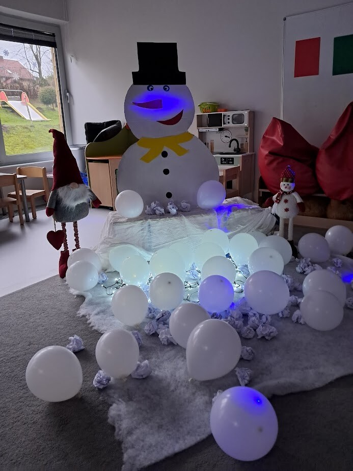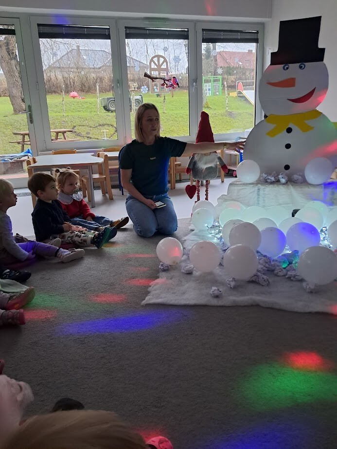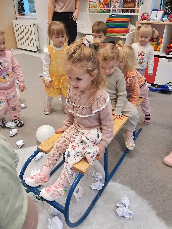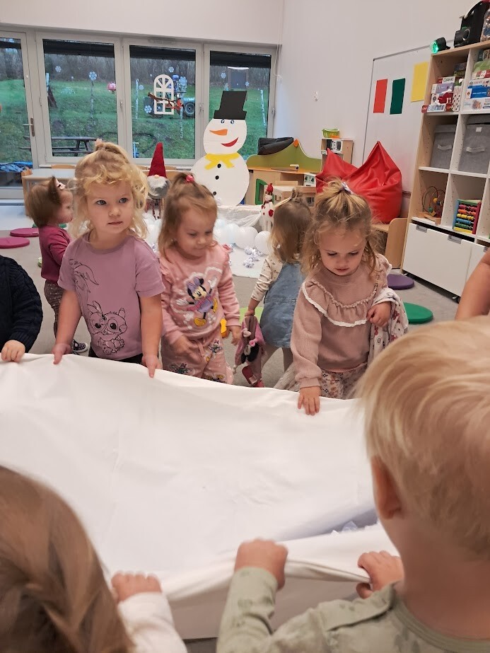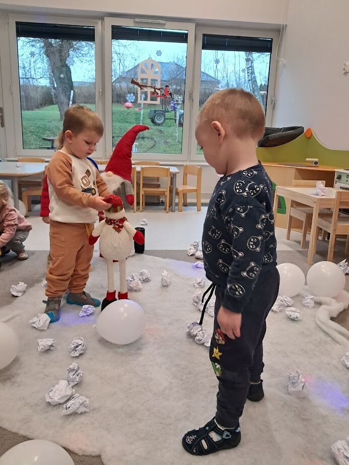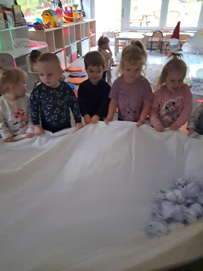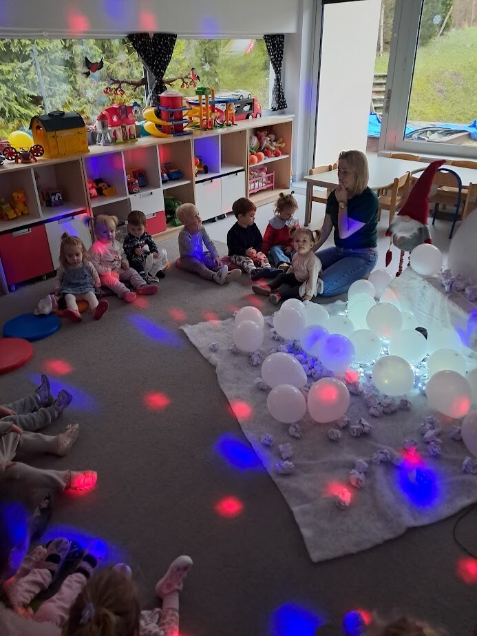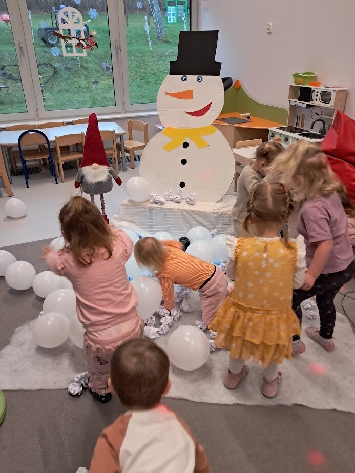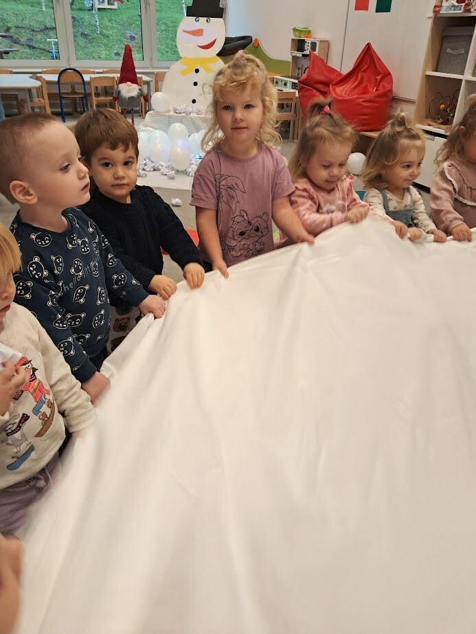 Opowieści zimowe oraz zabawy, w których pokazujemy dzieciom zimową aurę wprowadzają nas w zimowy klimat, gdy za oknem brak białego puchu. Zaproponowana forma słuchowiska, oraz bitwa na śnieżki pozwoliła dzieciom choć trochę zbliżyć się do warunków pełnej zimny.