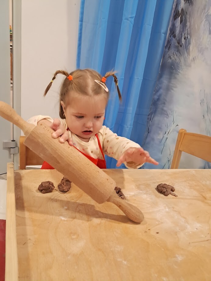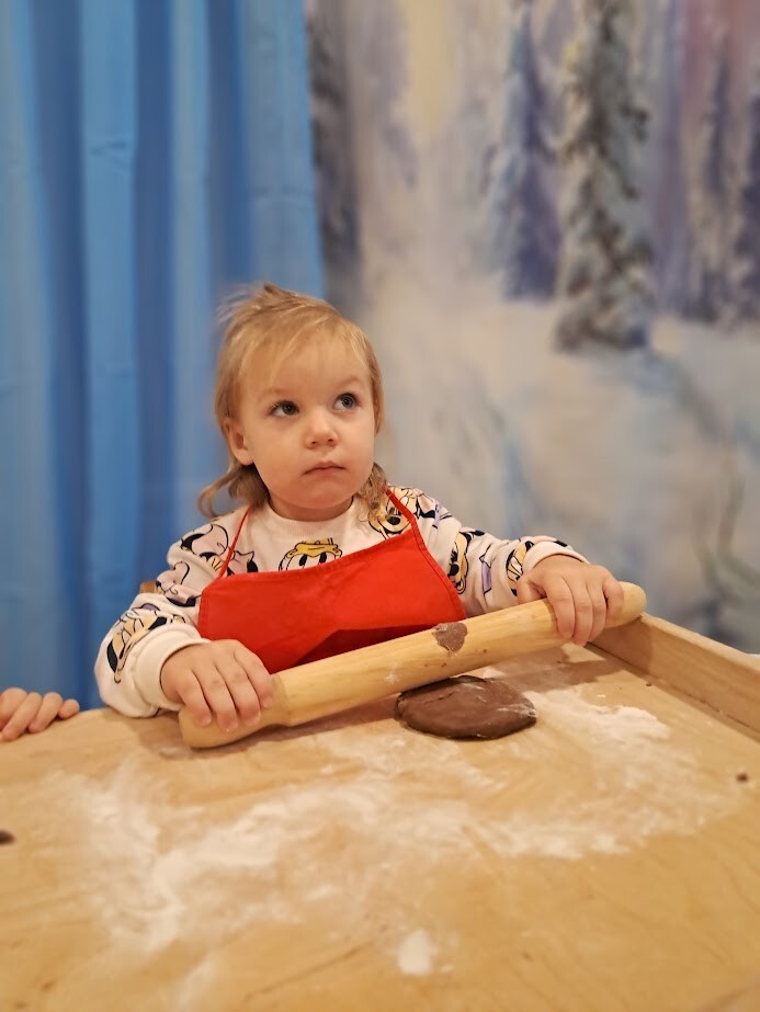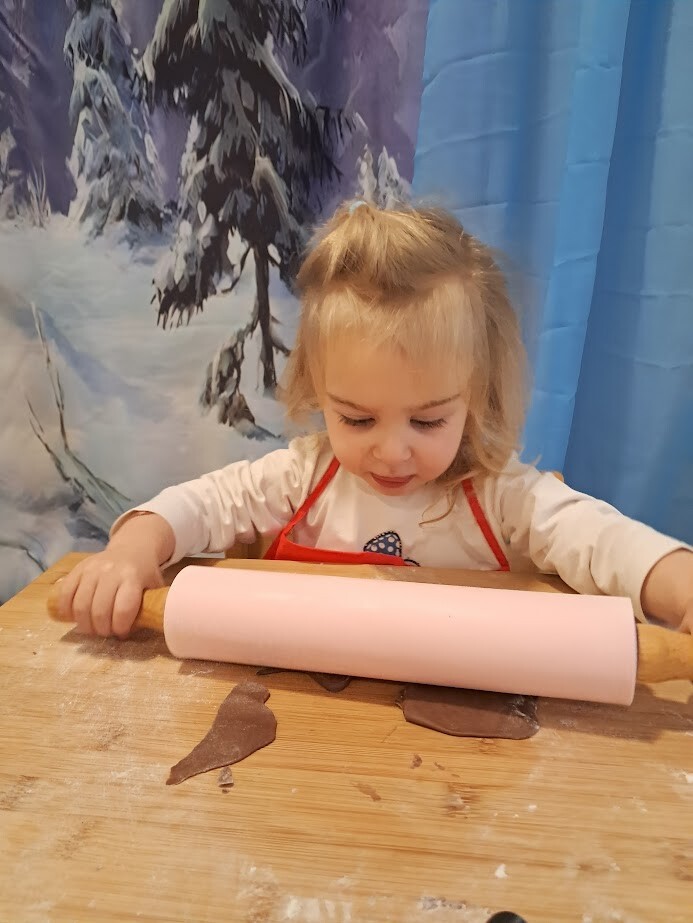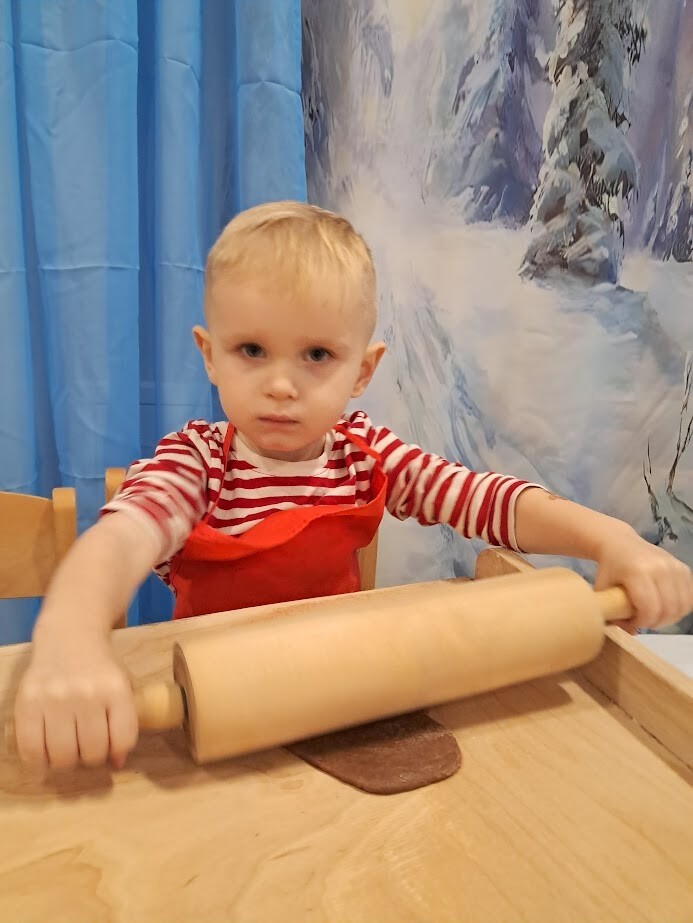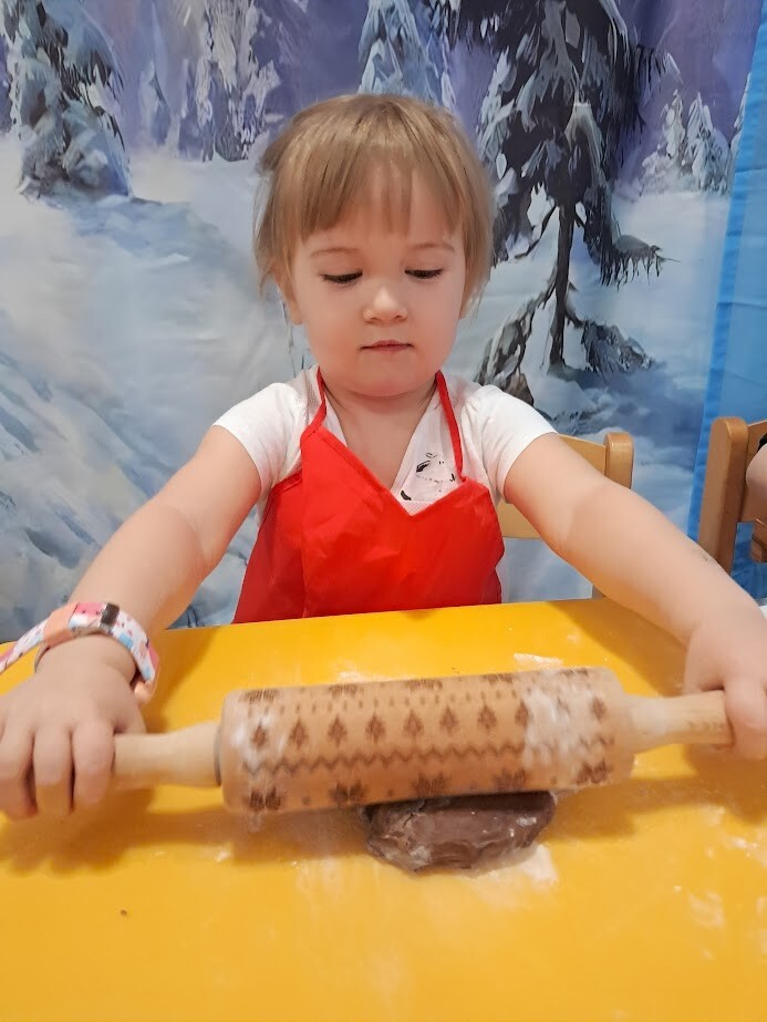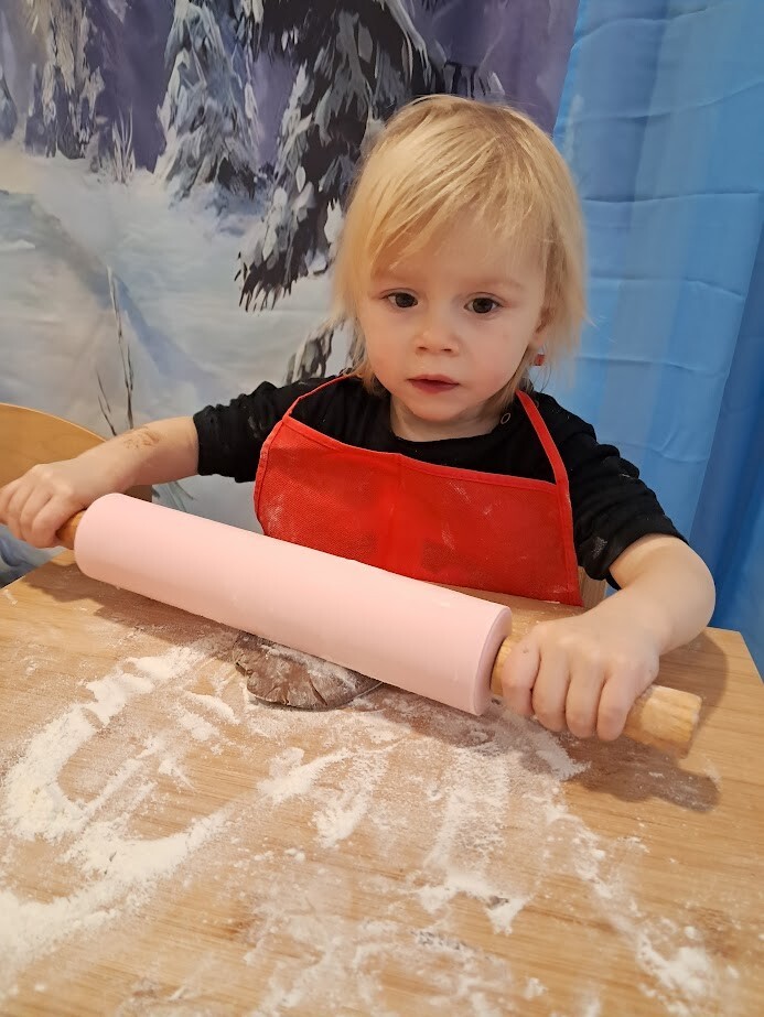Czas przedświąteczny kojarzy się także z pieczeniem pierniczków, czego nie mogło zabraknąć w naszym żłobku. Zapach przypraw korzennych unosił się w powietrzu. Przy dźwiękach muzyki zimowej dzieci z wielkim zaangażowaniem skupiły się na wałkowaniu i wykrawaniu ciasteczek. Trudno nam było odciągnąć żłobkowiczów od tego zajęcia. Cieszymy się ogromnie oraz zachęcamy do wspólnym prac w kuchni zwłaszcza w okresie przedświątecznym.