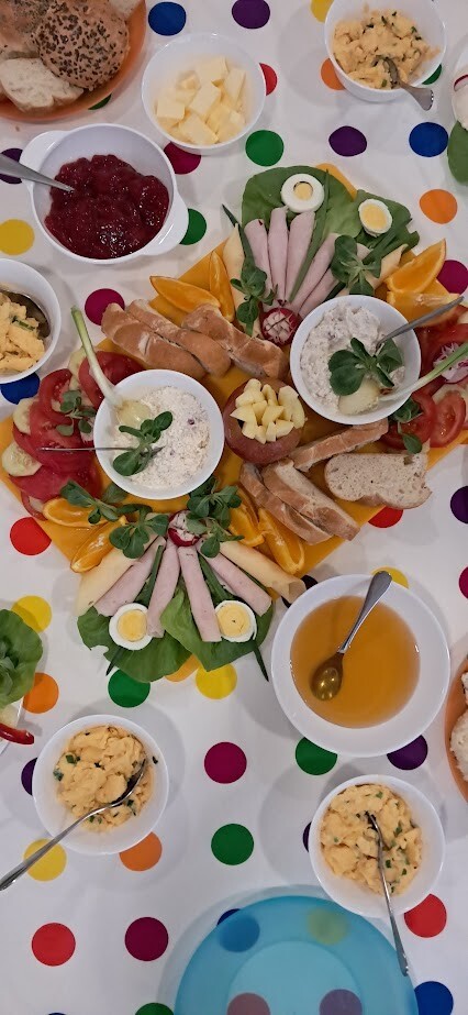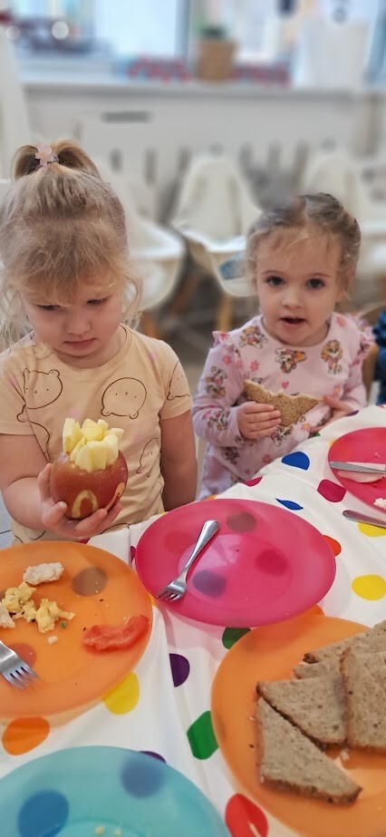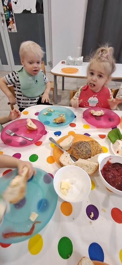 Celem zajęć było zapoznanie dzieci z zasadami zdrowego odżywiania poprzez wspólne przygotowanie prostych i zdrowych potraw śniadaniowych. Dzieci miały okazję zaangażować się w przygotowanie posiłków, co wspomogło ich motorykę małą, kreatywność oraz zrozumieniu, jak ważne jest jedzenie pełnowartościowych produktów. Dzieci wesoło komentowały, co maja na talerzu, zachwycając się nowymi smakami i wyglądem posiłku. Z radością pokazywały sobie nawzajem, jak udekorowały swoje kanapki warzywami i owocami.