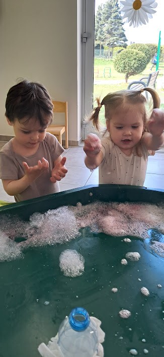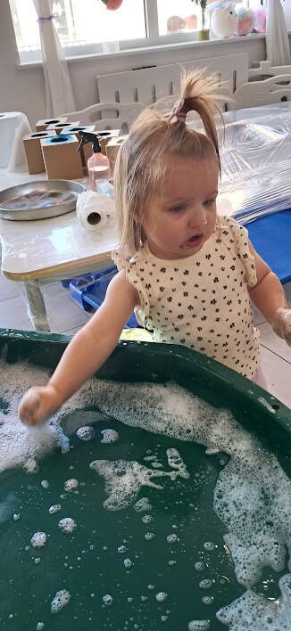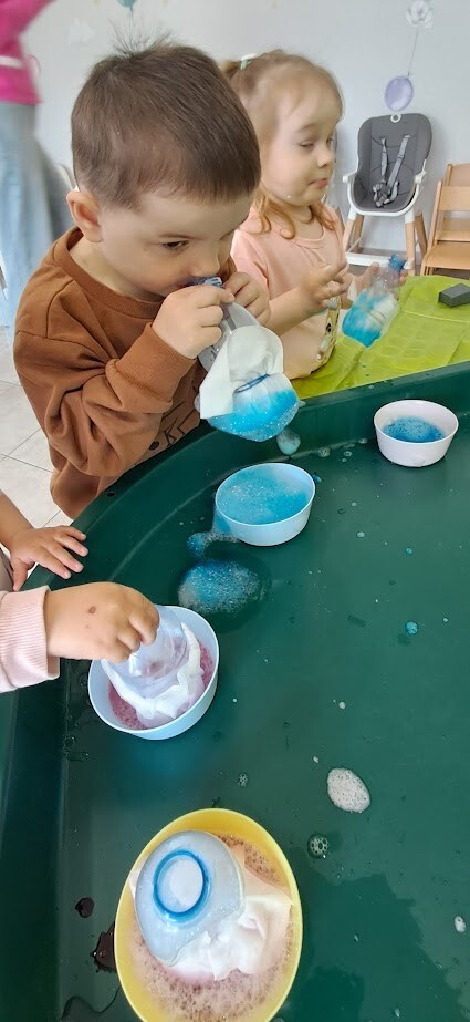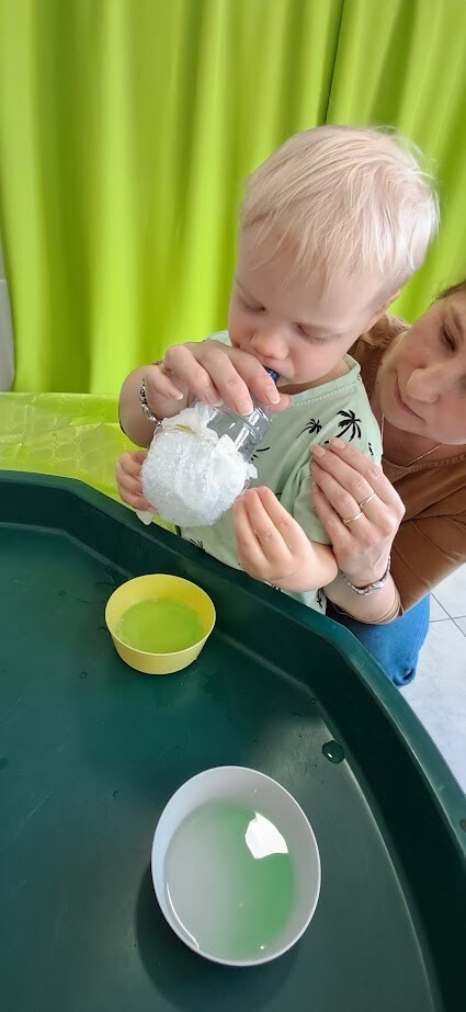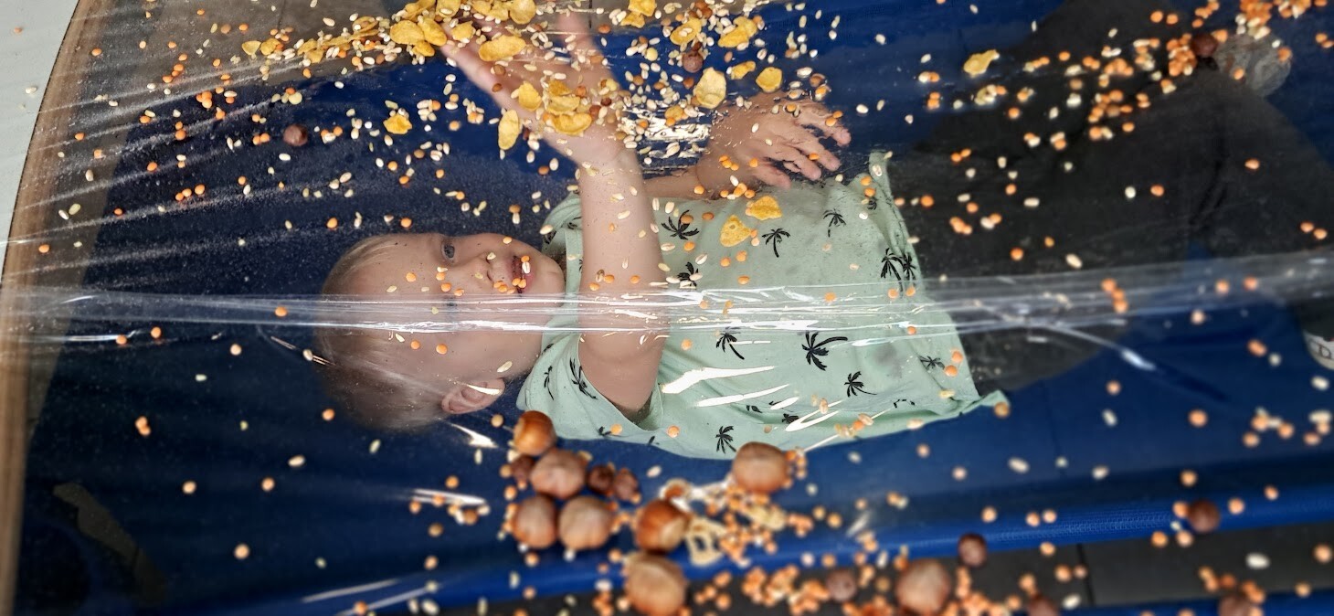spadających kropelek wody, płatków kukurydzianych, ryżu czy kaszy. To chwile relaksu, śmiechu i odkrywania nowych doznań w bezpieczny i delikatny sposób. Zajęcia te rozwijają świadomość własnego ciała.