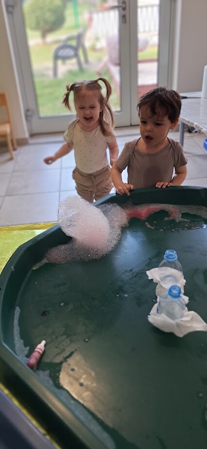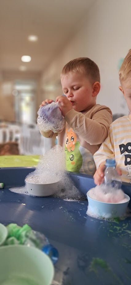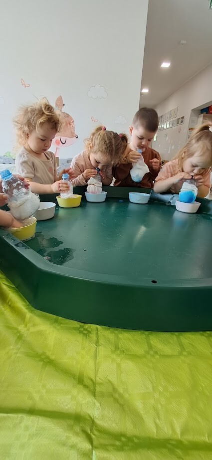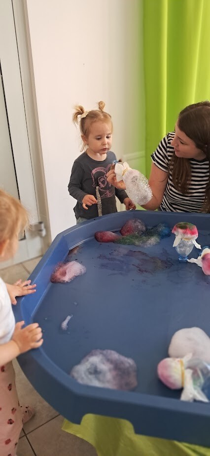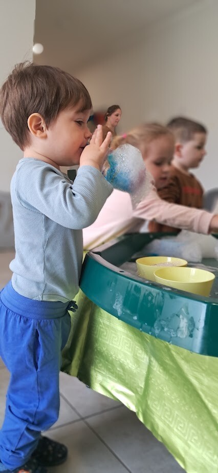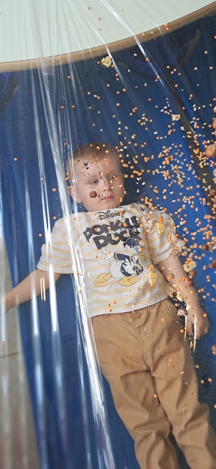 w ,,Podróży przez emocje'' dzieci wyruszają w kolorową wyprawę, podczas której poznają różne uczucia poprzez zmysły i doświadczenia. Każde zajęcia to spotkanie z inna emocją- radością, smutkiem ,złością czy spokojem- odkrywana przez dotyk, dźwięk, zapachy, ruch i zabawę. Dzieci bawią się materiałami sensorycznymi, uczestniczą w różnych eksperymentach z wykorzystaniem kolorów świateł i dźwięków. Zajęcia wspierają rozwój emocjonalny, integracje sensoryczną oraz budują samoświadomość i relacje z innymi.