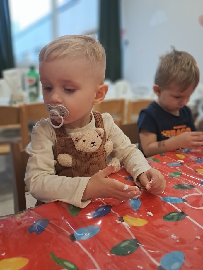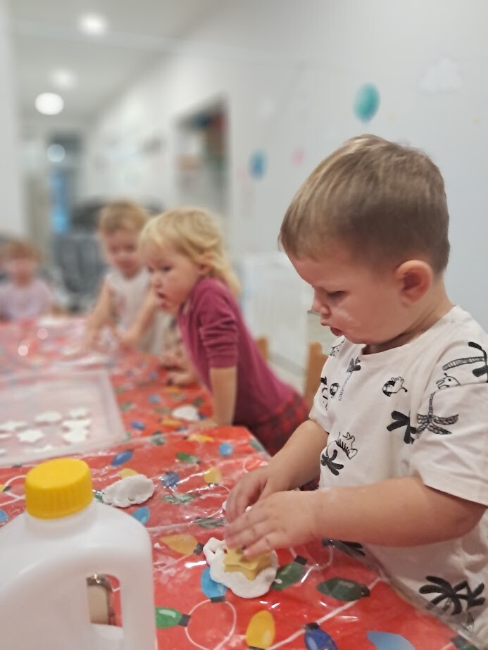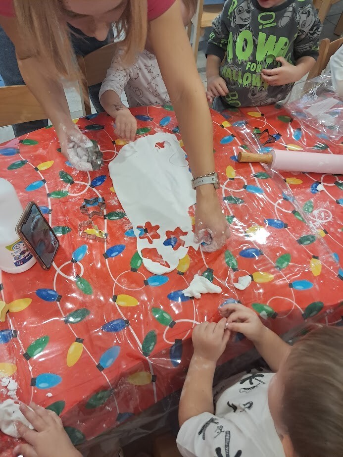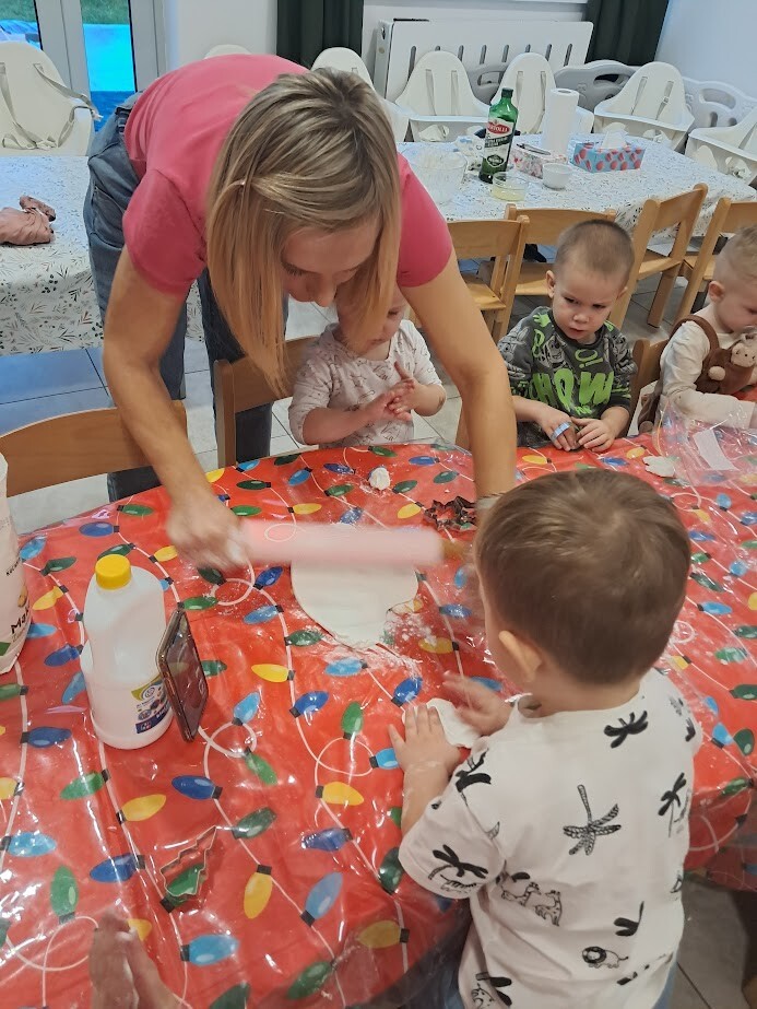 Kiermasz świąteczny już tuz tuż zatem nie zwalniamy tempa. Przygotowania trwają pełną parą. Dzieci wykonały masę porcelanową, z której wykrawały za pomocą foremek do ciastek różne kształty. Masa po 24 godzinach stanie się twarda i ozdoby będzie można umieszczać na choince. Mamy nadzieję, że znajdą się chętni, podczas kiermaszu świątecznego, którzy zakupią wykonane przez dzieci ozdoby.