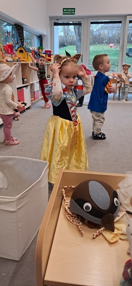 Karnawałowe przebieranki w żłobku to sposób na pobudzanie wyobraźni i kreatywności dzieci. Podczas zabawy mali uczestnicy mieli okazję wcielić się w różne postacie, zakładając różnorodne kostiumy. Wprowadziło nas to w karnawałowy nastrój i taneczne zabawy.