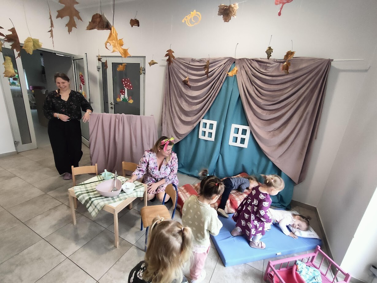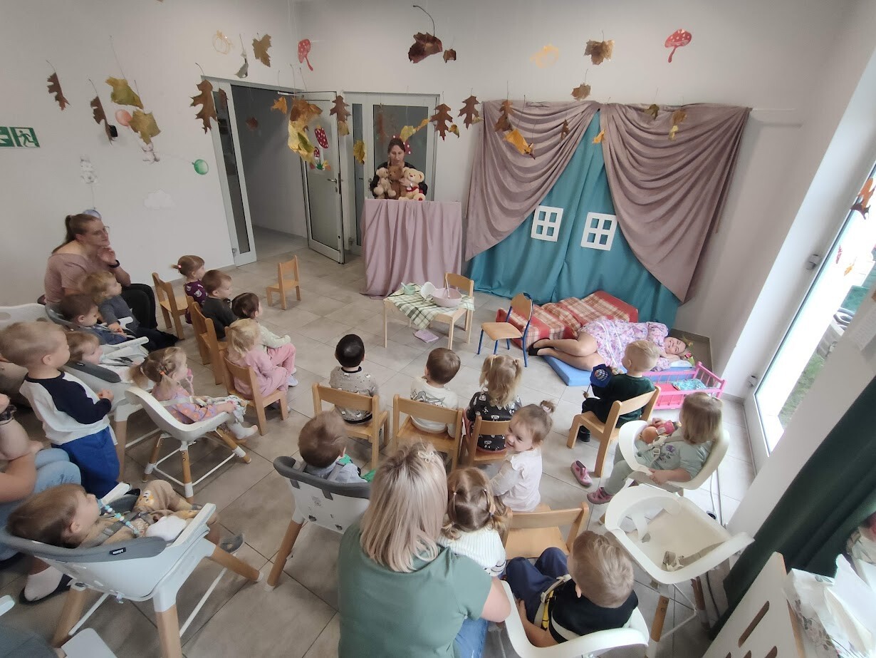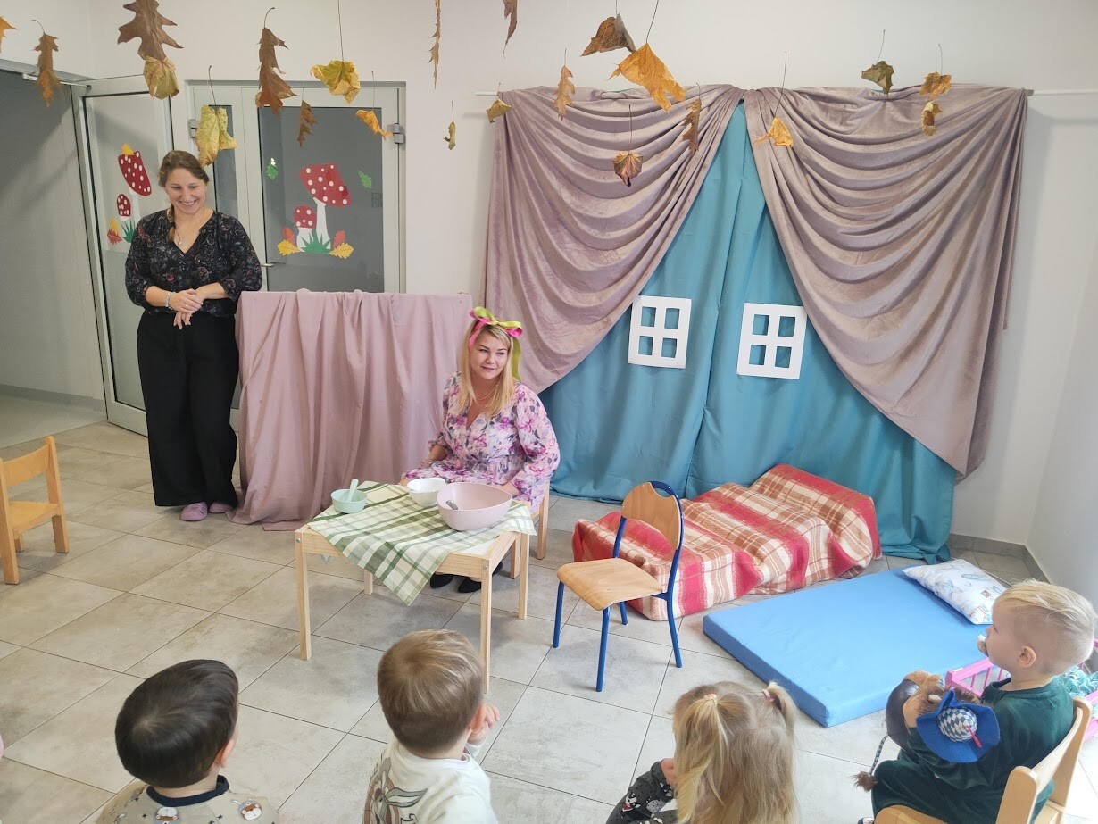 Tym razem pracownicy żłobka przedstawili dzieciom przedstawienie pt. : ,,Złotowłosa i trzy niedźwiadki". Bajka o Złotowłosej i trzech niedźwiadkach opowiada o dziewczynce, która bawiąc się sama w lesie, znalazła chatkę zamieszkałą przez trzy niedźwiadki. Z ciekawości zajrzała do środka. Ponieważ w środku nie było akurat jej mieszkańców, Złotowłosa postanowiła rozejrzeć się w środku .