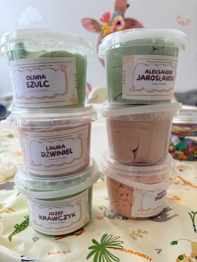 Po zakończonych zajęciach każde dziecko mogło zabrać swoją własnoręcznie wykonaną ciastoline aby kontynuować zabawę w domu.