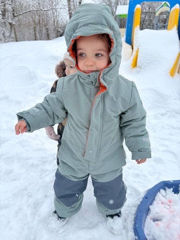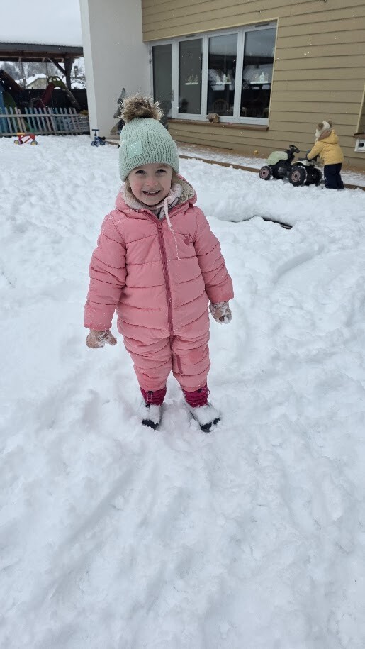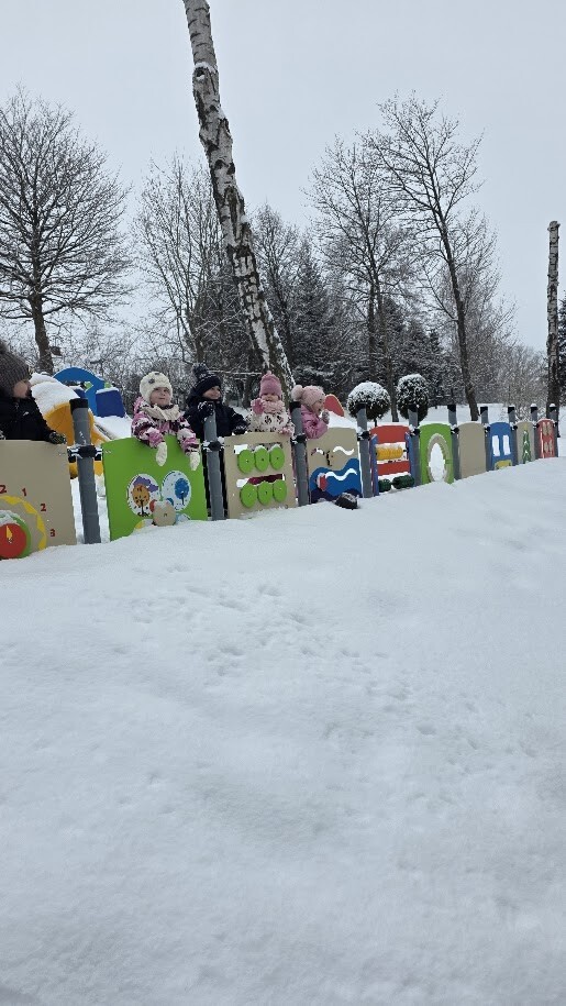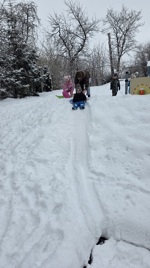 Po części sensorycznej przyszedł czas na swobodną zabawę na śniegu- dzieci zjeżdżały na sankach, rzucały się śnieżkami i cieszyły zimową aurą. Śmiech i dobra energia towarzyszyły nam przez cały czas, a wspólne aktywności na świeżym powietrzu wzmacniały integrację i sprawność ruchową.