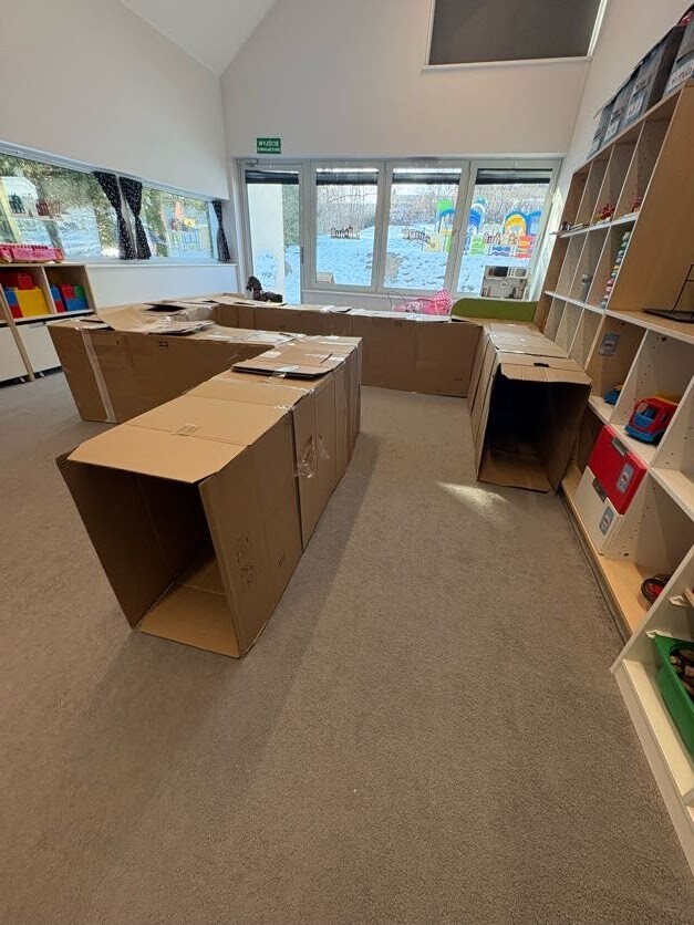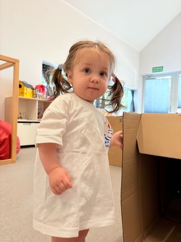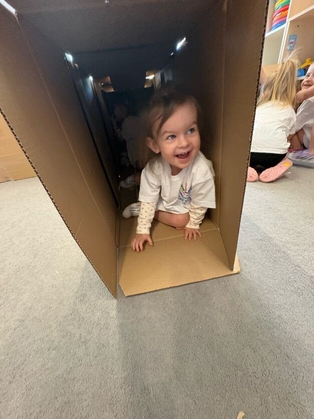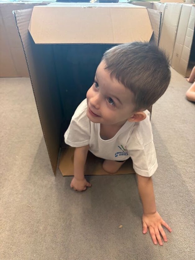 Dzieci miały okazję podczas zajęć sportowych bawić się w wyjątkowym labiryncie wykonanym z kartonu. Każde pudełko i przejście tworzyło nowe zakamarki do odkrycia, a mali odkrywcy mogli przechodzić, czołgać się i śmiać do woli, próbując odnaleźć właściwą drogę. Zabawa w labiryncie rozwijała ich spostrzegawczość, orientację w przestrzeni oraz współpracę z innymi dziećmi, a przy tym dostarczała mnóstwo radości i śmiechu. Maluchy chętnie wymyślały własne ścieżki, próbowały różnych przejść, świetnie się bawiąc i pokonując przy tym strach.
