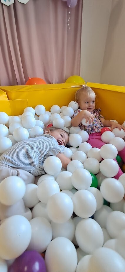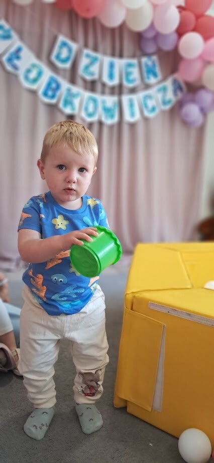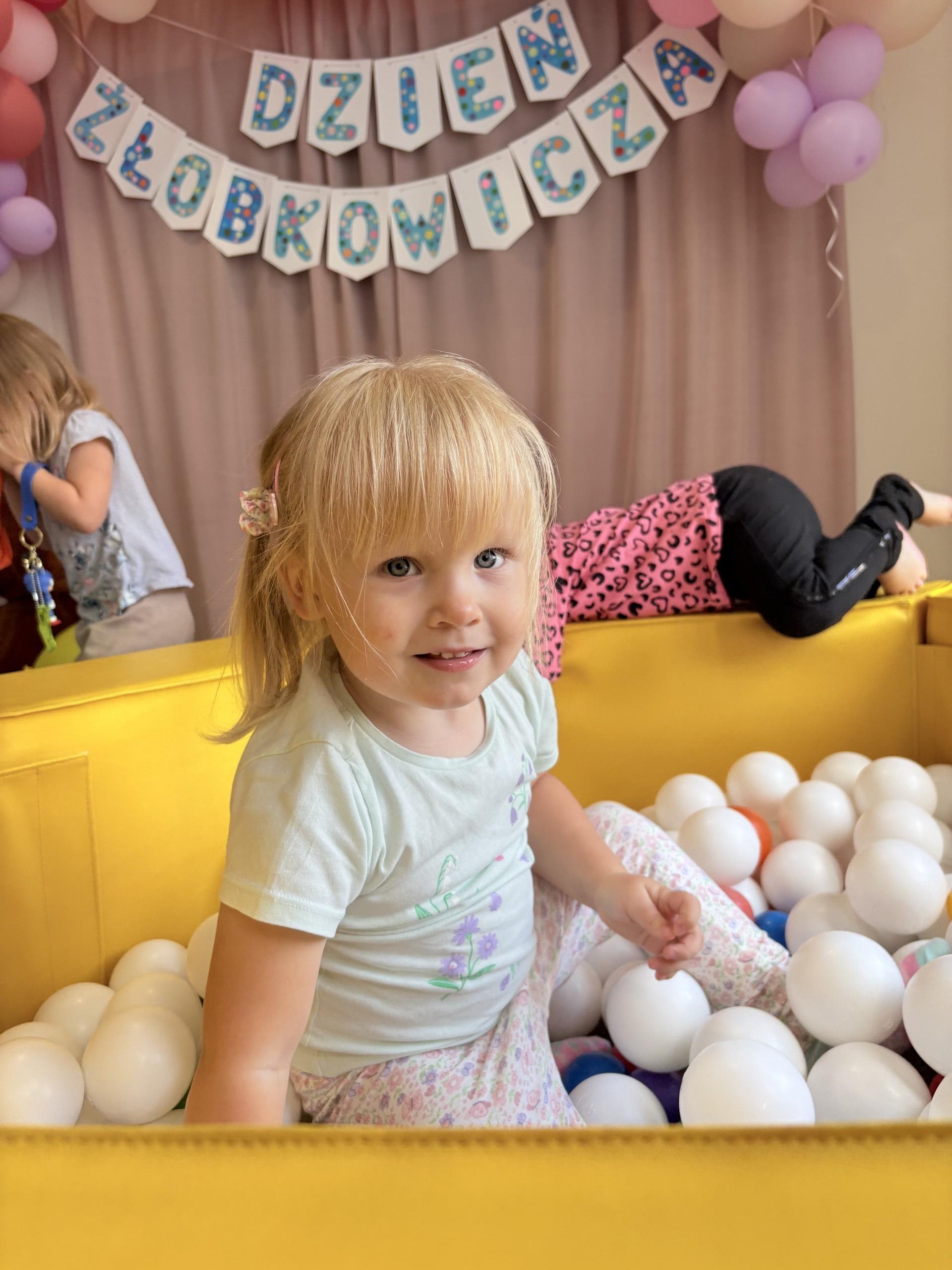 Dzieci wspaniale bawiły się w basenie z kolorowymi kulkami, pokonywały tor z klocków piankowych oraz uczestniczyły w zabawach muzycznych.