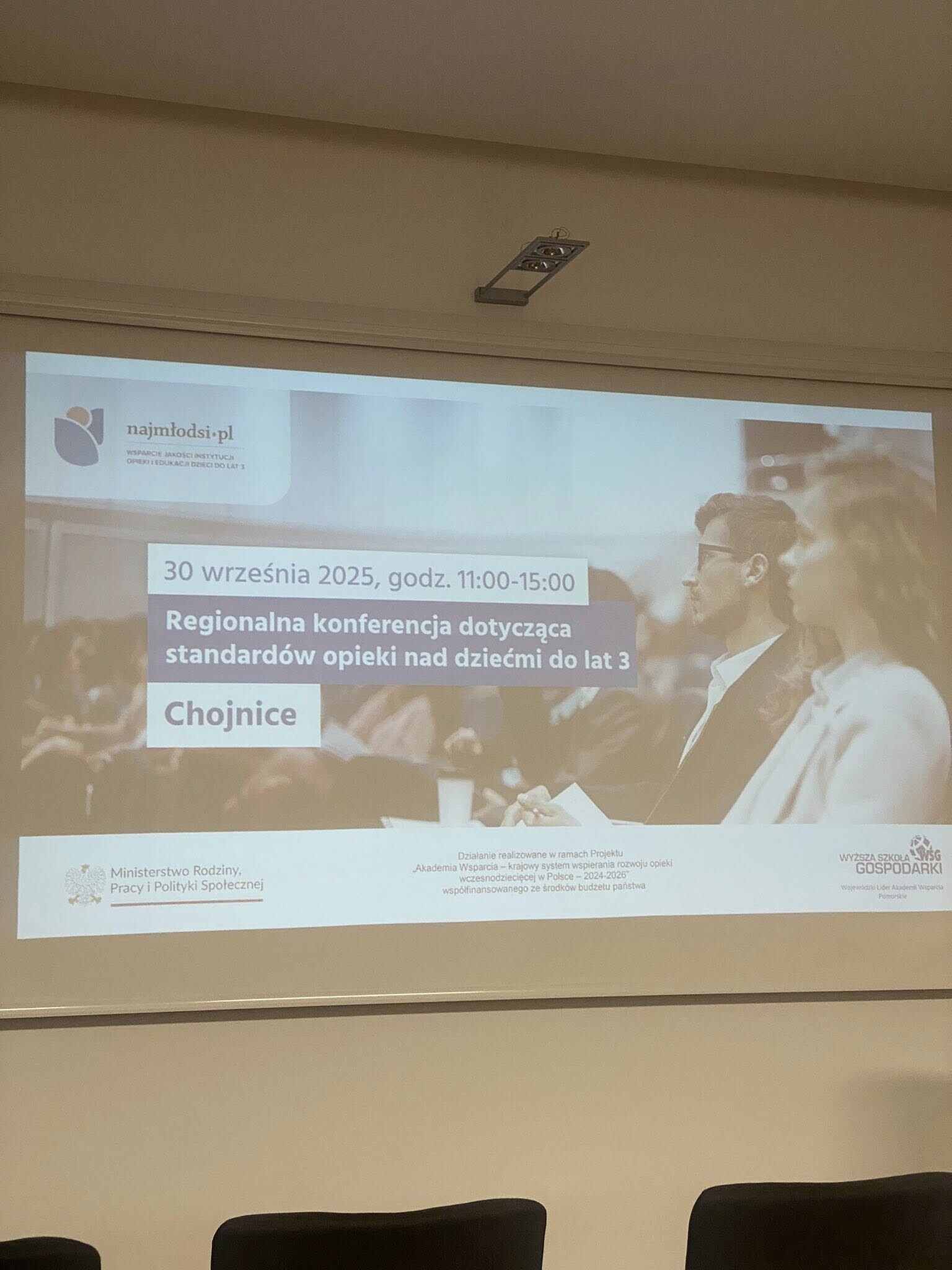 W dniu dzisiejszym (30.09.2025 r.) Dyrektor naszego żłobka Pani Anna Iwicka wzięła udział w Wojewódzkiej Konferencji „Standardy opieki nad dziećmi w wieku do lat 3”, która odbyła się w Chojnicach.