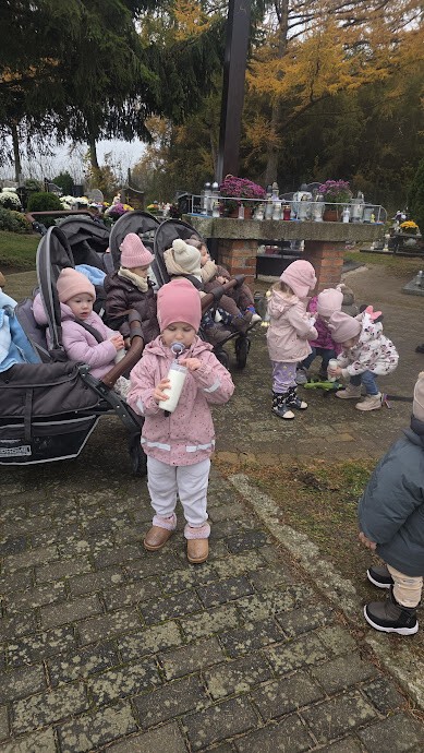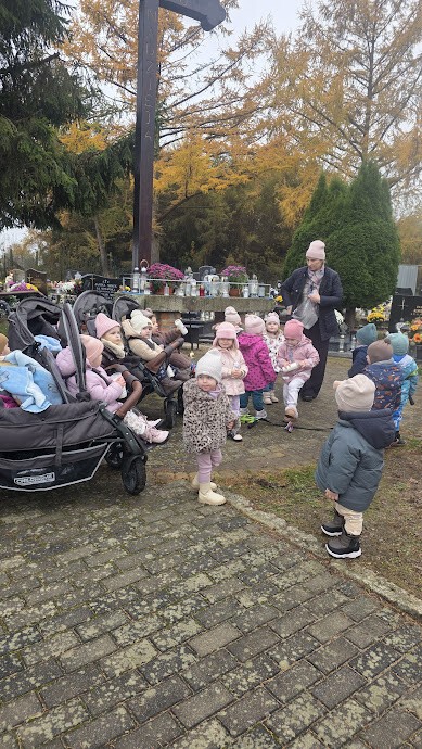Z Okazji Dnia Wszystkich Świętych nasze maluszki odwiedziły pobliski cmentarz.