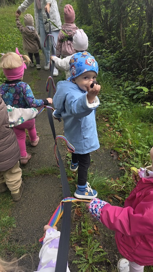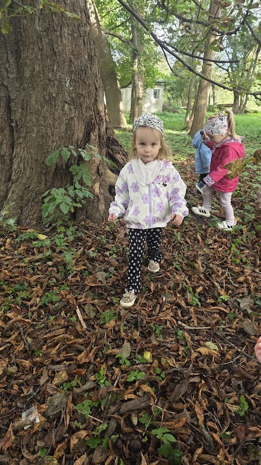 Spacer po parku z okazji przywitania Pani Jesieni to wyjątkowa okazja, by dzieci mogły w bezpośredni sposób doświadczyć zmian zachodzących w przyrodzie. W czasie wspólnej wędrówki żłobkowicze obserwują drzewa, krzewy i trawę zwracając uwagę na kolory liści, spadające kasztany, żołędzie oraz czerwone owoce jarzębiny. Celem spaceru jest nie tylko aktywność ruchowa na świeżym powietrzu, ale także rozwijanie spostrzegawczości i wrażliwości na piękno przyrody.