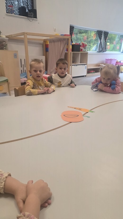 Podczas tych zajęć dzieci oglądały, dotykały i nazywały różne warzywa, poznając ich kształty, kolory, zapach i zastosowanie w kuchni. Maluszki utrwalały również pojęcie dotyczące zdrowego odżywiania i dowiedziały się dlaczego warto jeść warzywa każdego dnia.